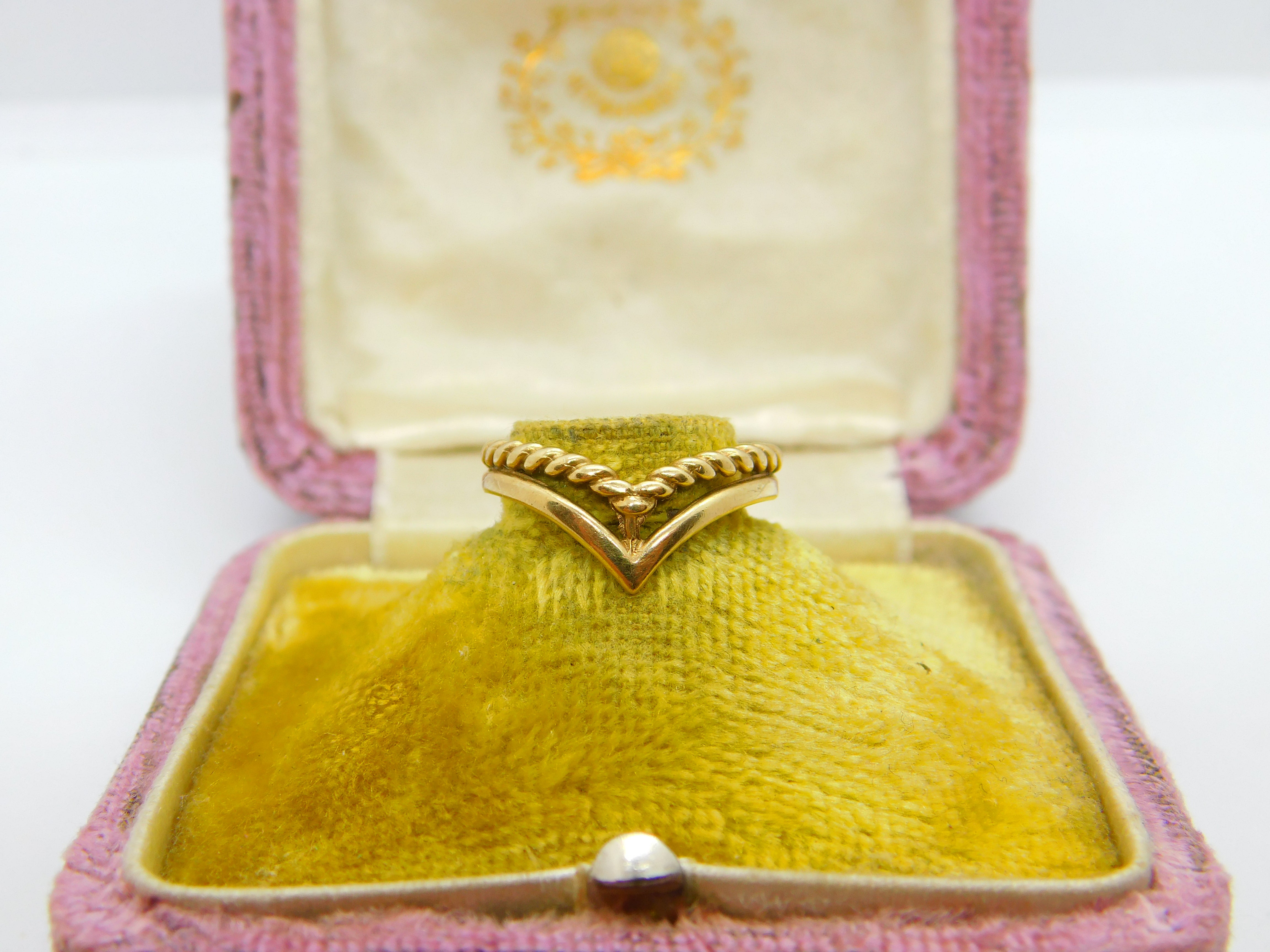 9ct Yellow Gold Small Double Wishbone Band Ring Vintage 1982 London