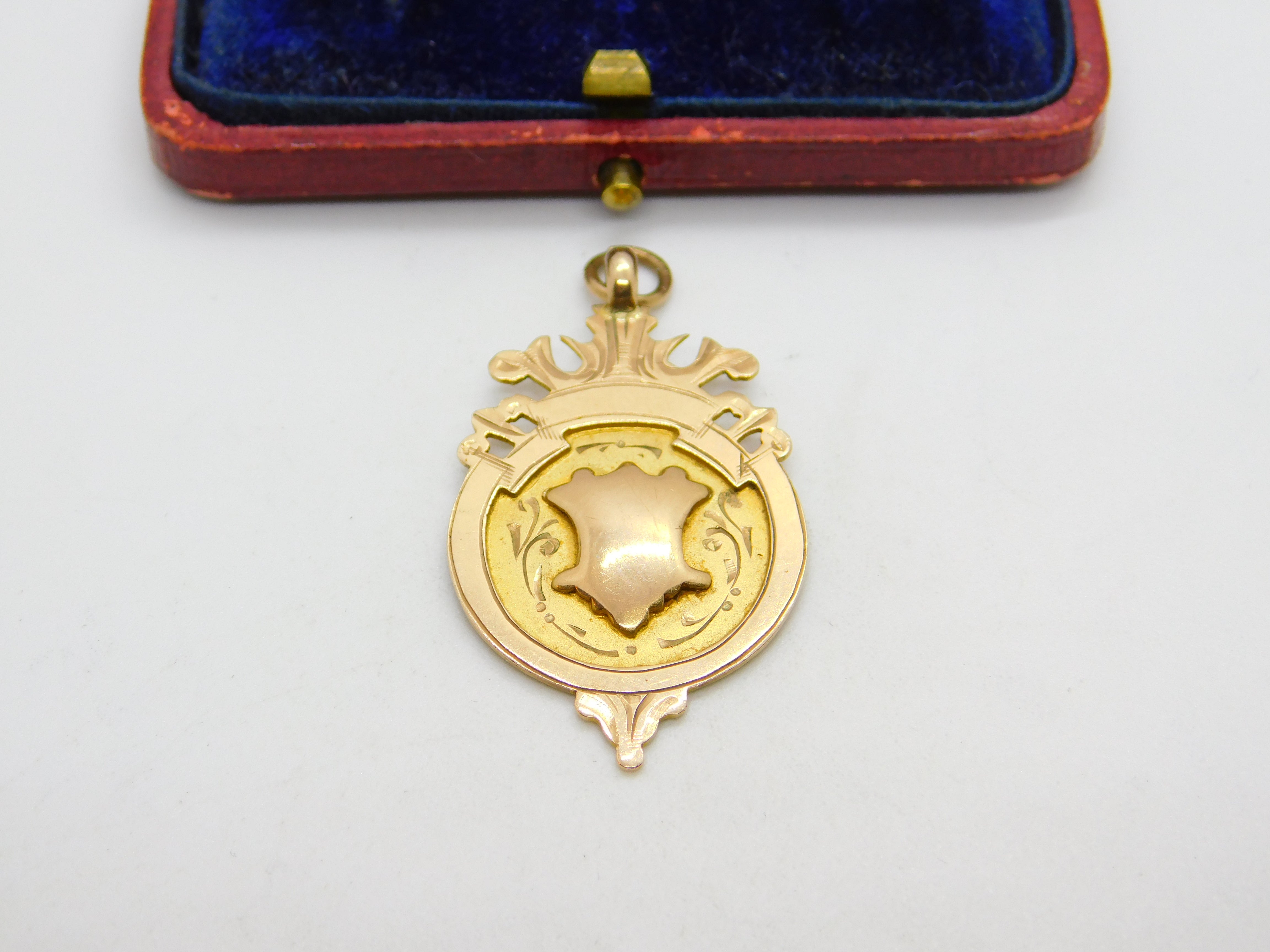 9ct Yellow Gold Sporting Watch Chain Fob Medal Antique 1927 Chester Art Deco