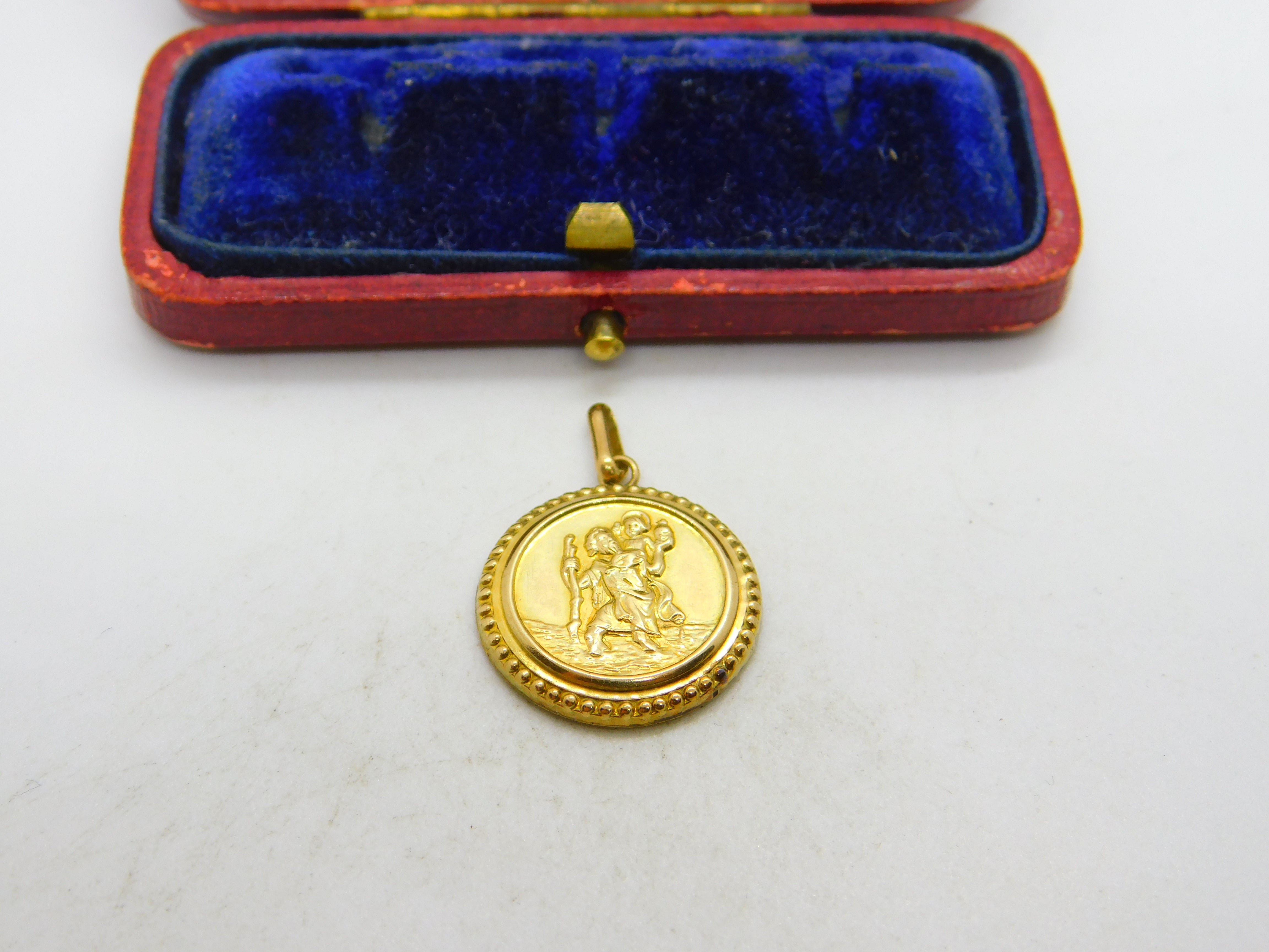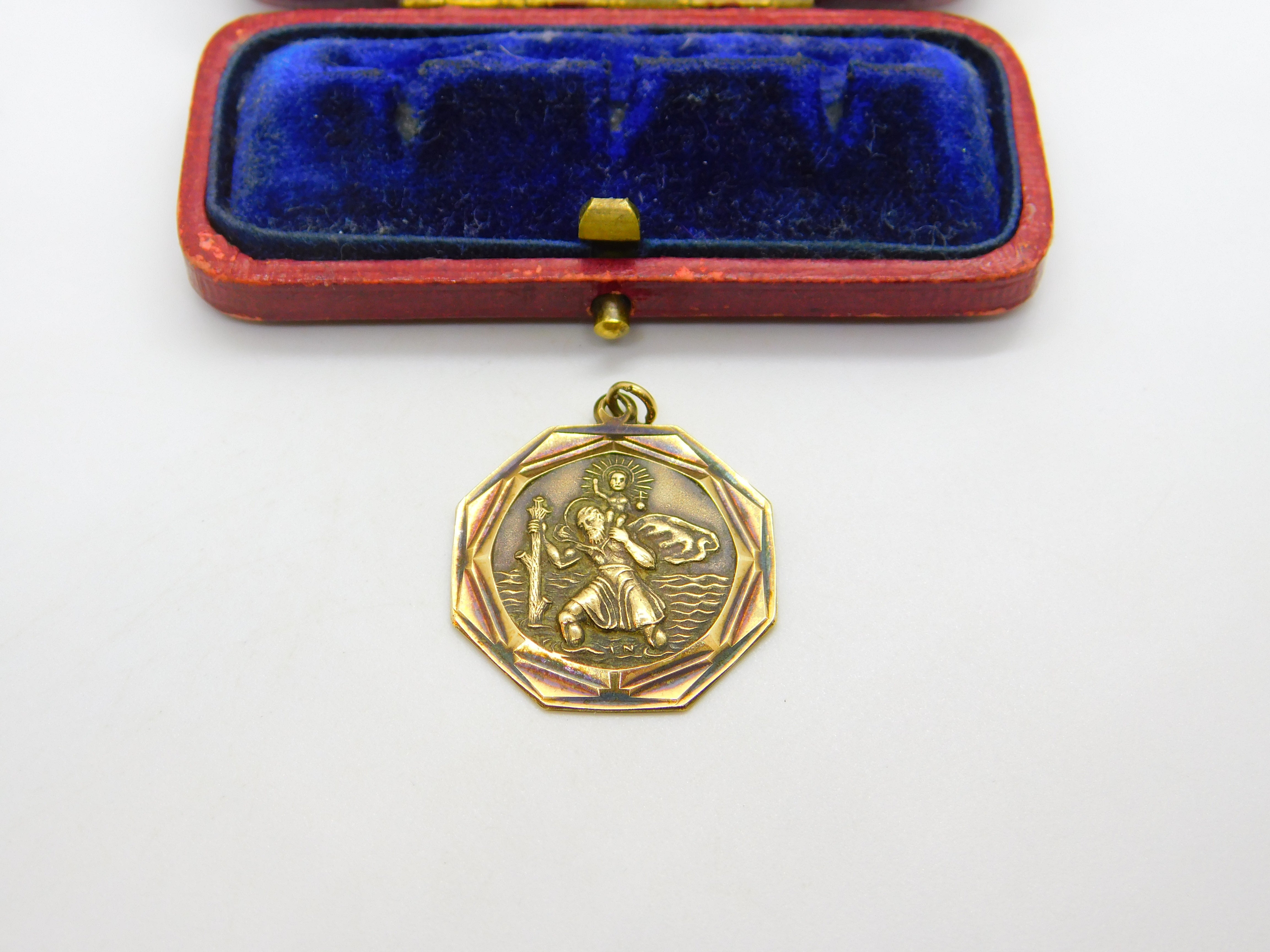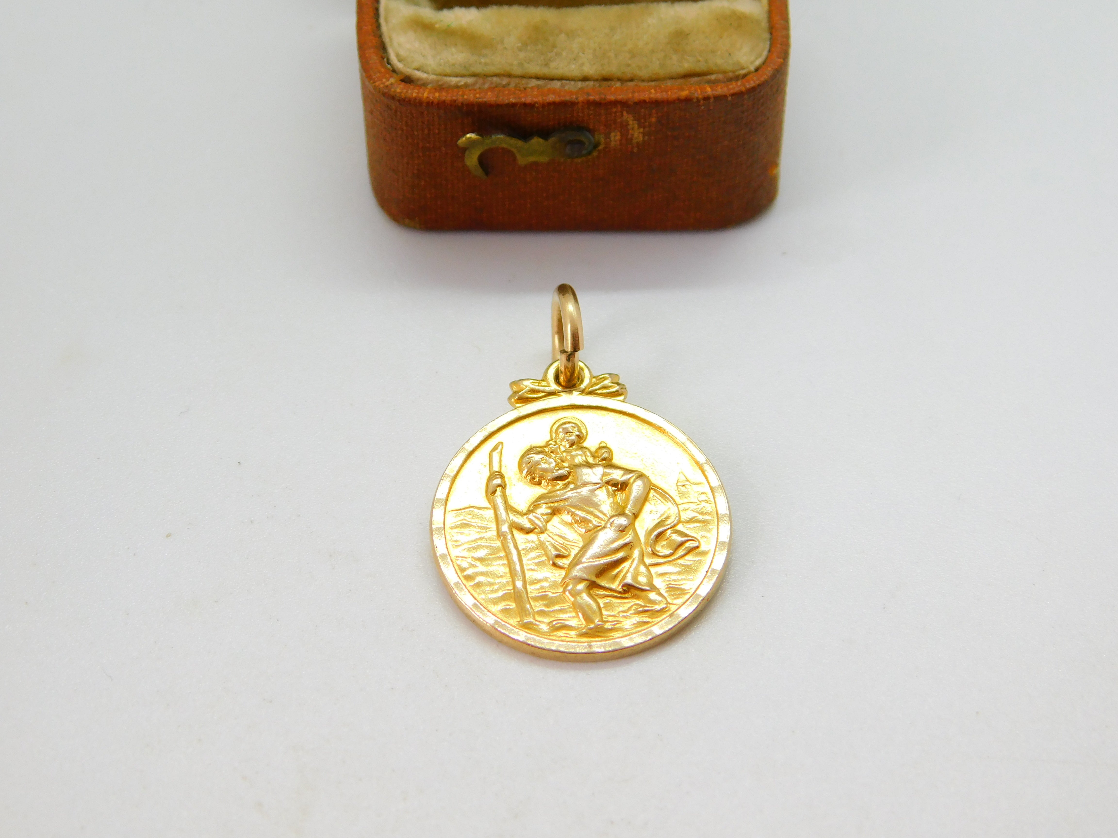 9ct Yellow Gold St Christopher Patron of Travel Pendant 1958 Birmingham Vintage