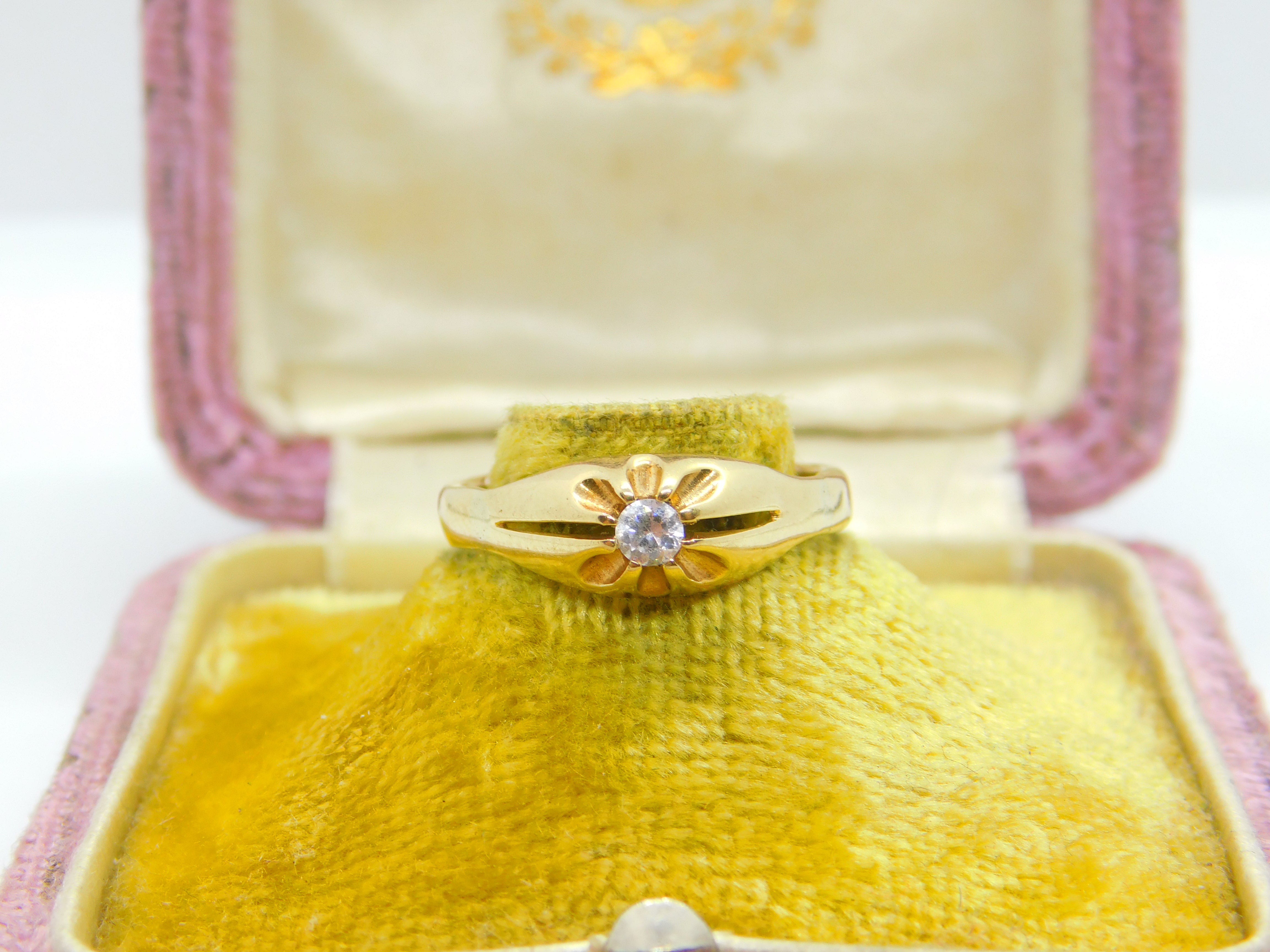 9ct Yellow Gold Solitaire Ring with Diamond Paste Antique c1940 Art Deco
