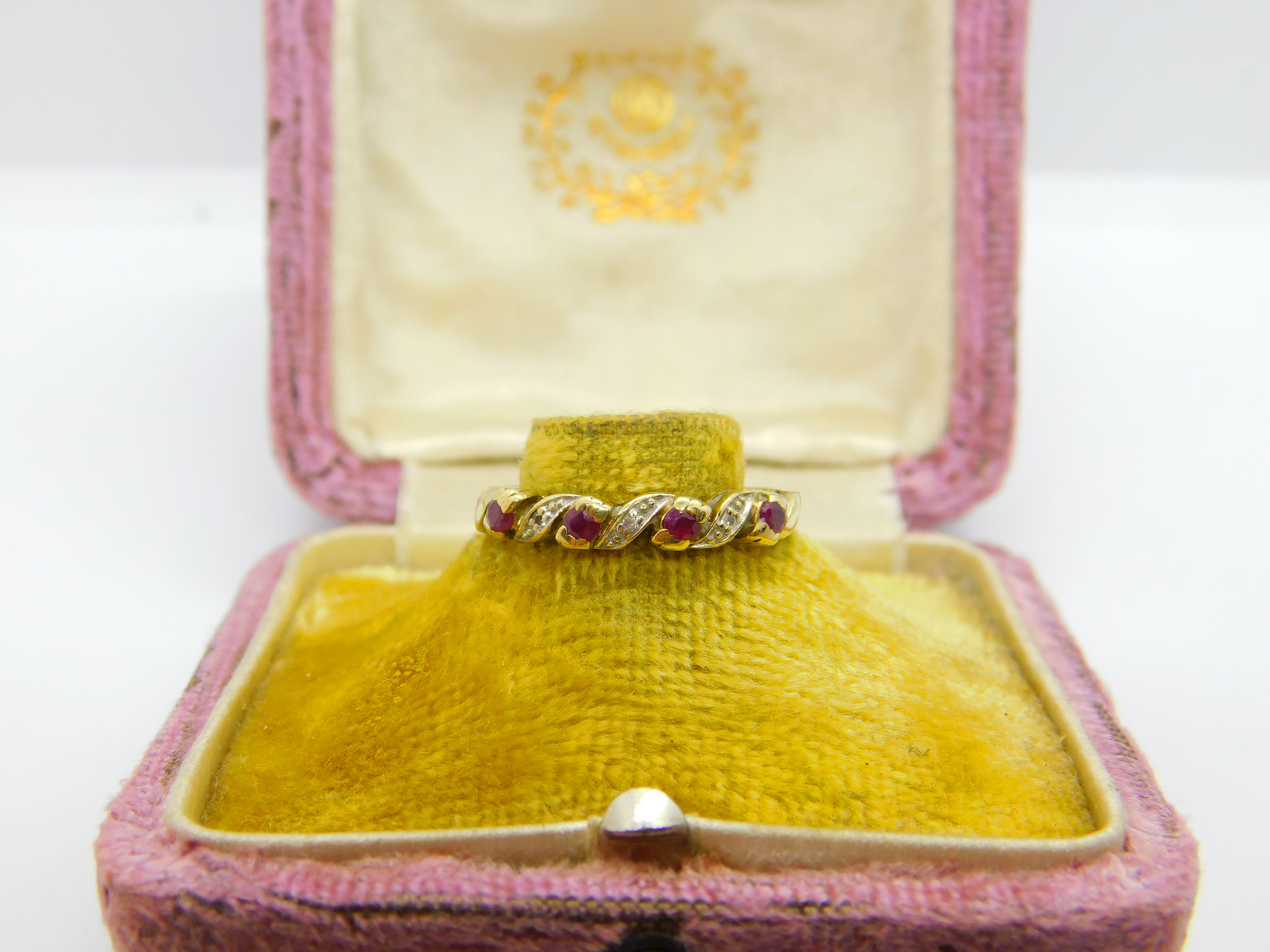 9ct Yellow Gold, Diamond & Ruby Crossover Ring Vintage c1990 Birmingham