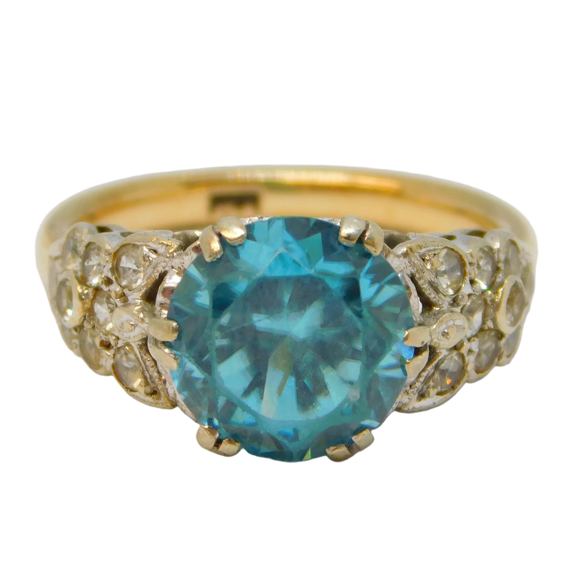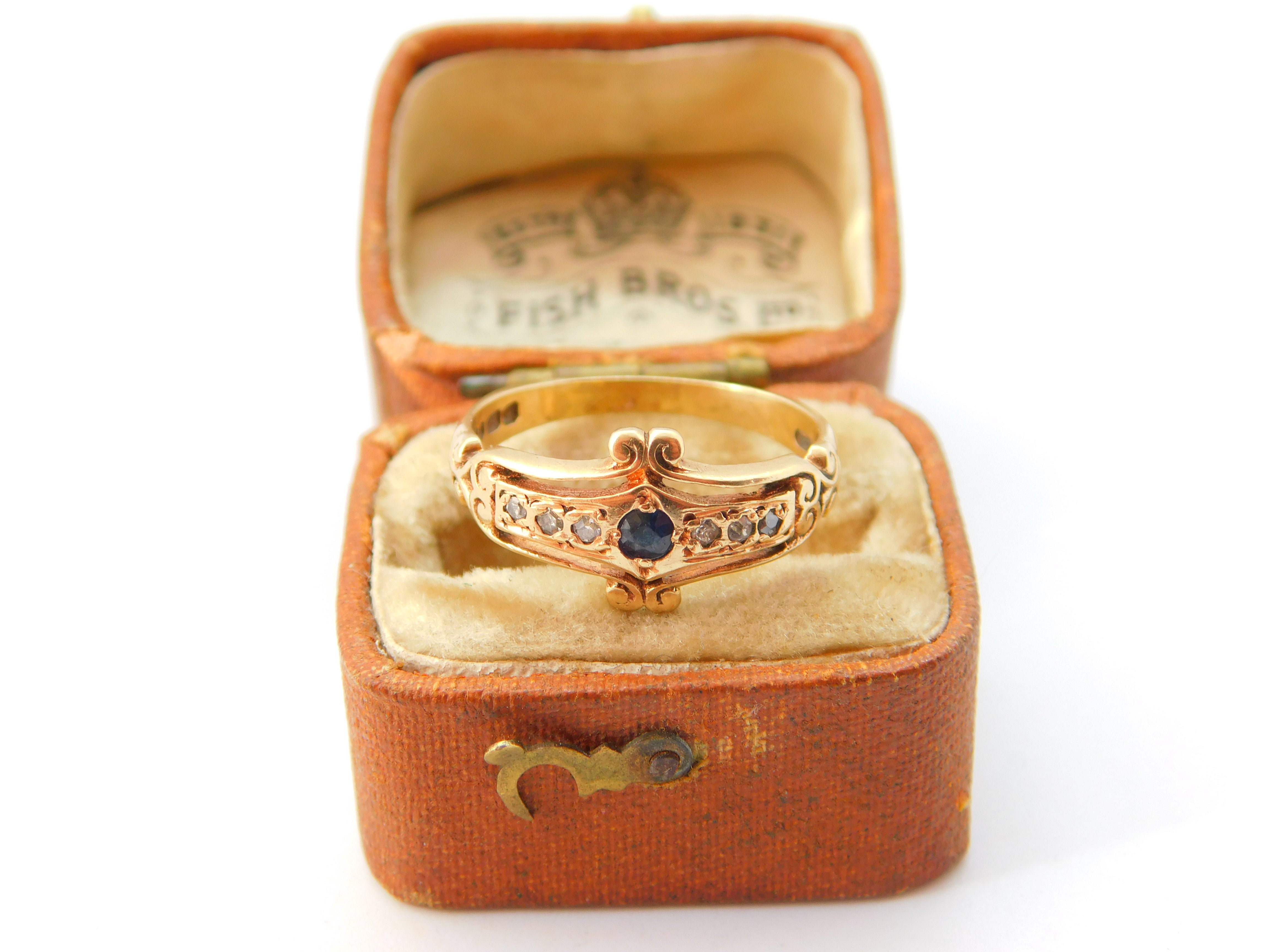 9ct Yellow Gold, Sapphire & Diamond Set Victorian Style Ring 1978 London