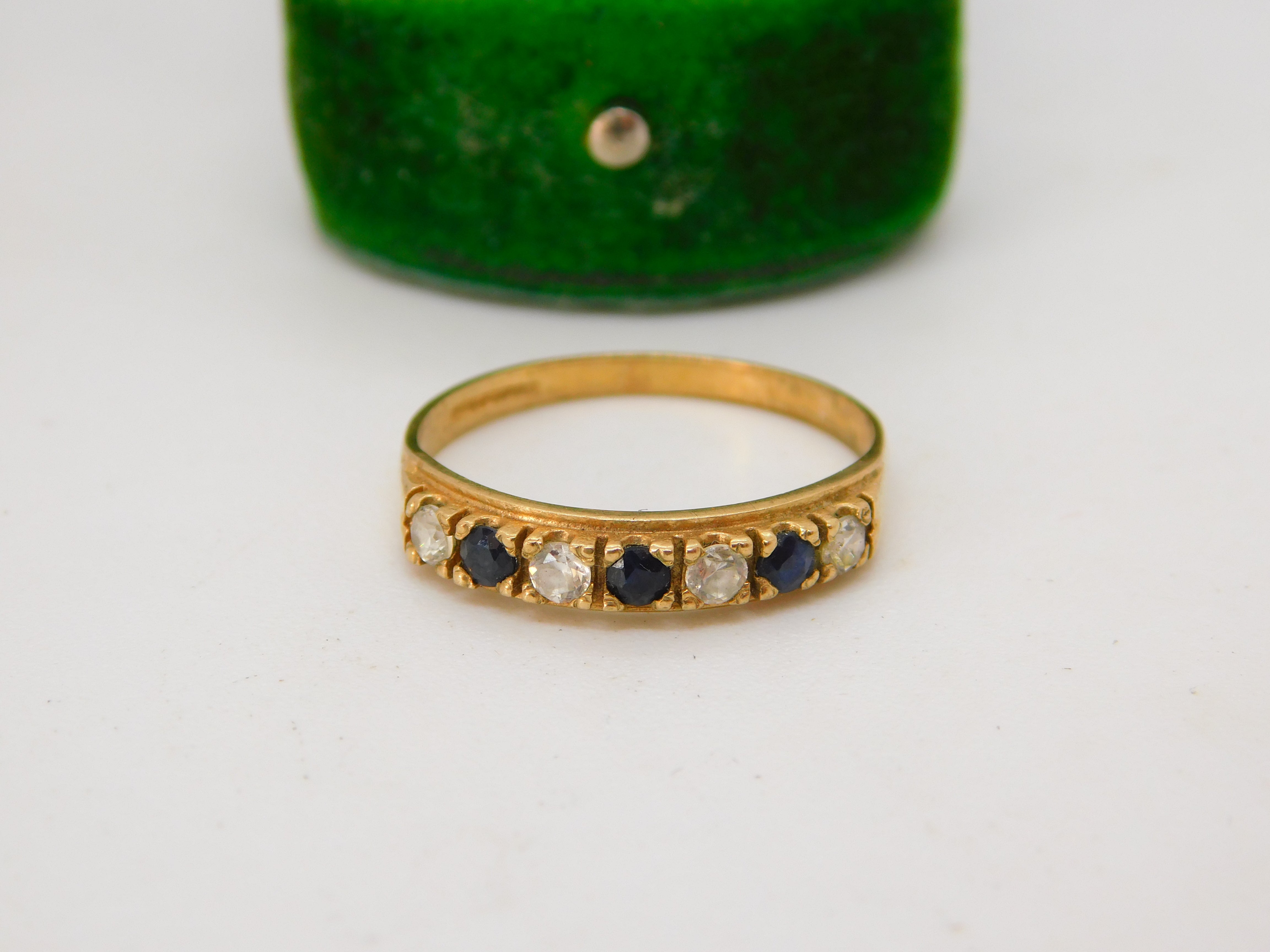 9ct Yellow Gold, Sapphire & Paste Set Half Eternity Ring Vintage 1987 Birmingham