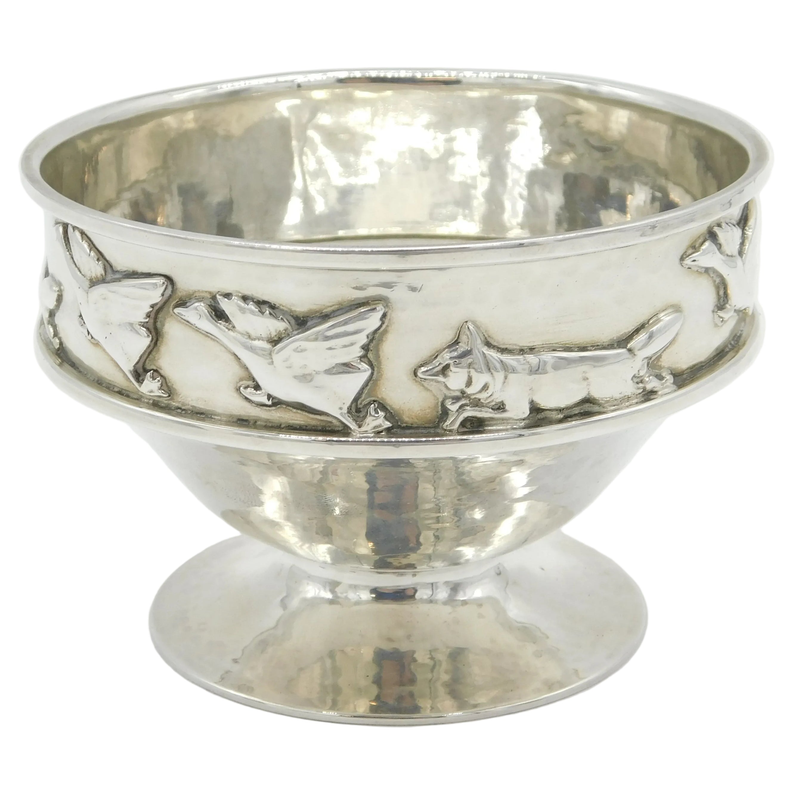 A.E Jones Sterling Silver Fox & Duck Pattern Bowl Antique 1929 Arts & Crafts