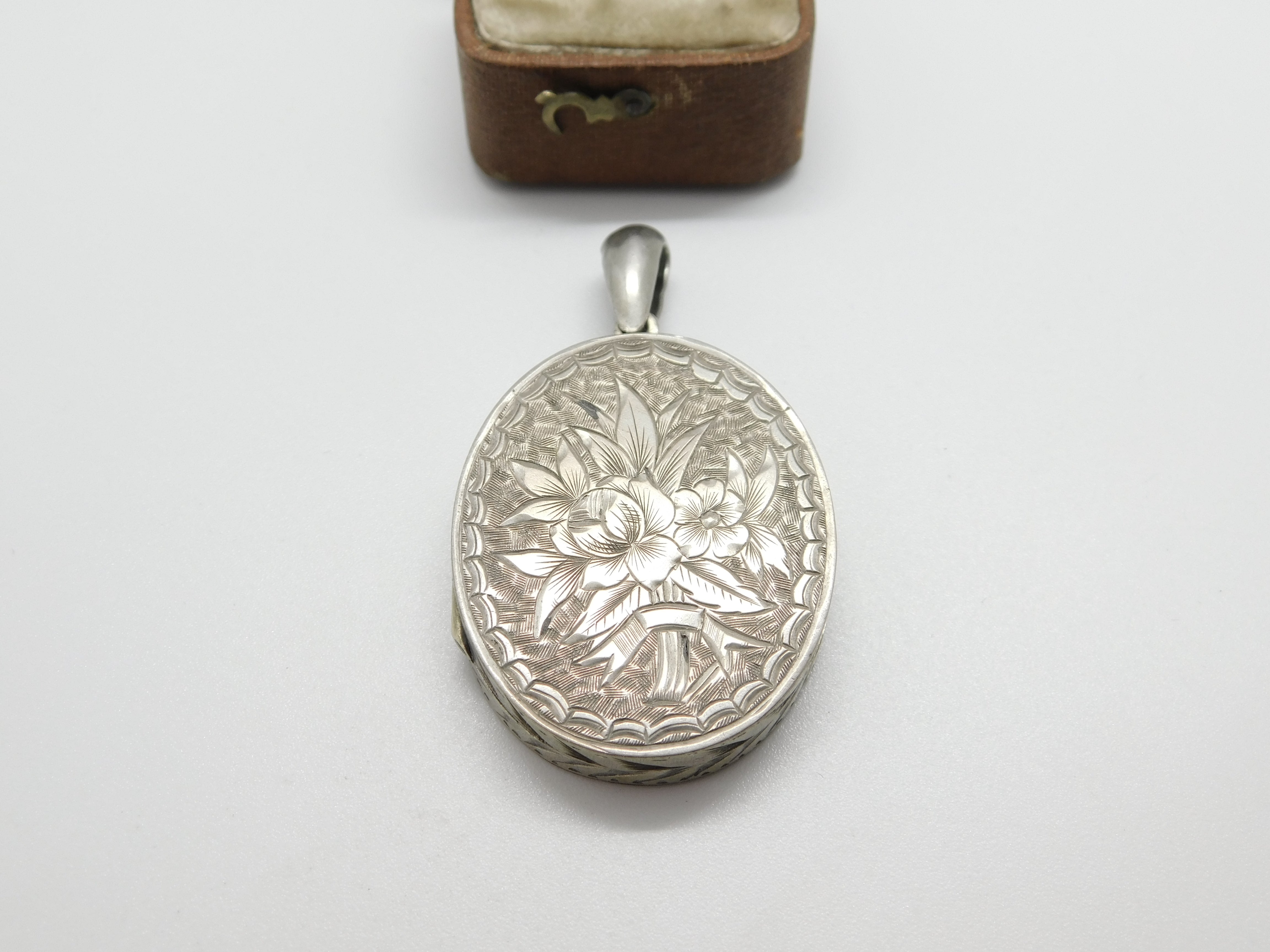 Aesthetic Victorian Sterling Silver Floral Pattern Double Locket Pendant Antique