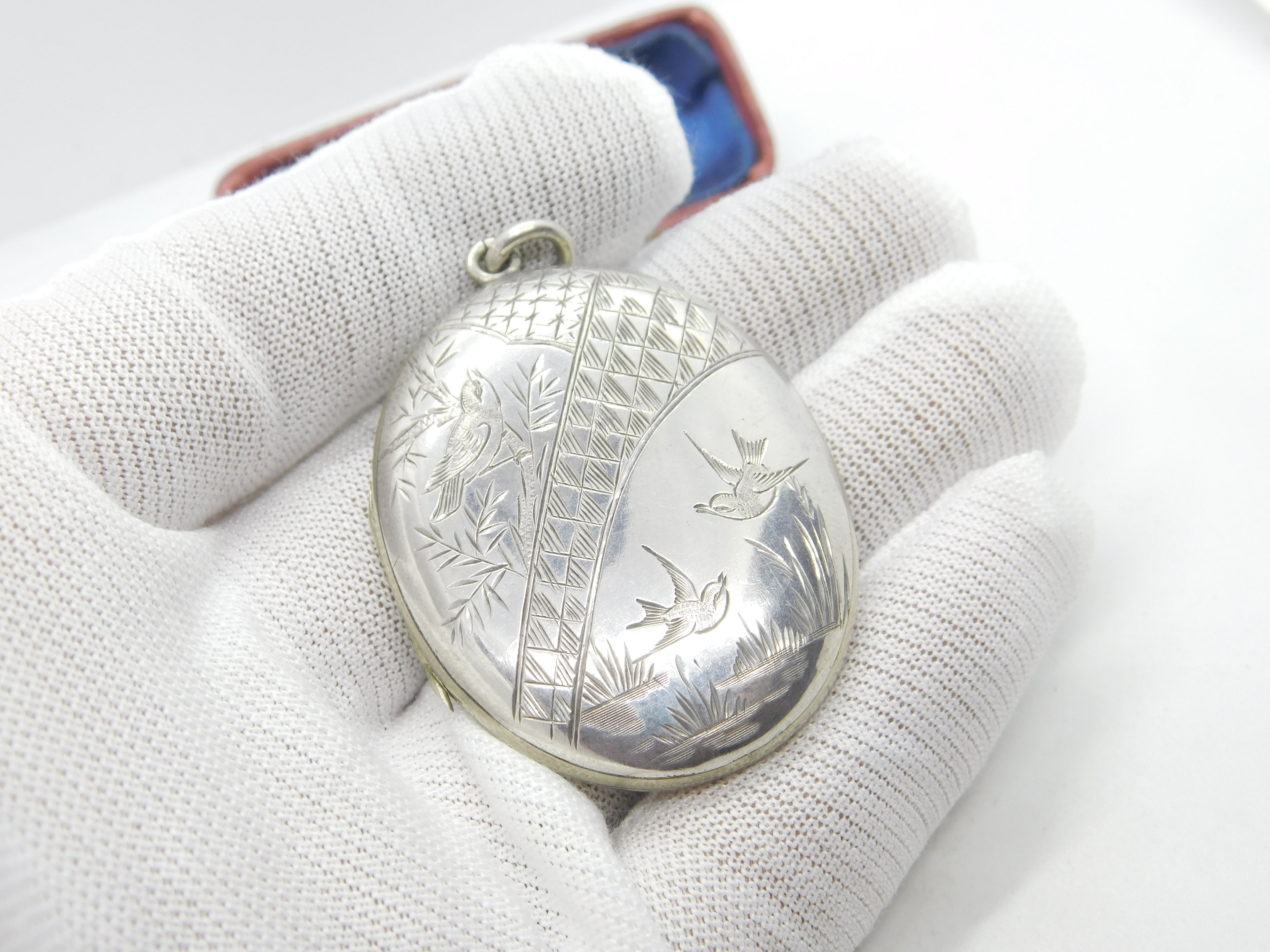 Aesthetic Victorian Sterling Silver Swallow Sweetheart Locket c1880 Antique