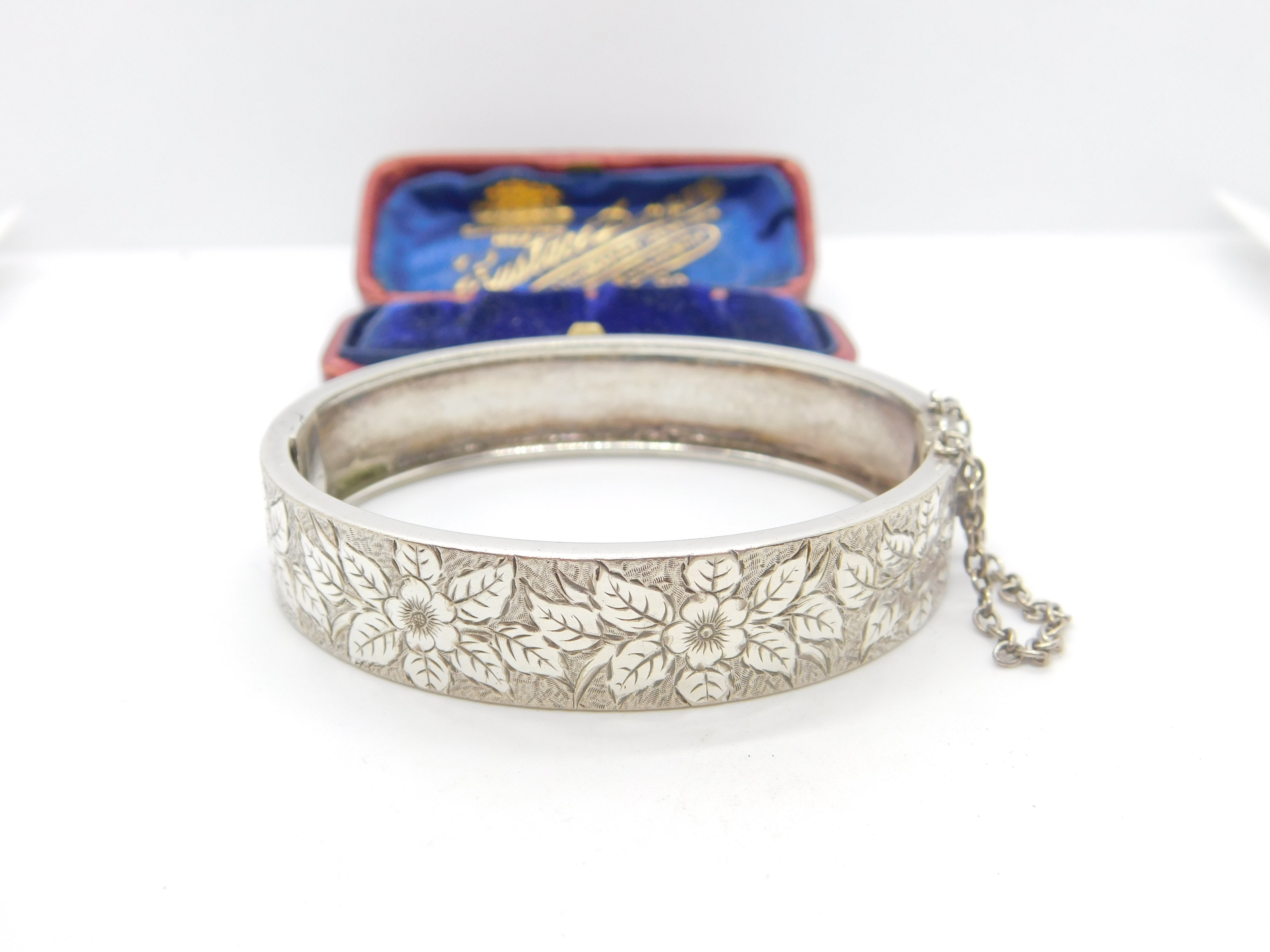 Aesthetic Movement Sterling Silver Ivy Leaf Pattern Bangle 1885 Birmingham