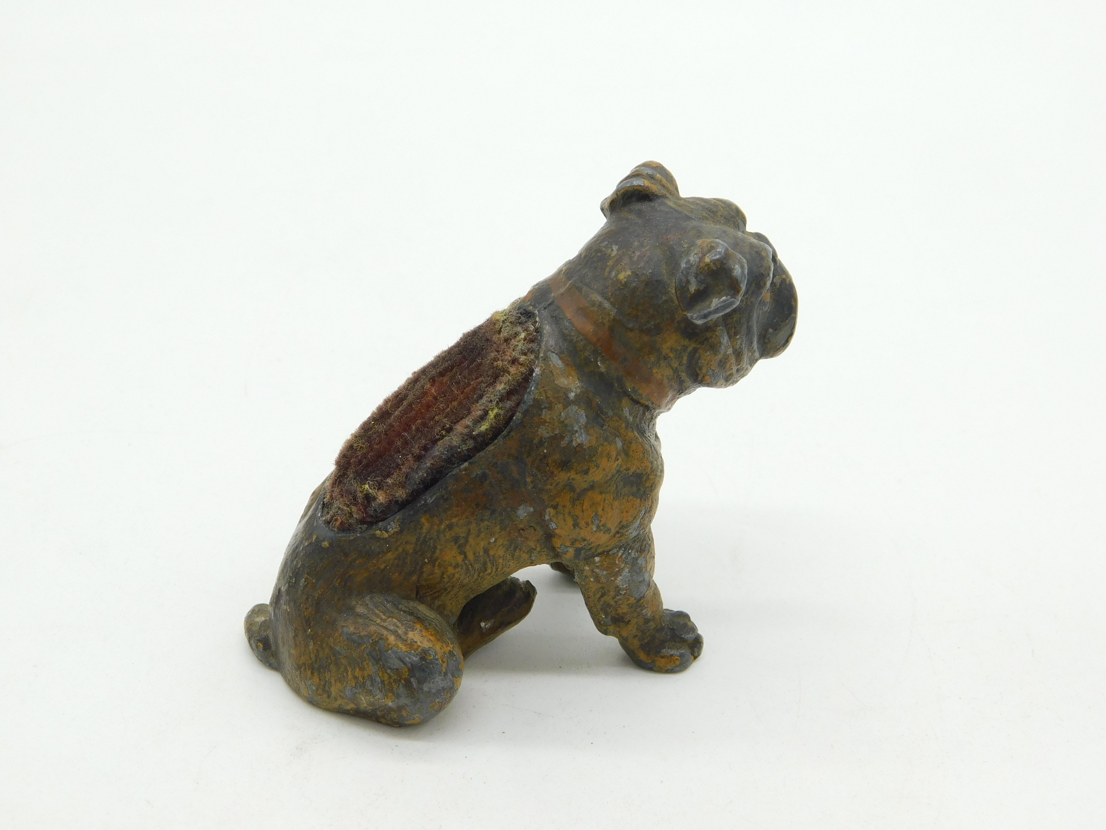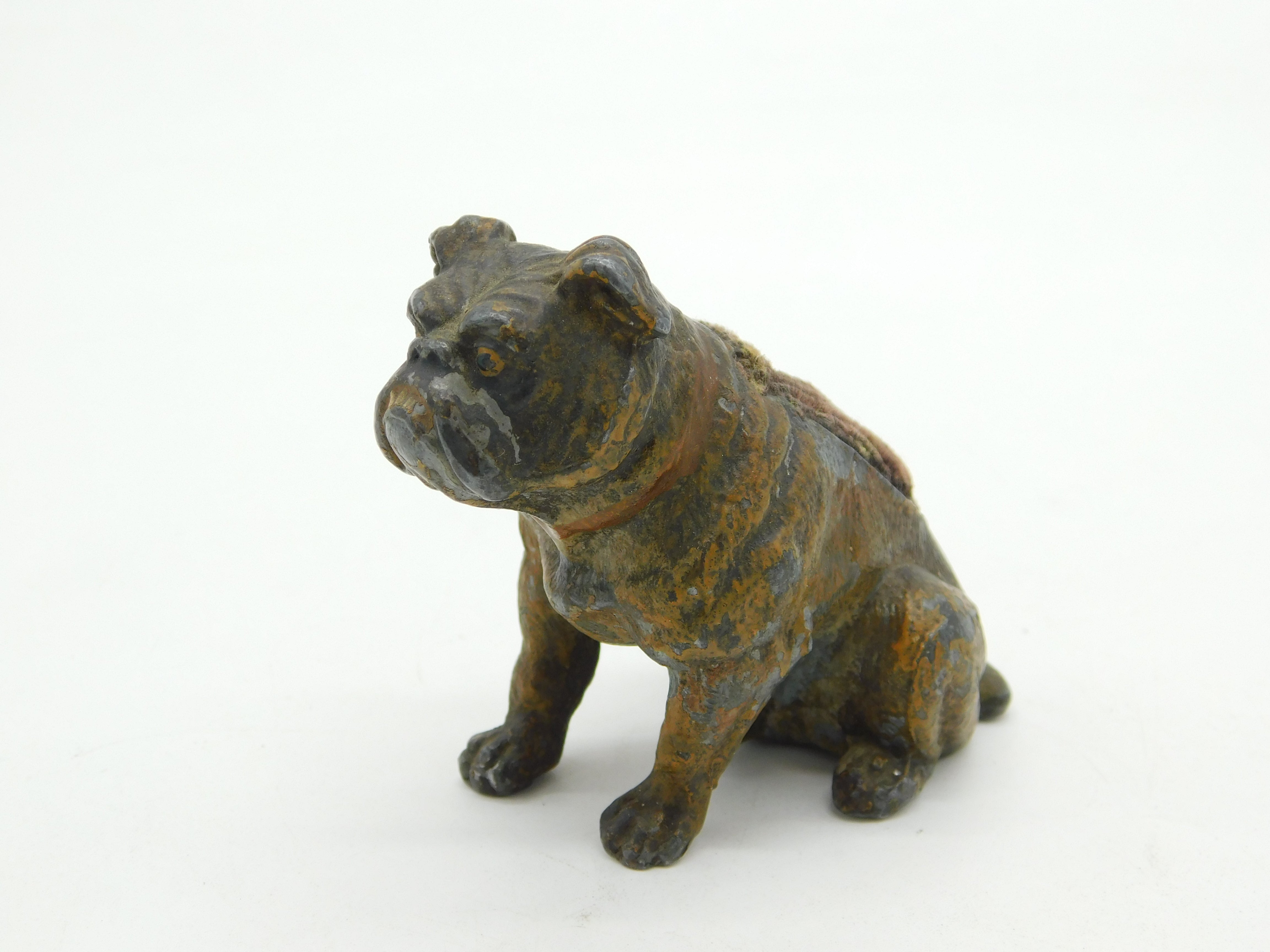19th Century Cold Painted Spelter Novelty Bulldog Pin Cushion Antique c1860