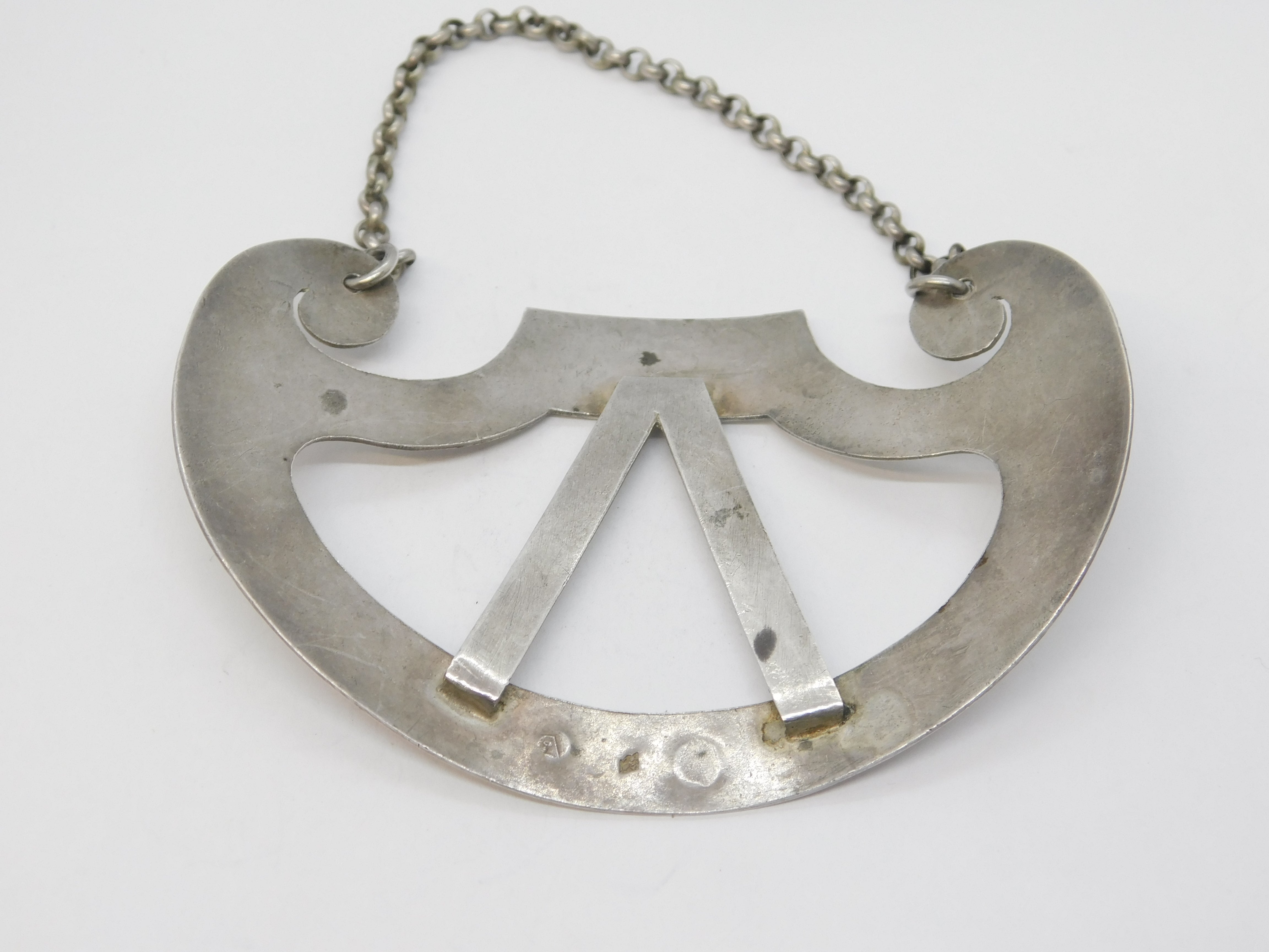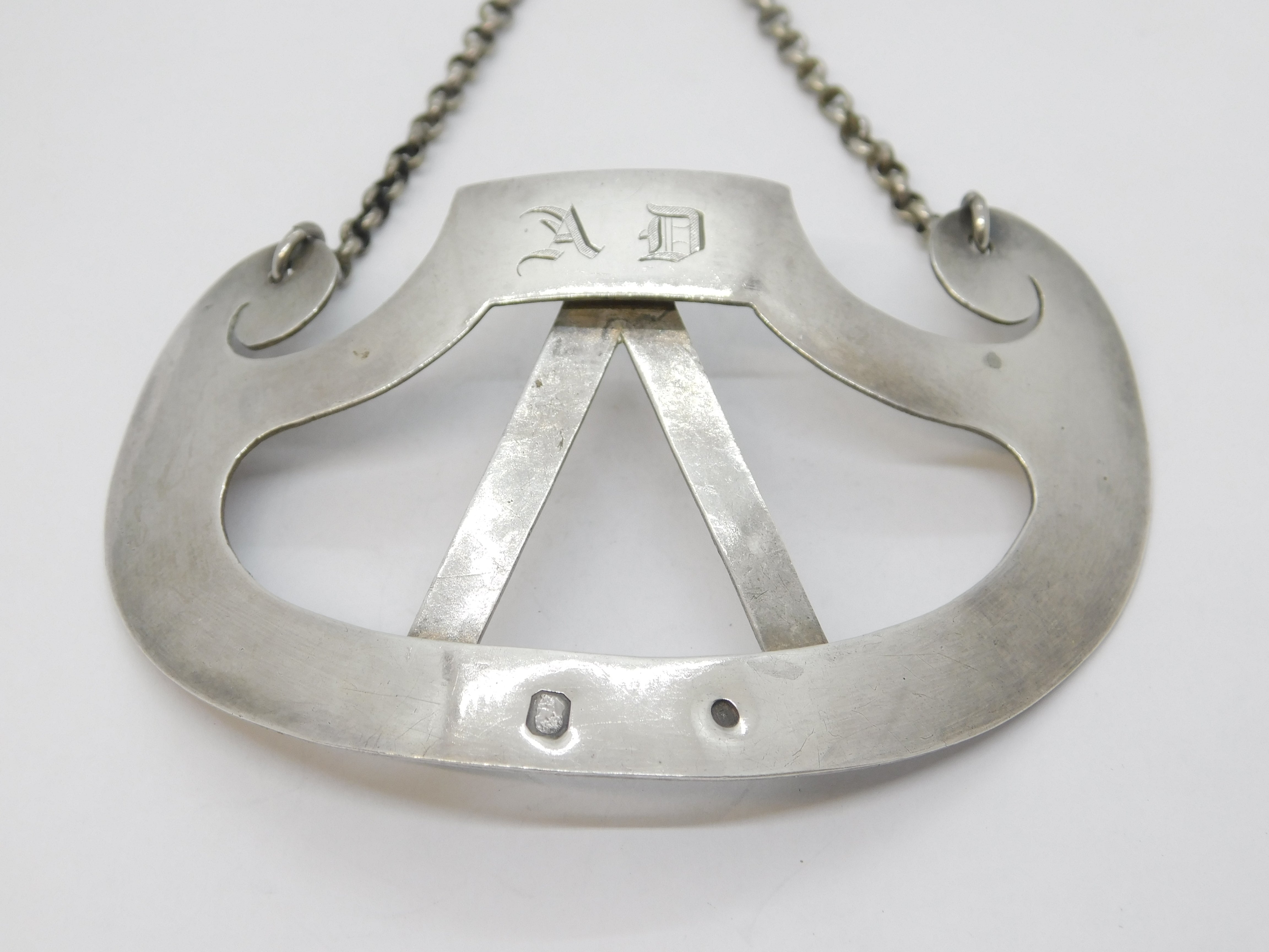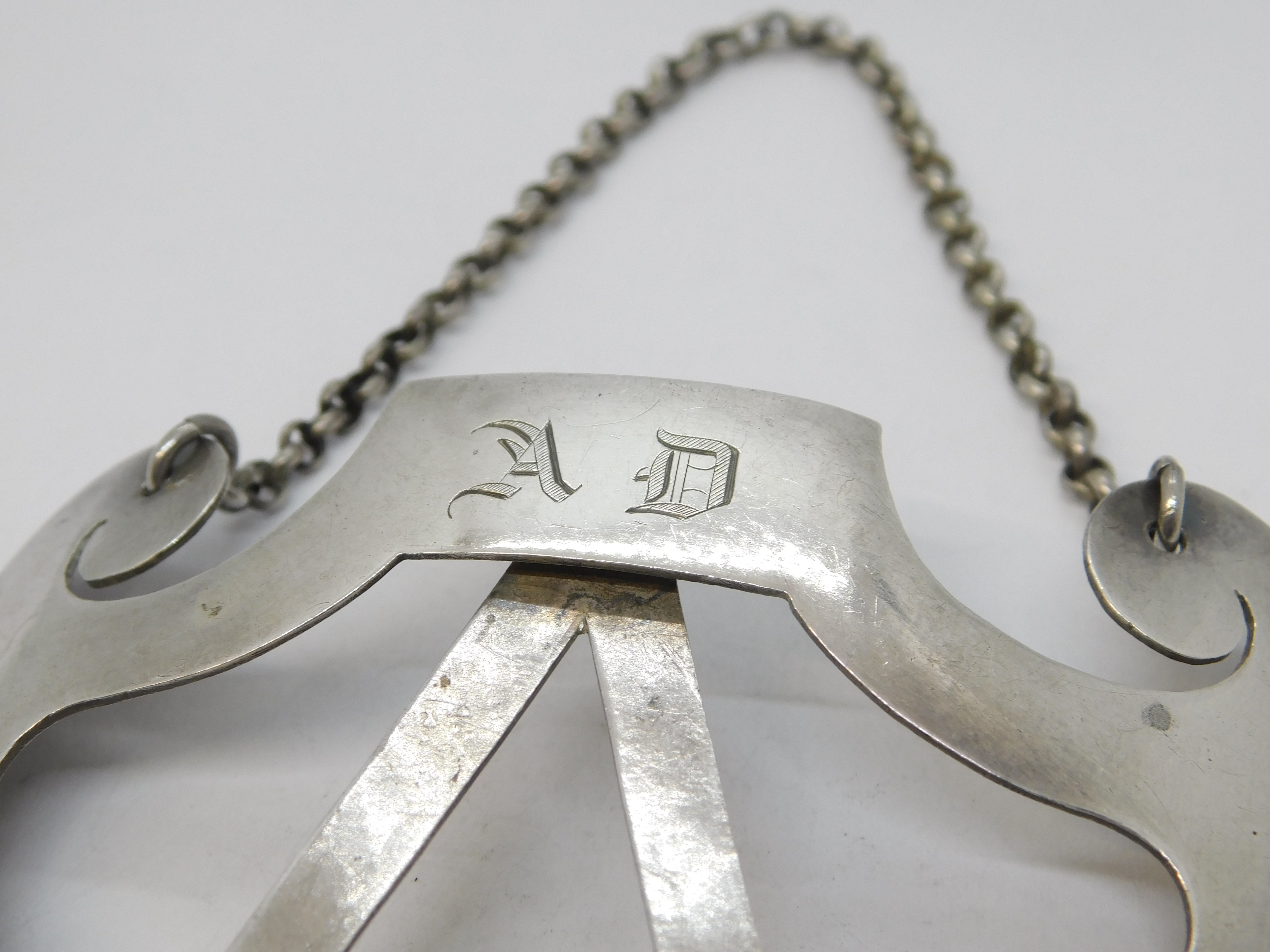 19th Century French .950 Silver Large Bottle Ticket Holder Decanter Label c1880