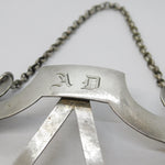 Details: A fantastic and wonderfully designed antique 19th century French 950 grade silver decanter label ticket holder with lovely detailing, engraved initials to the top and fully hallmarked c1880, one would write whatever drink was required on card and then slide in between to the gap. This is a wonderful item that would make a perfect gift or addition to any collection. We are more than happy to provide XRF reports for items upon request.