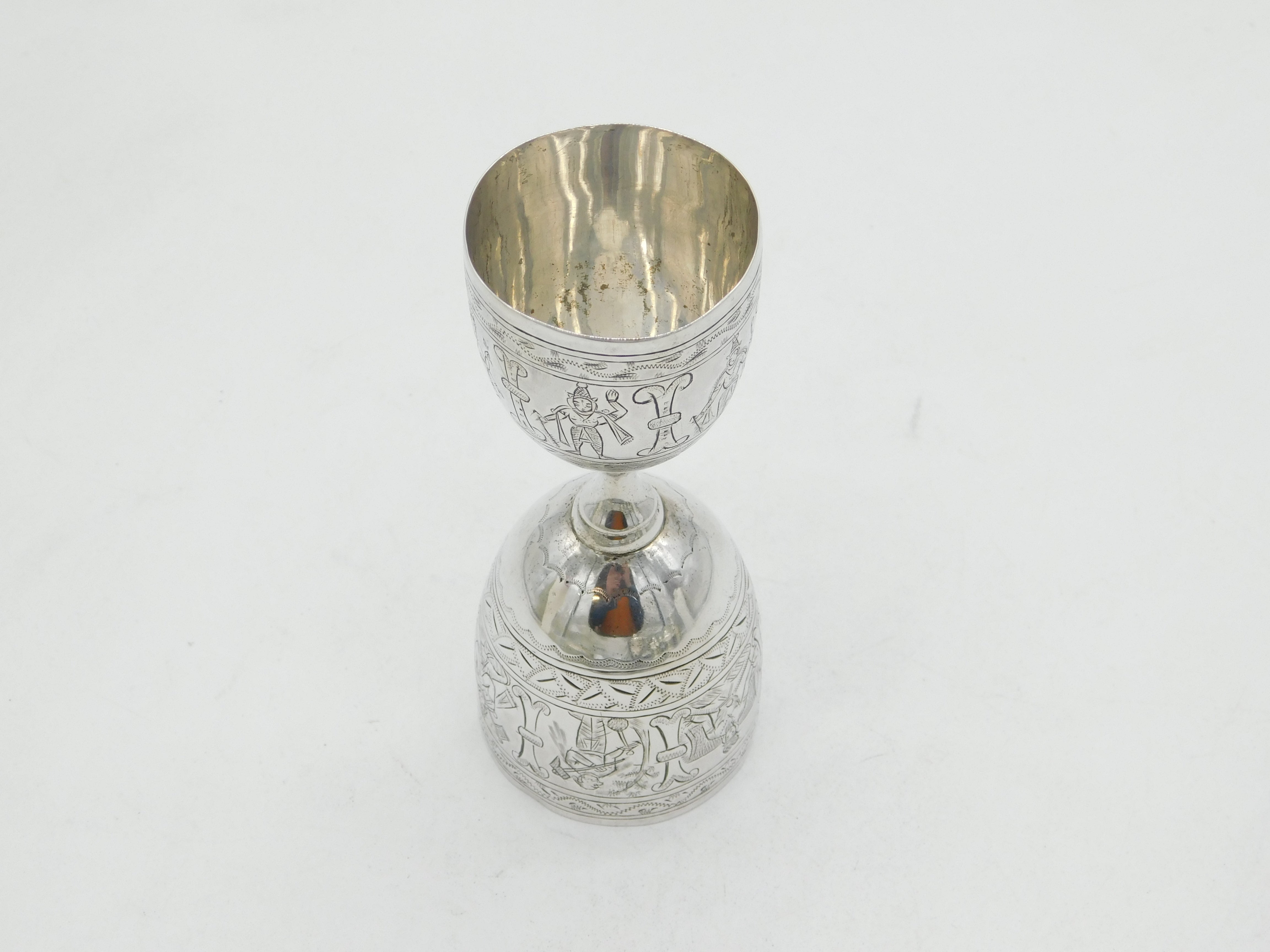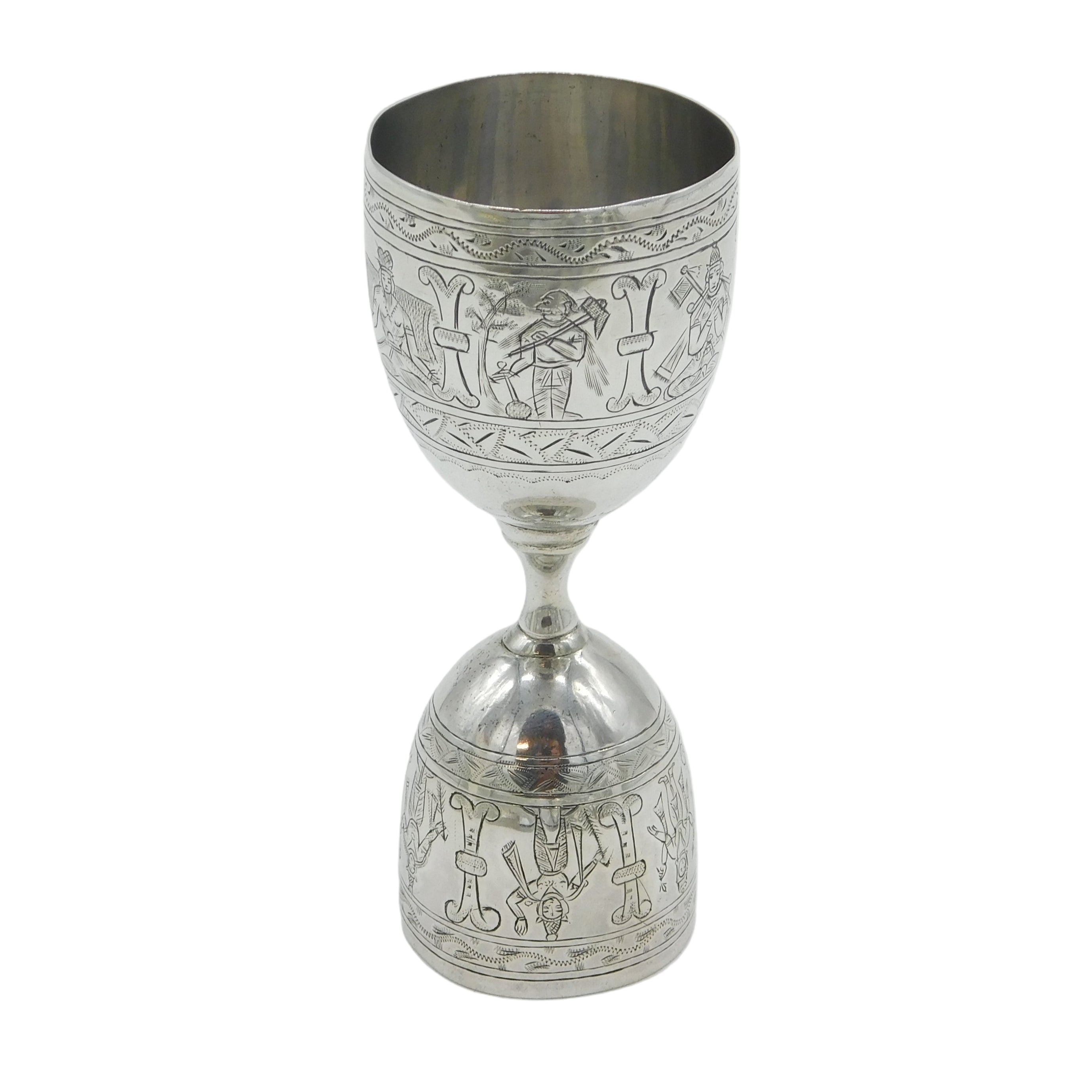 19th Century Oriental Sterling Silver Jigger Double-Ended Shot Measure Antique c1880