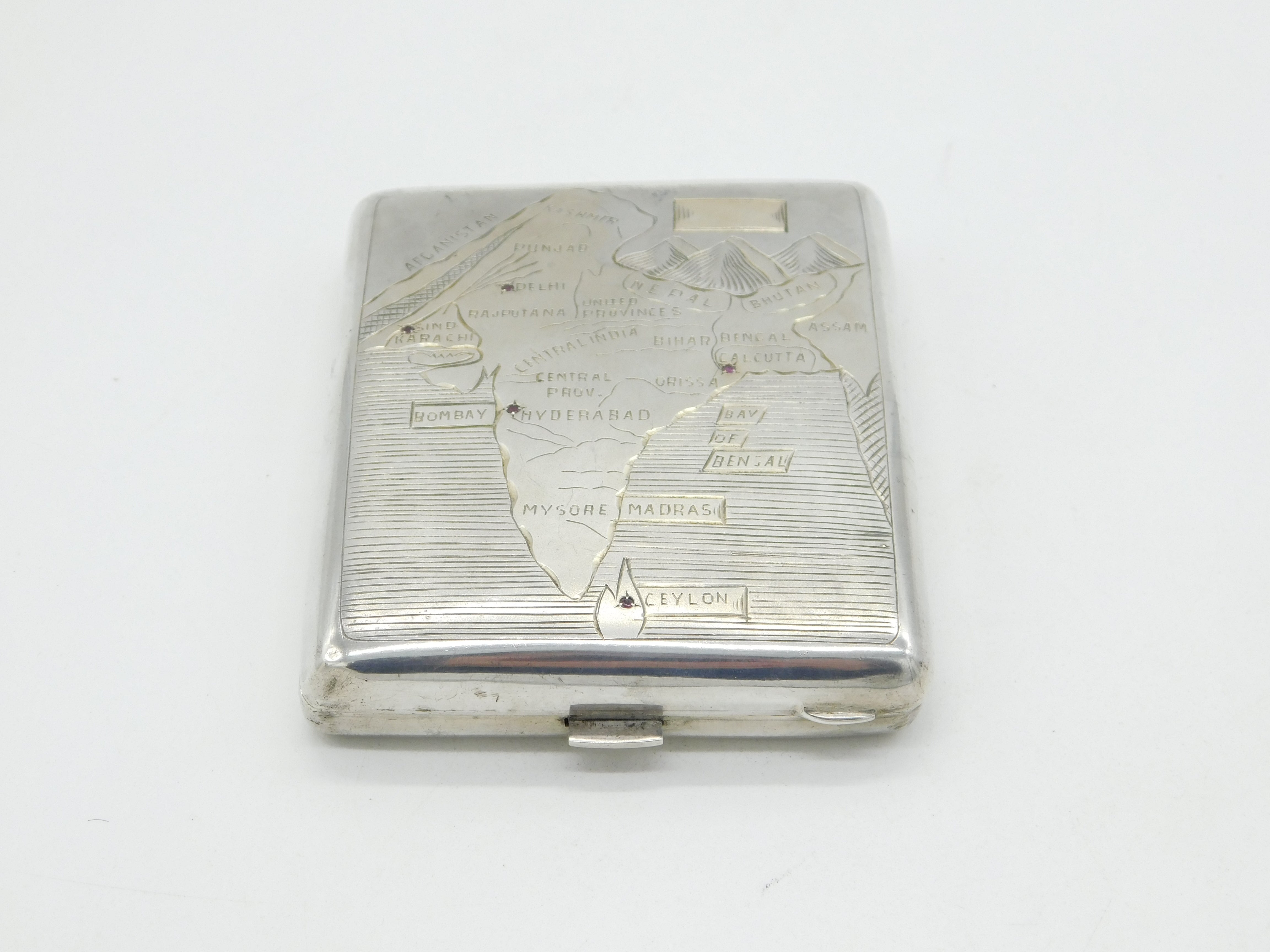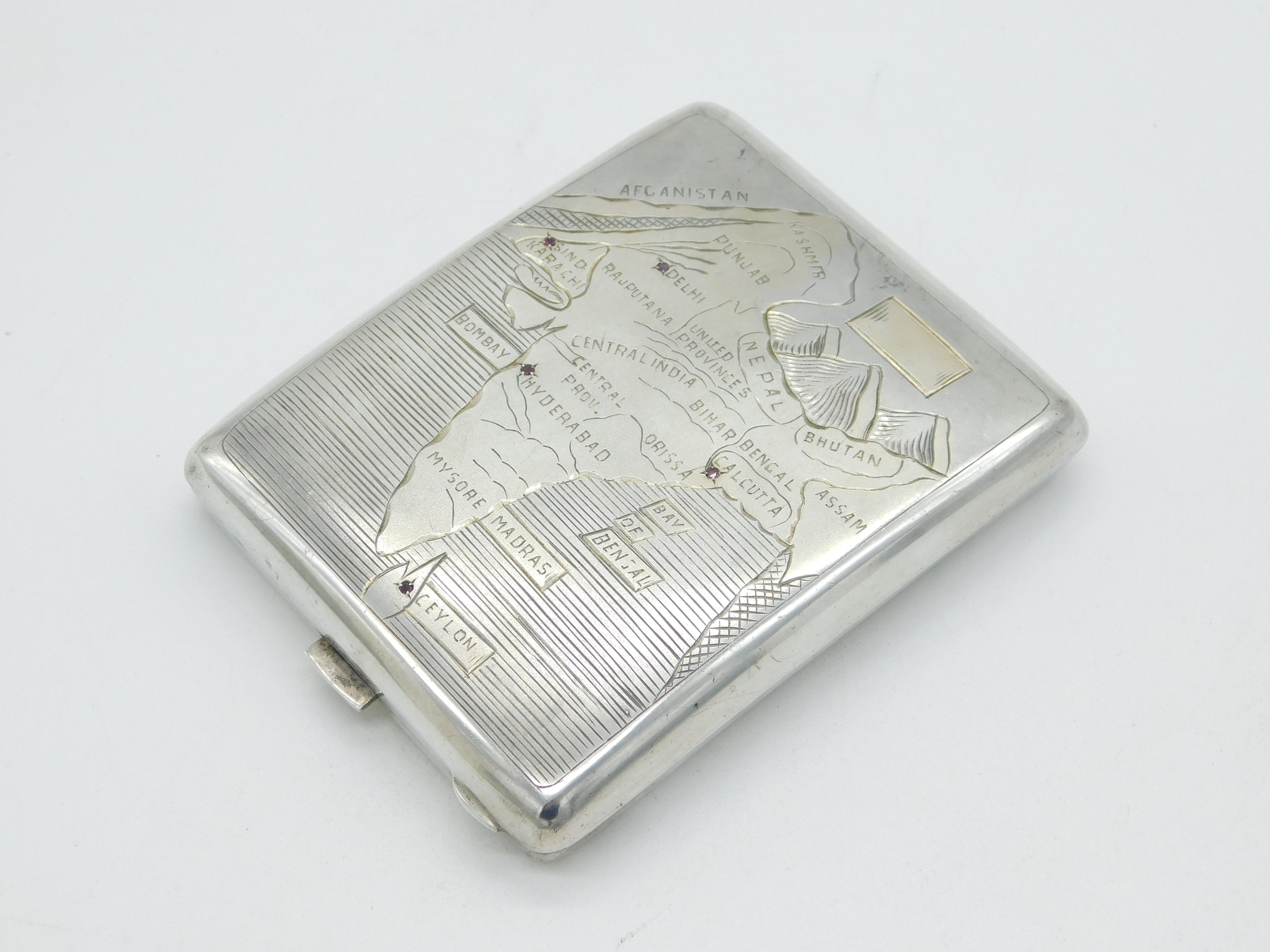 20th Century Sterling Silver Indian Region Map Cigarette Case Antique c1920