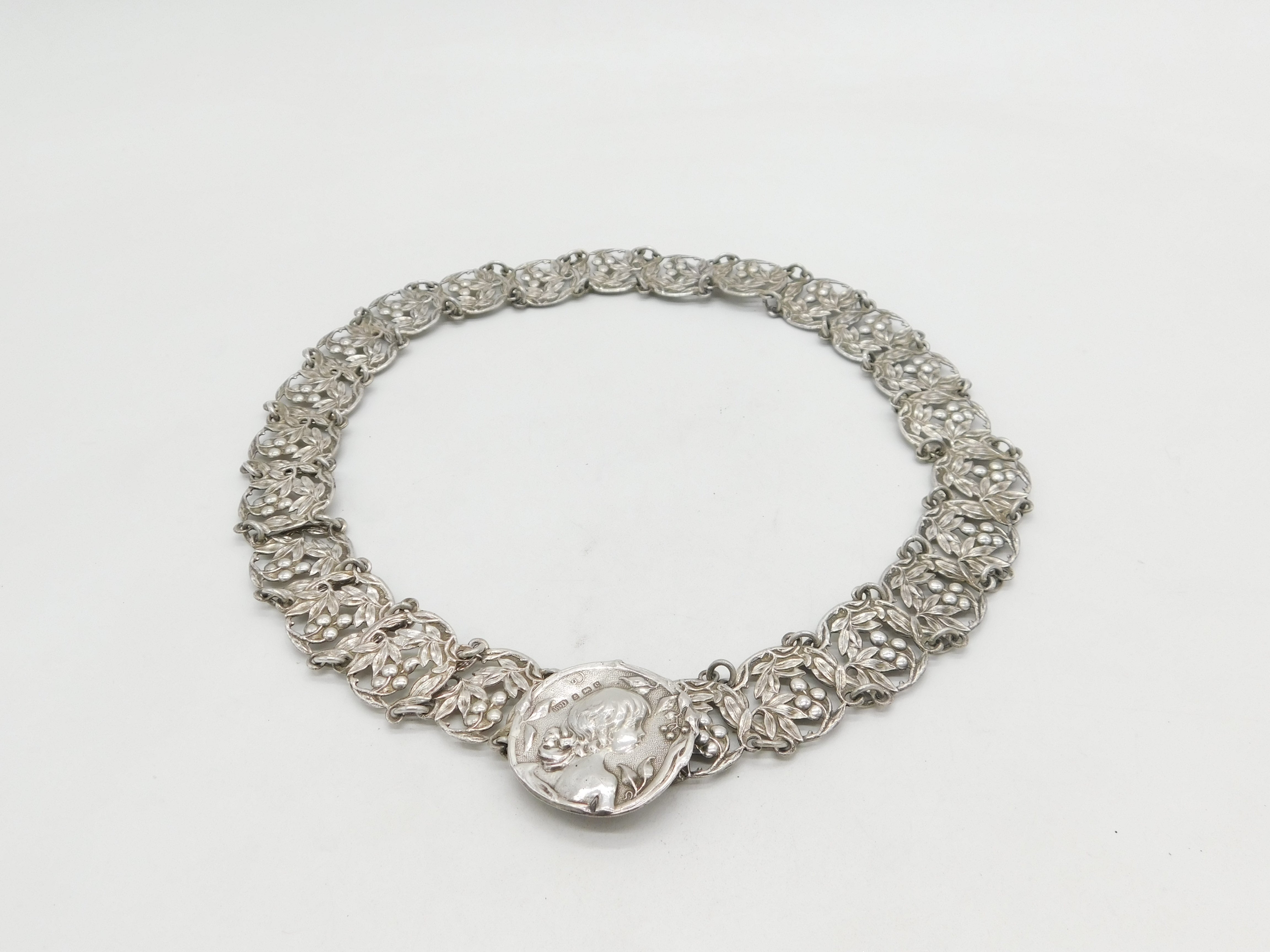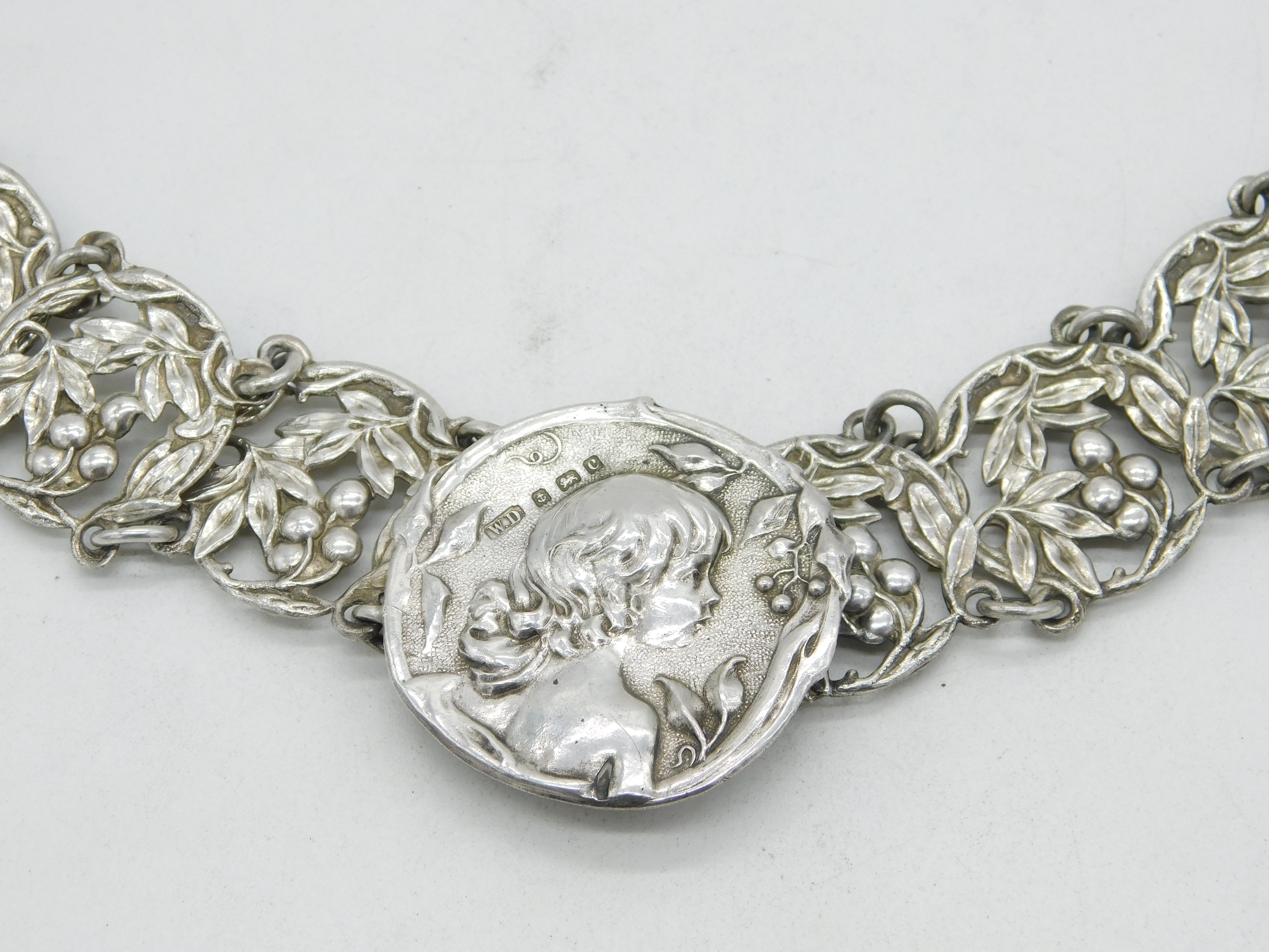 Art Nouveau Sterling Silver Vine Pattern & Young Girl Nurses Belt Antique 1902 Birmingham