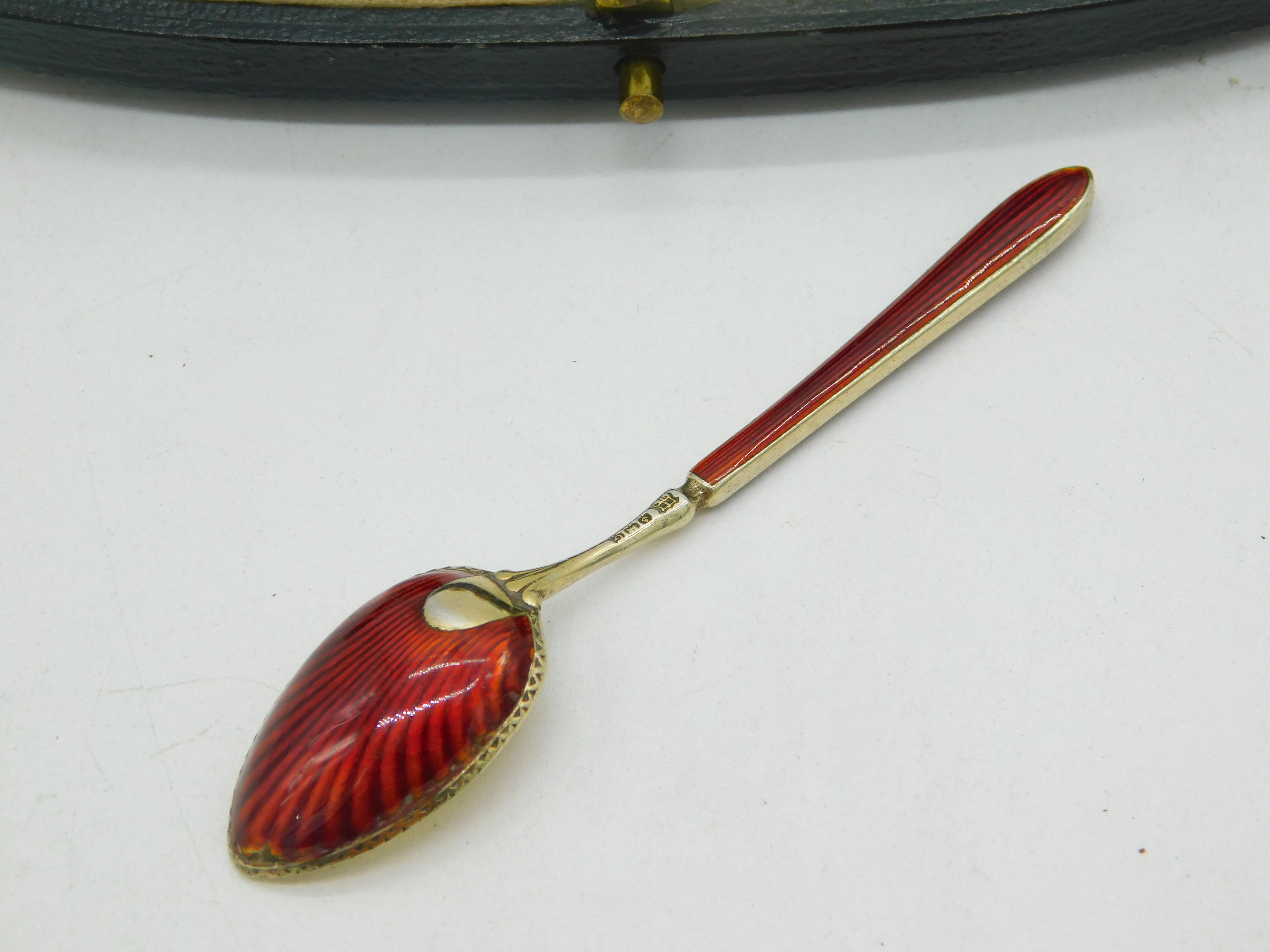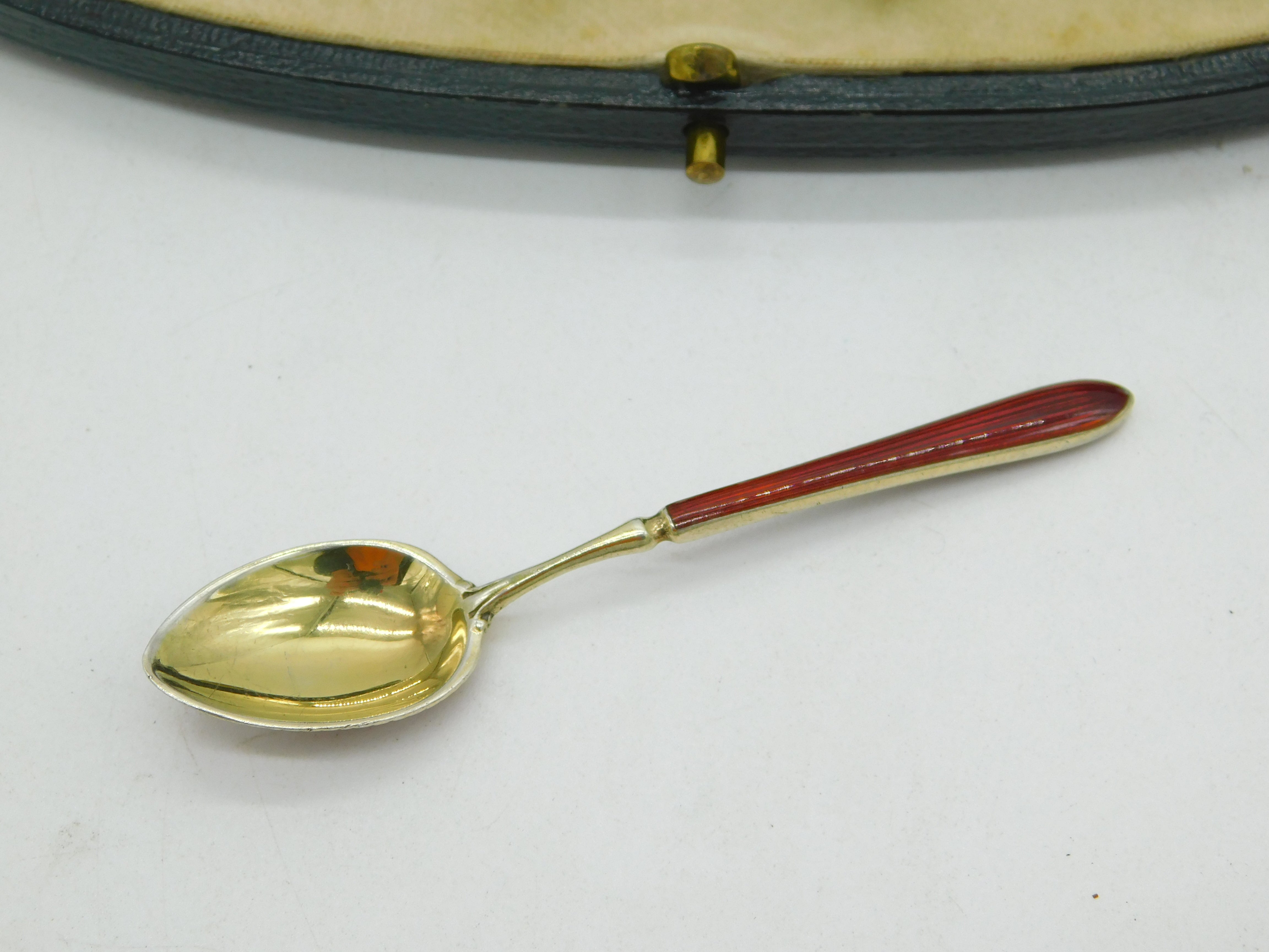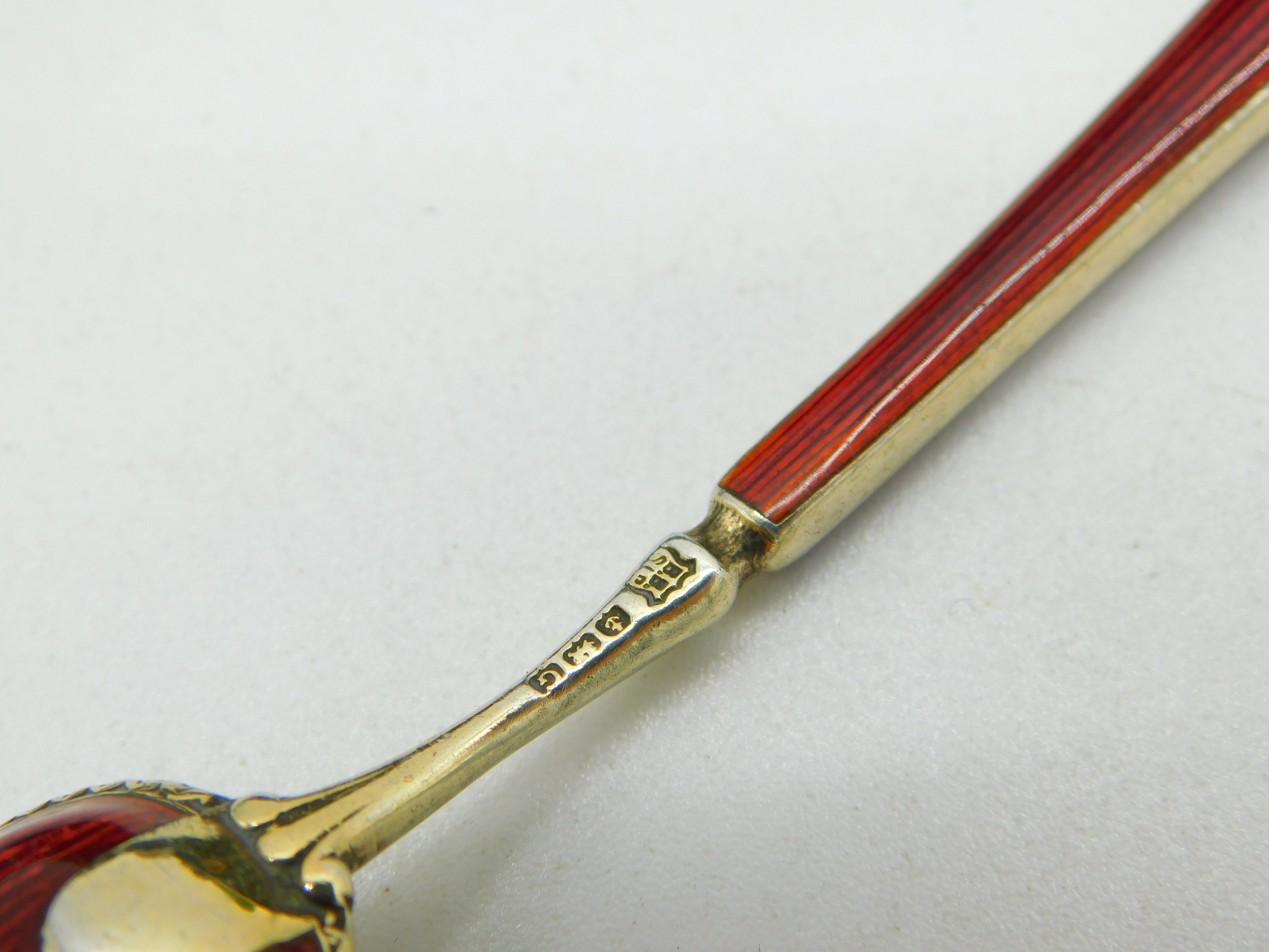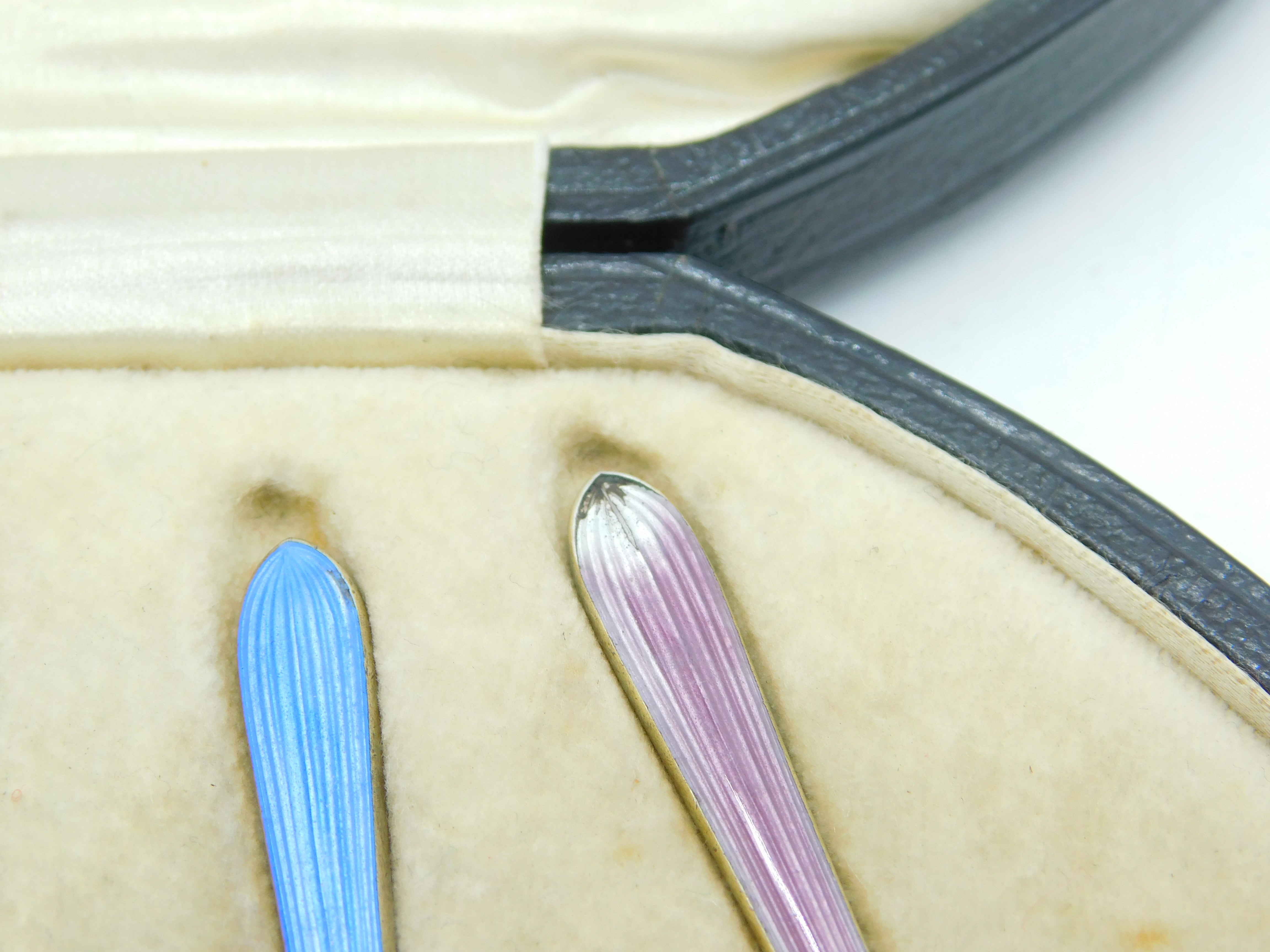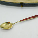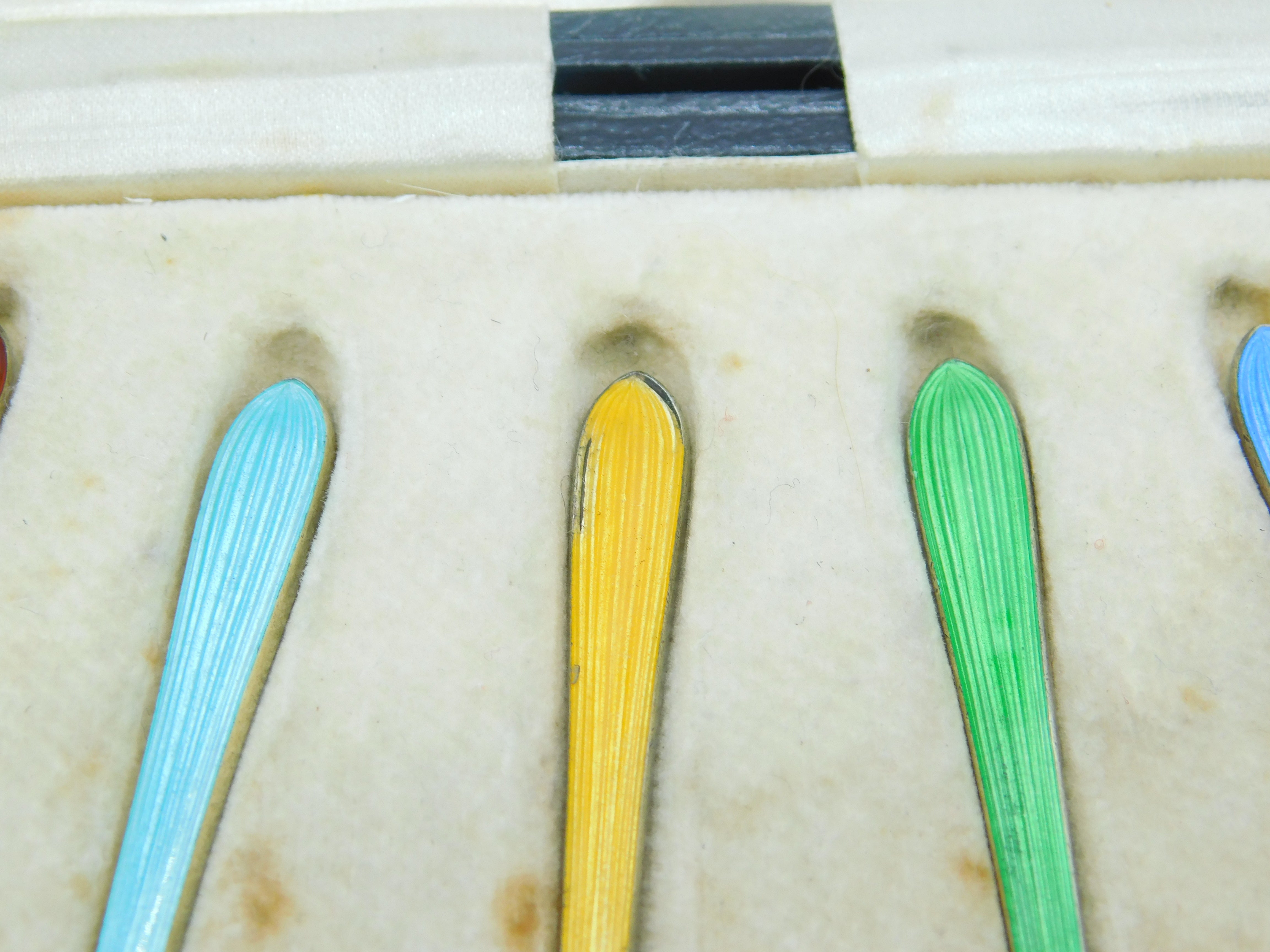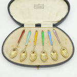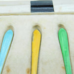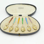 Boxed Set of Sterling Silver & Enamel Teaspoons Antique 1930 Birmingham Deco