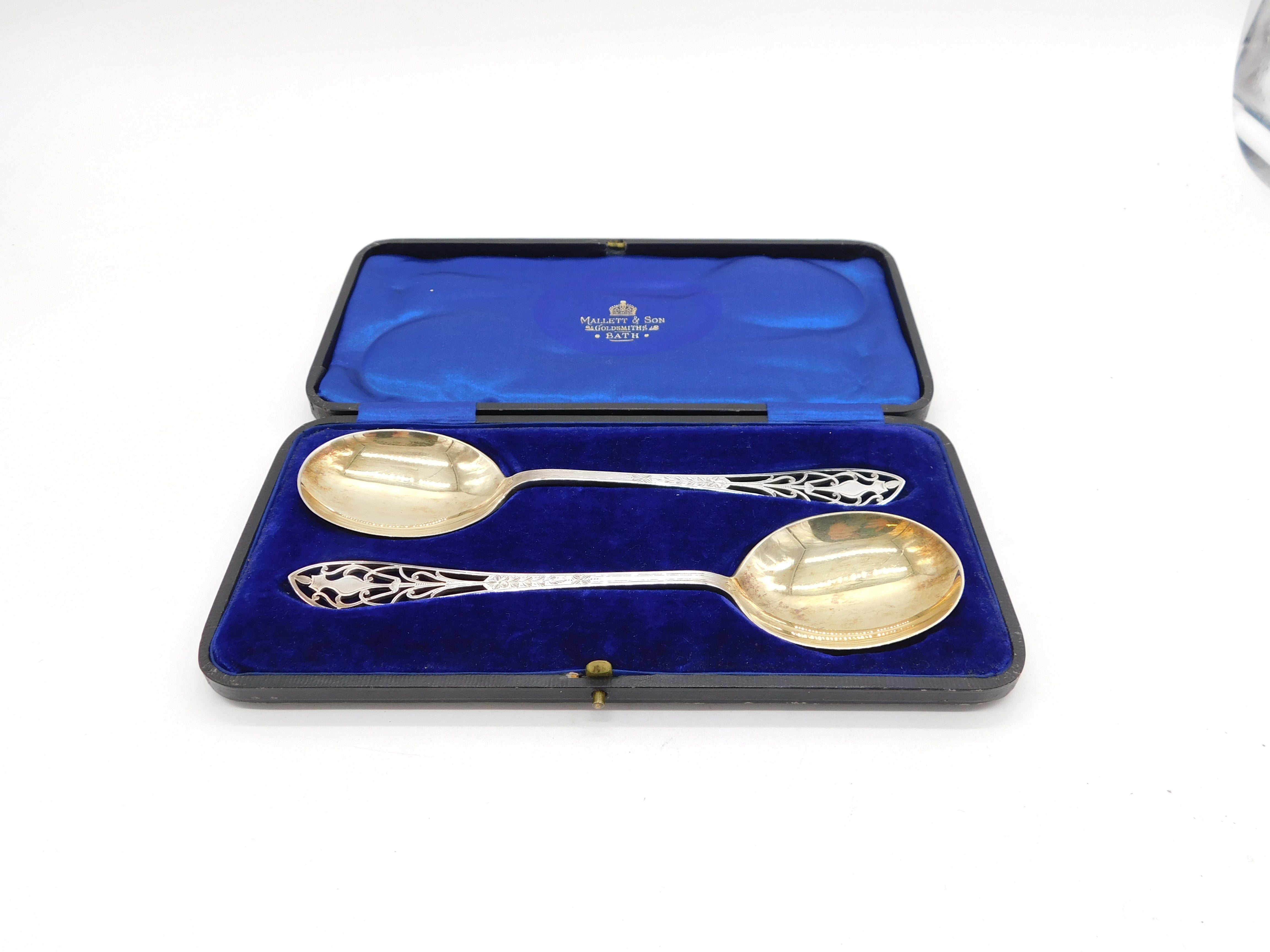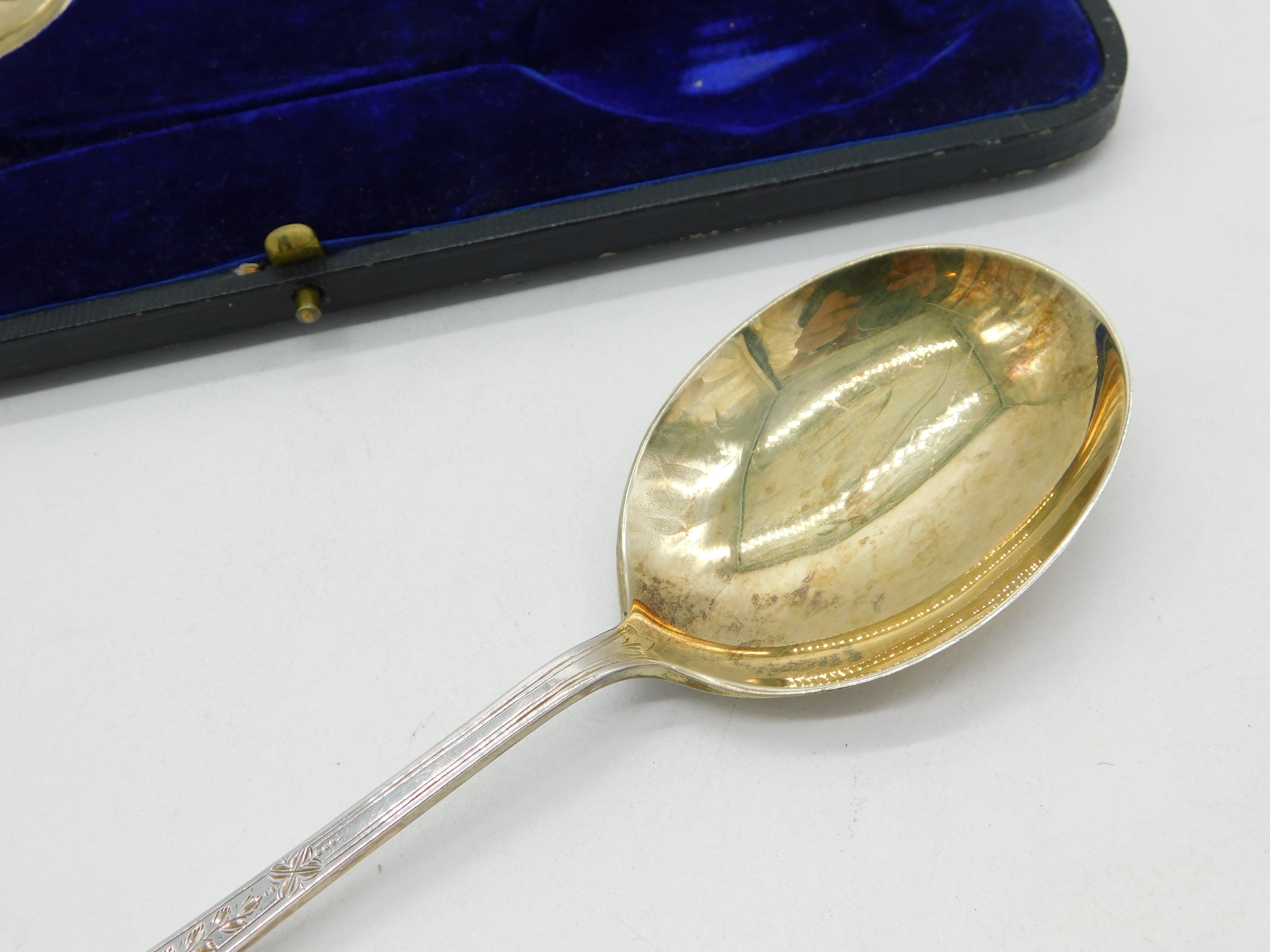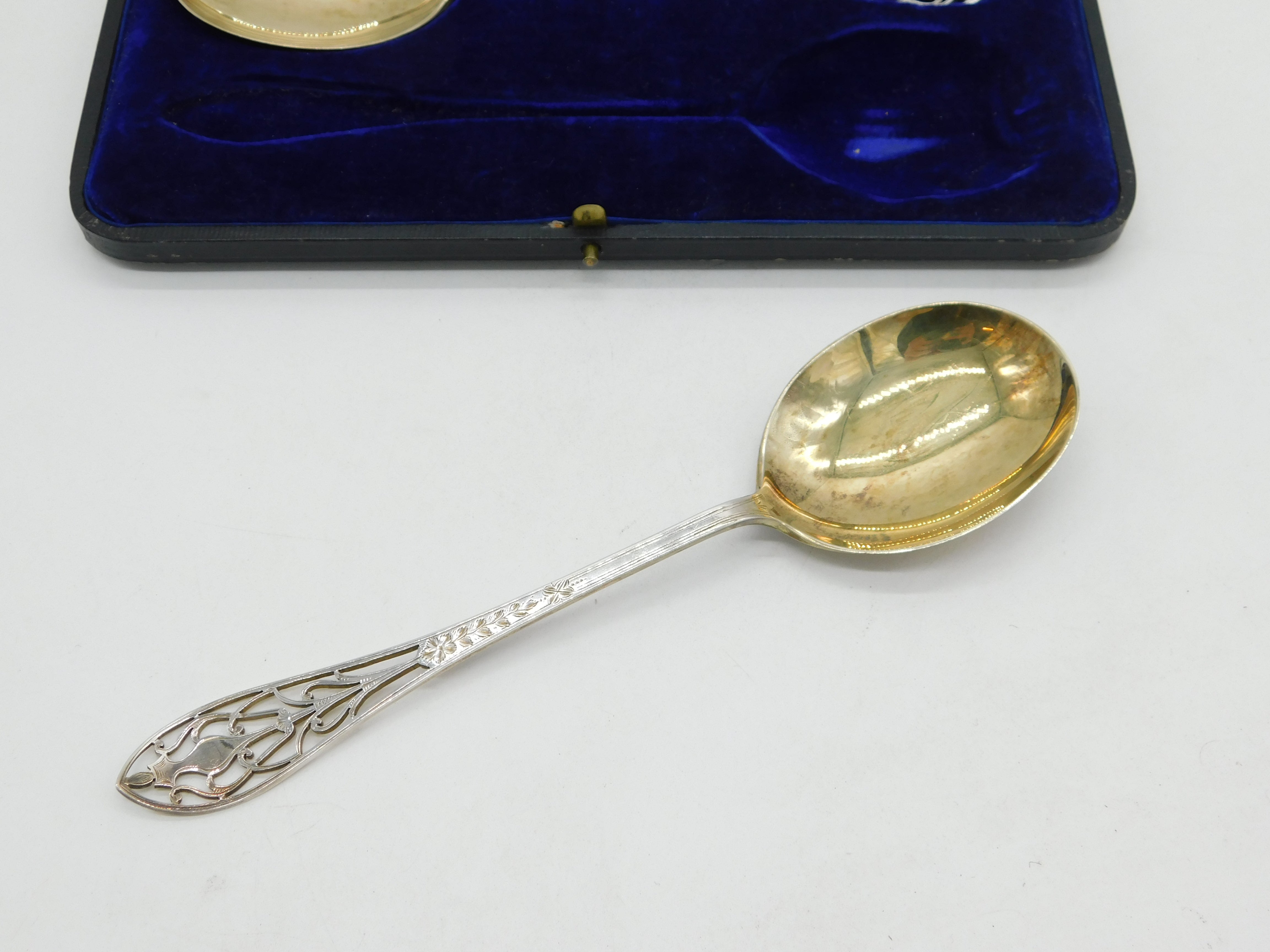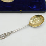 Boxed Set of Sterling Silver Floral Pattern Serving Spoons Antique 1912 Deco