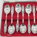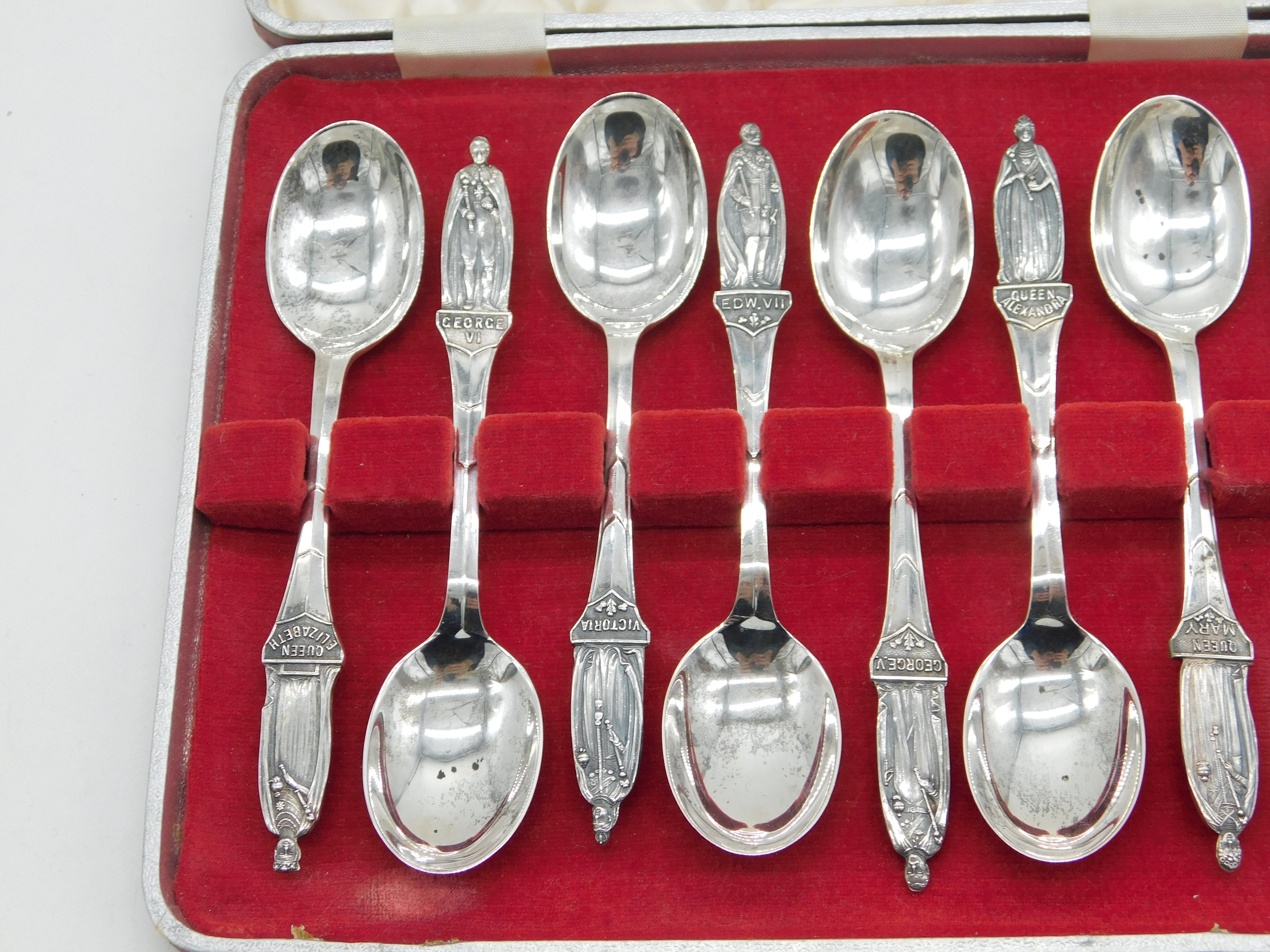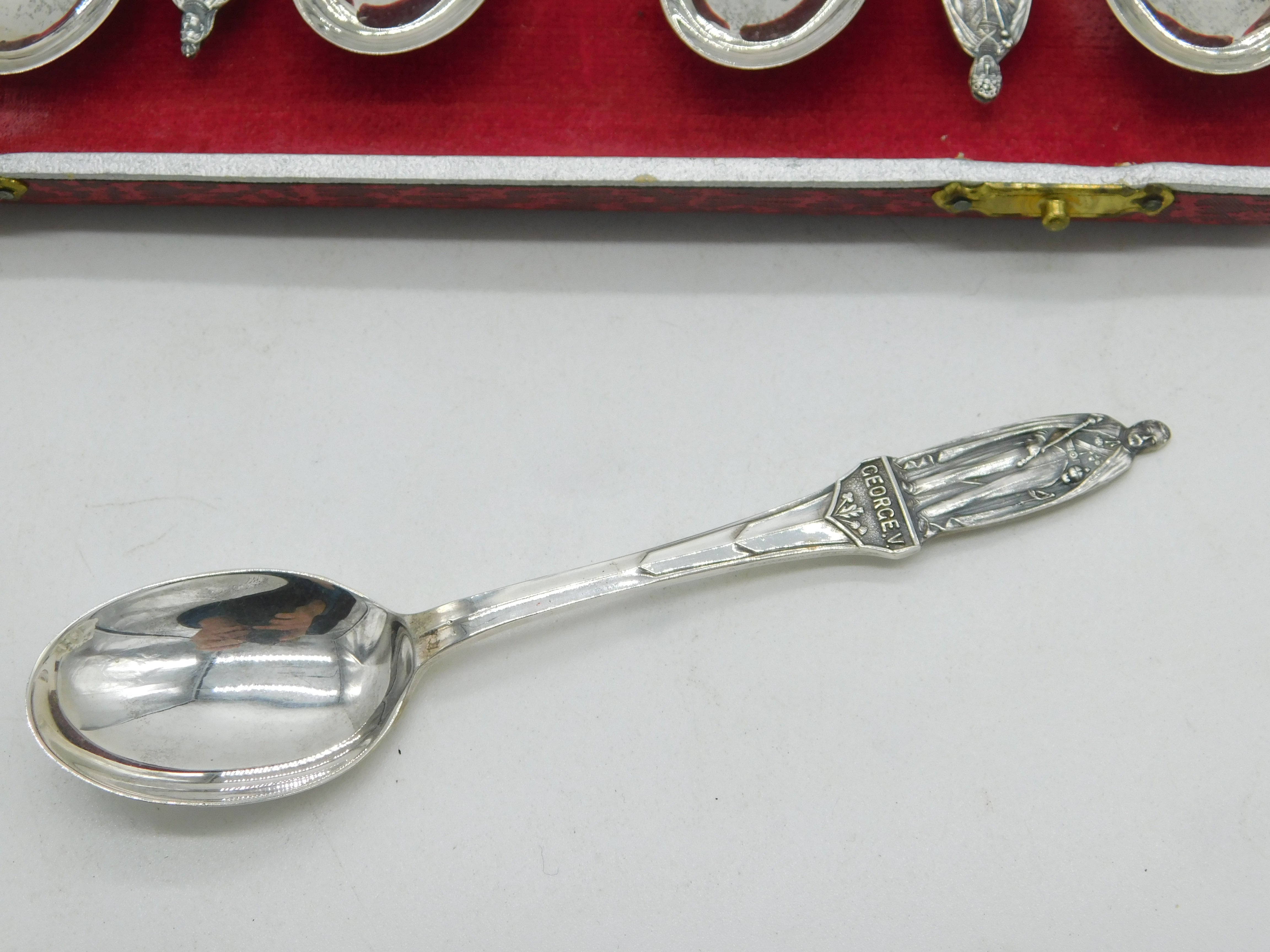Boxed Sterling Silver British Monarchs Teaspoon Set Antique 1936 Birmingham