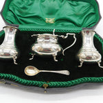 Boxed Sterling Silver Cruet Mustard & Pepper Set Antique 1917 Sheffield