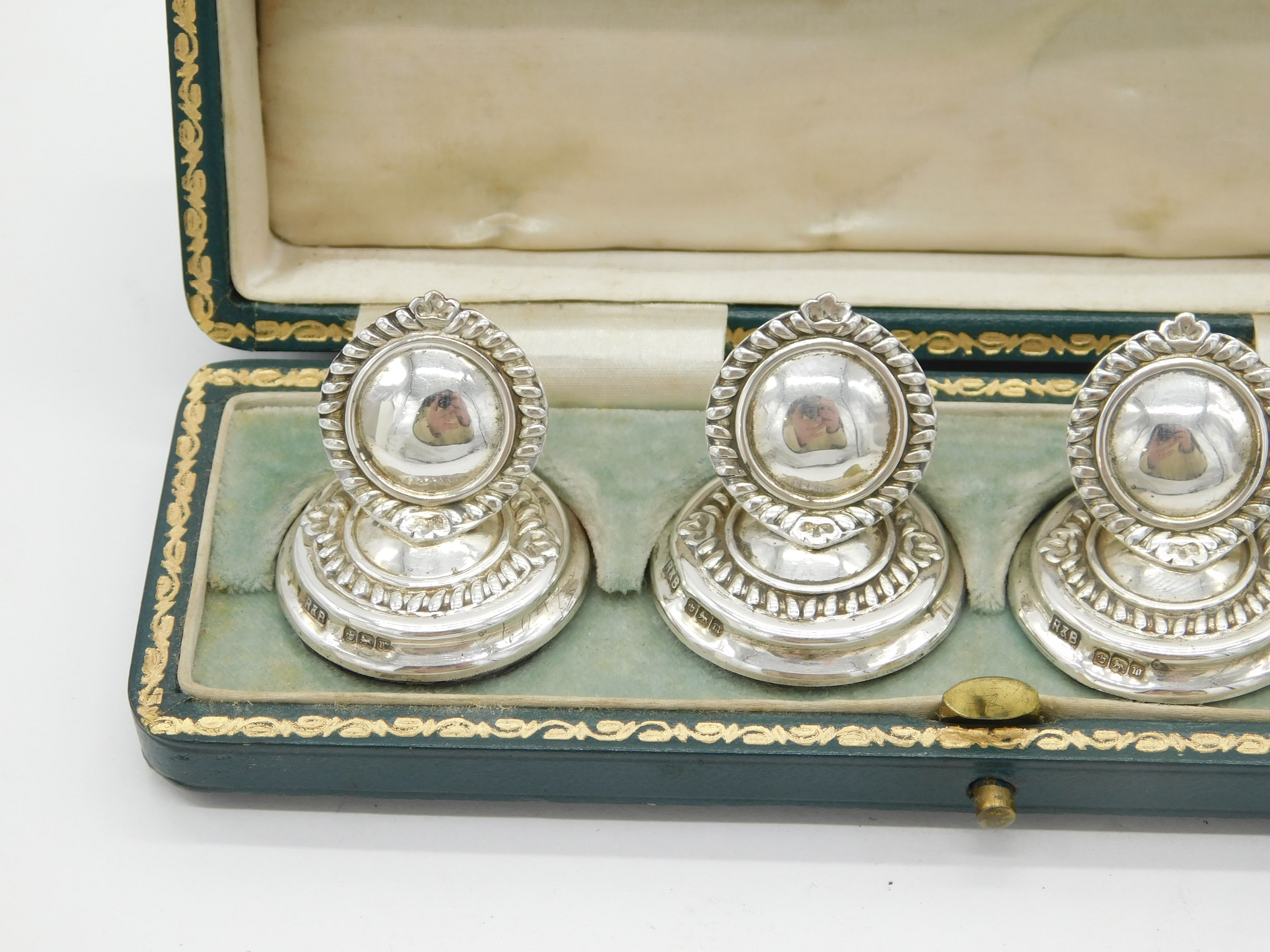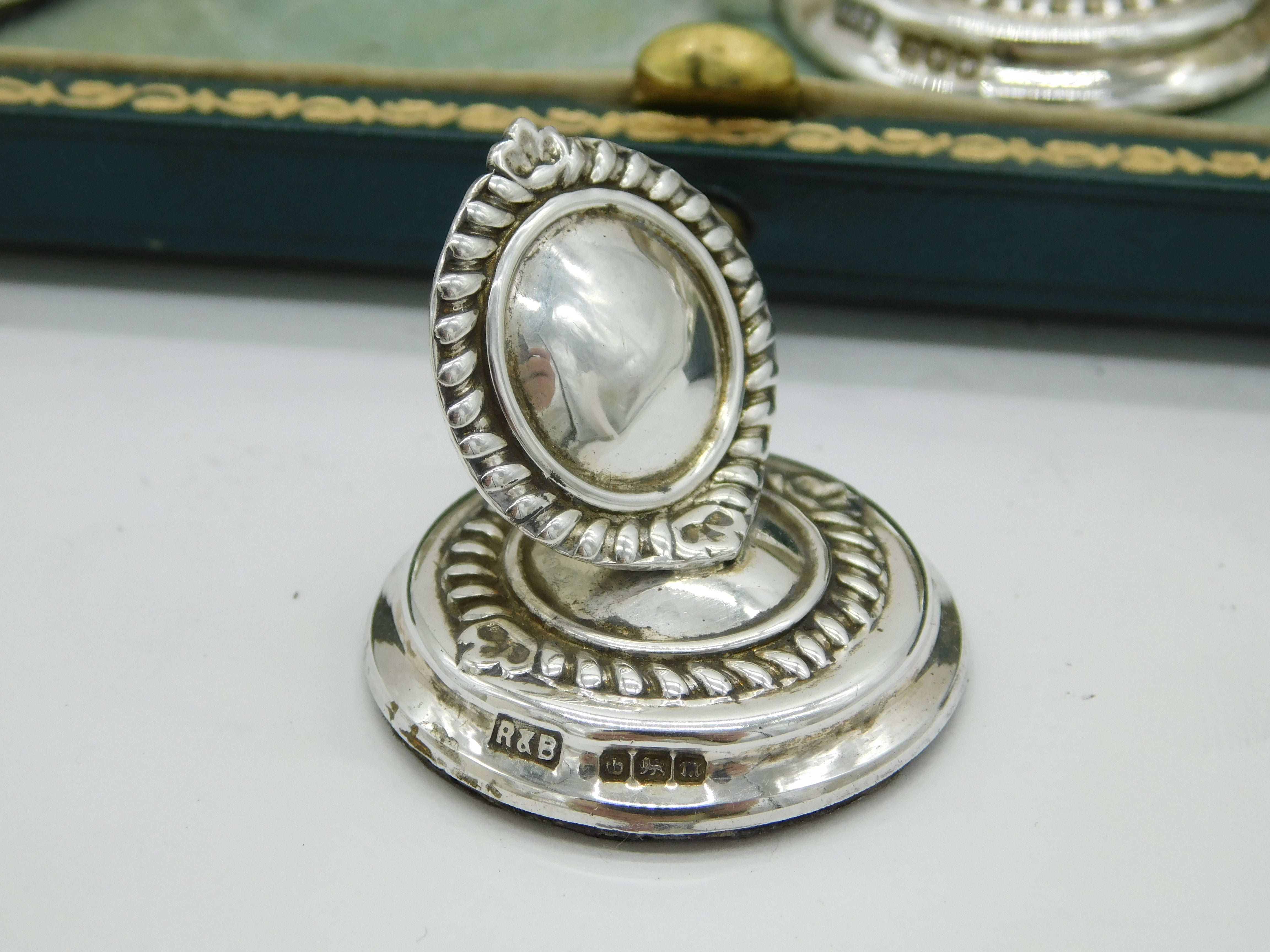 Details: A fantastic and wonderfully designed antique edwardian boxed set of four sterling silver menu holders or place settings with charming floral decoration hallmarked Sheffield 1904 by Roberts & Belk. This is a wonderful item that would make a perfect gift or addition to any collection. We are more than happy to provide XRF reports for items upon request.