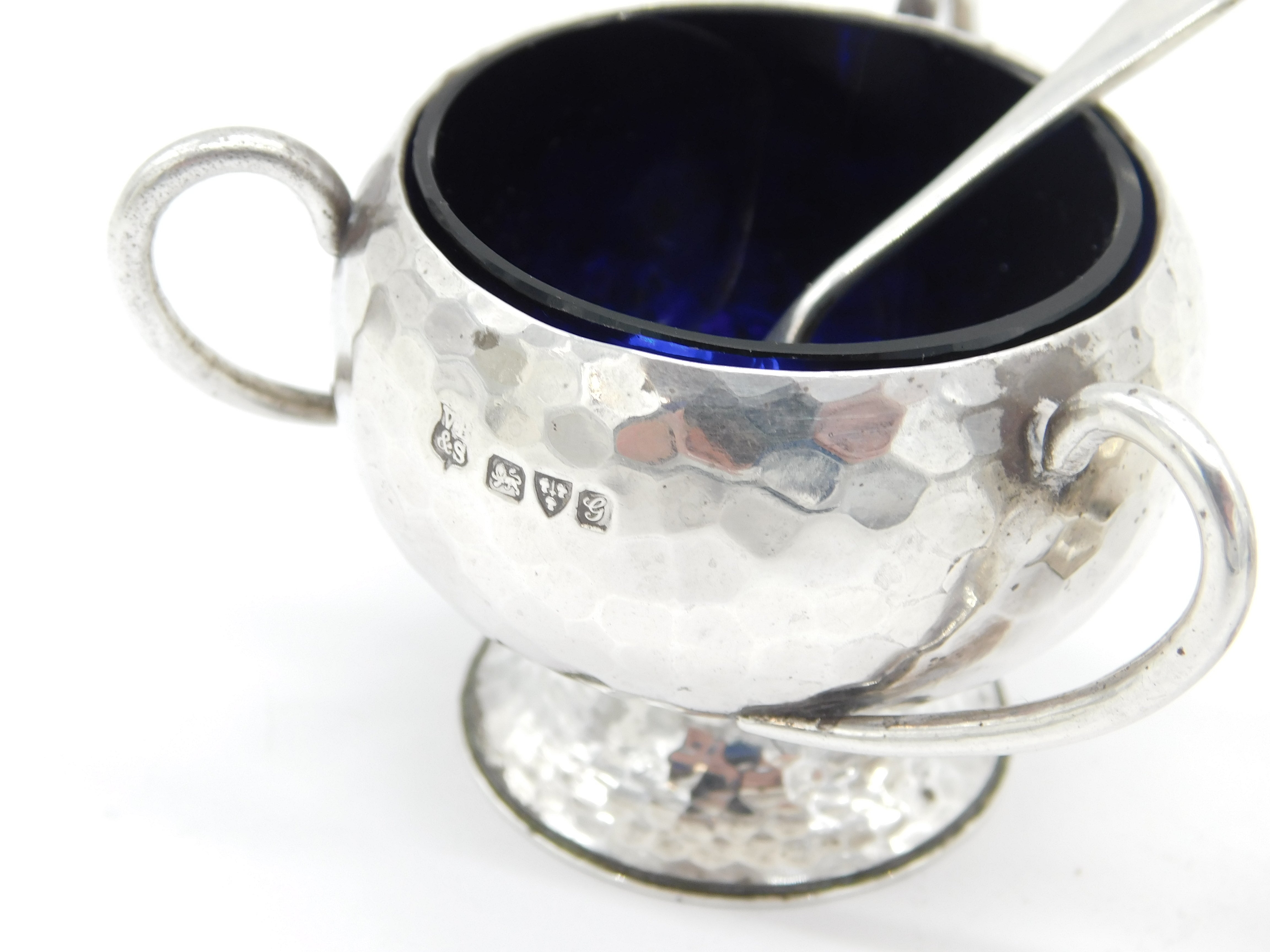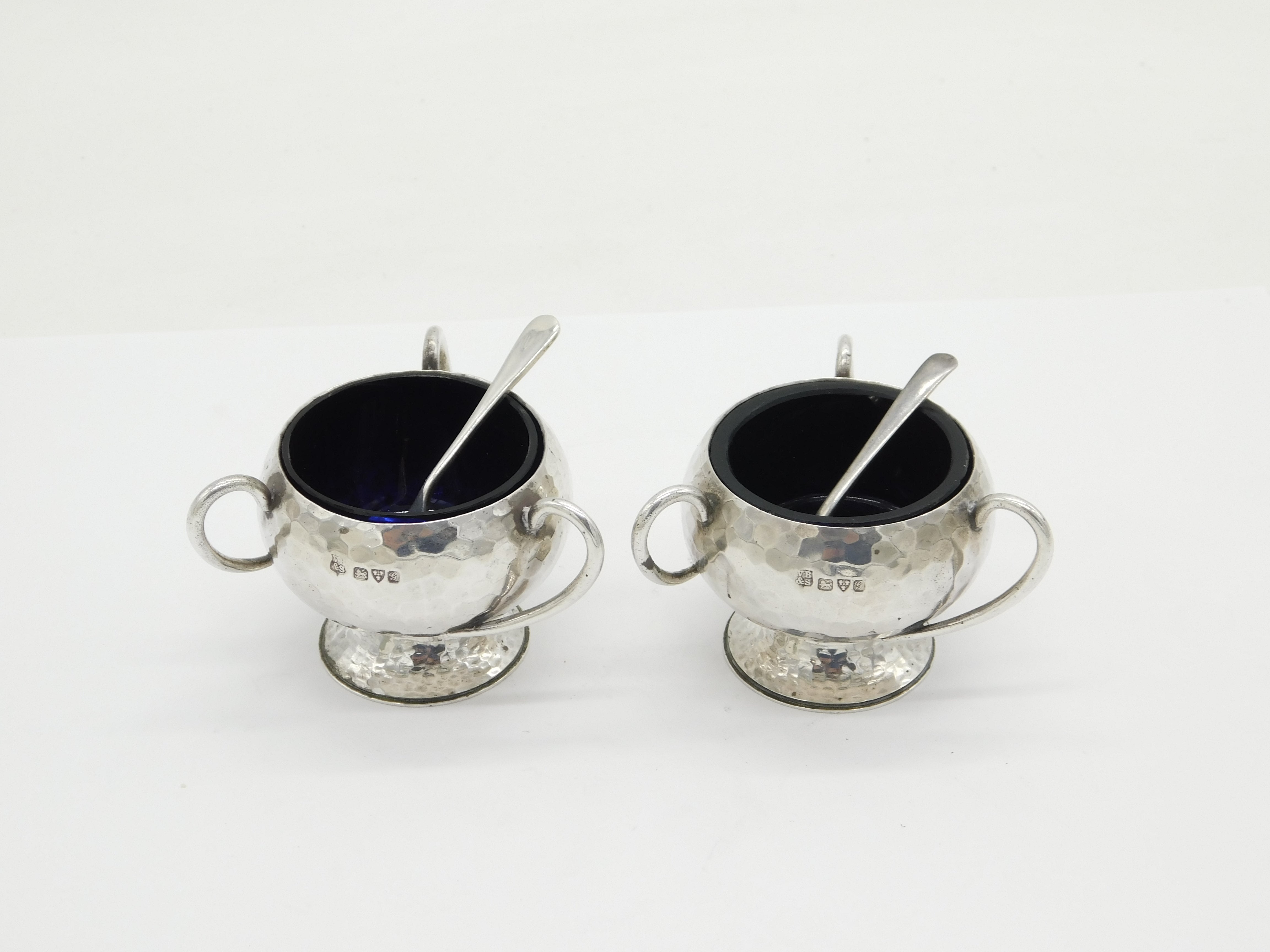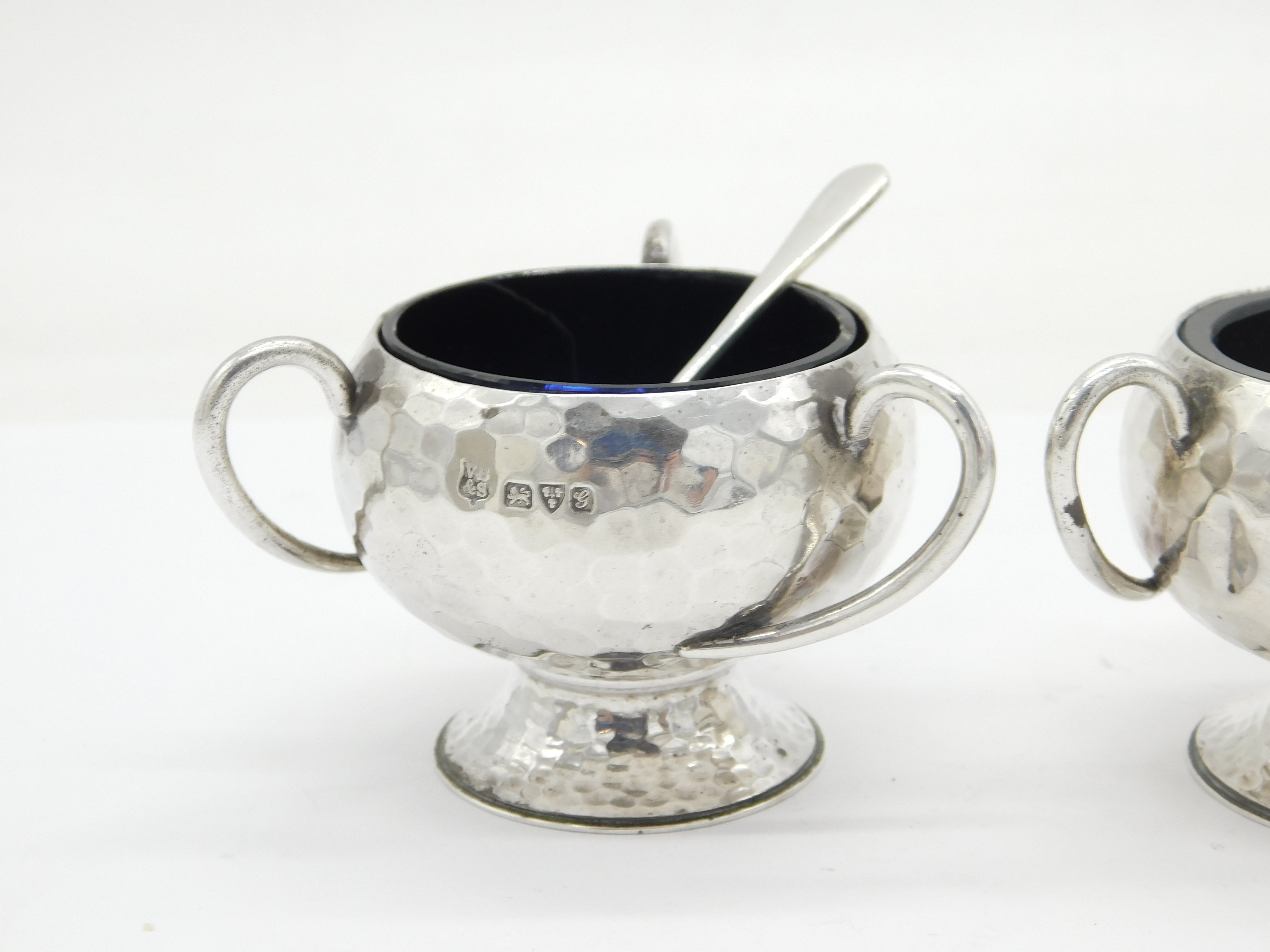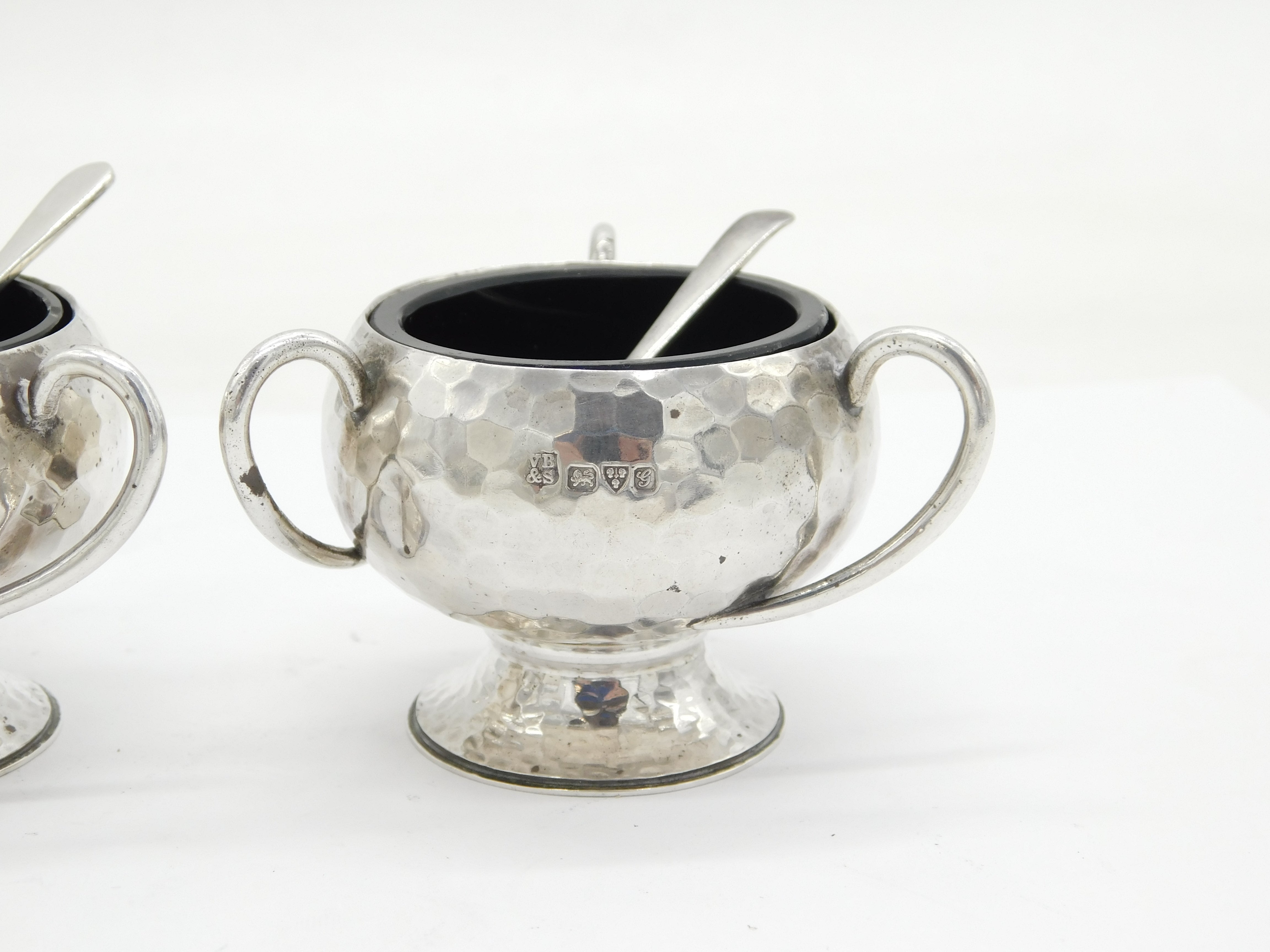 Edwardian Planished Sterling Silver Tyg Salt Cellars Antique 1907 Chester
