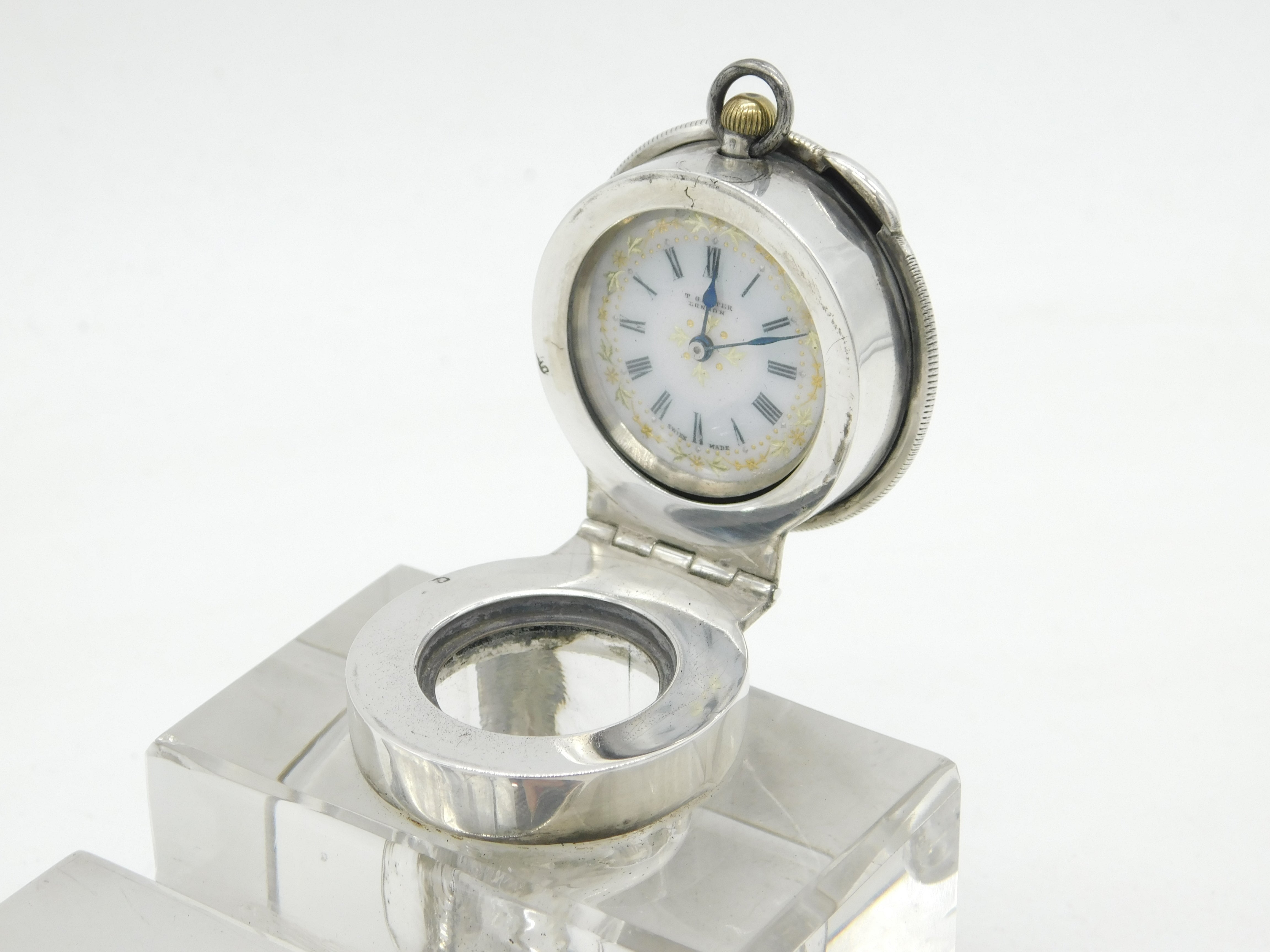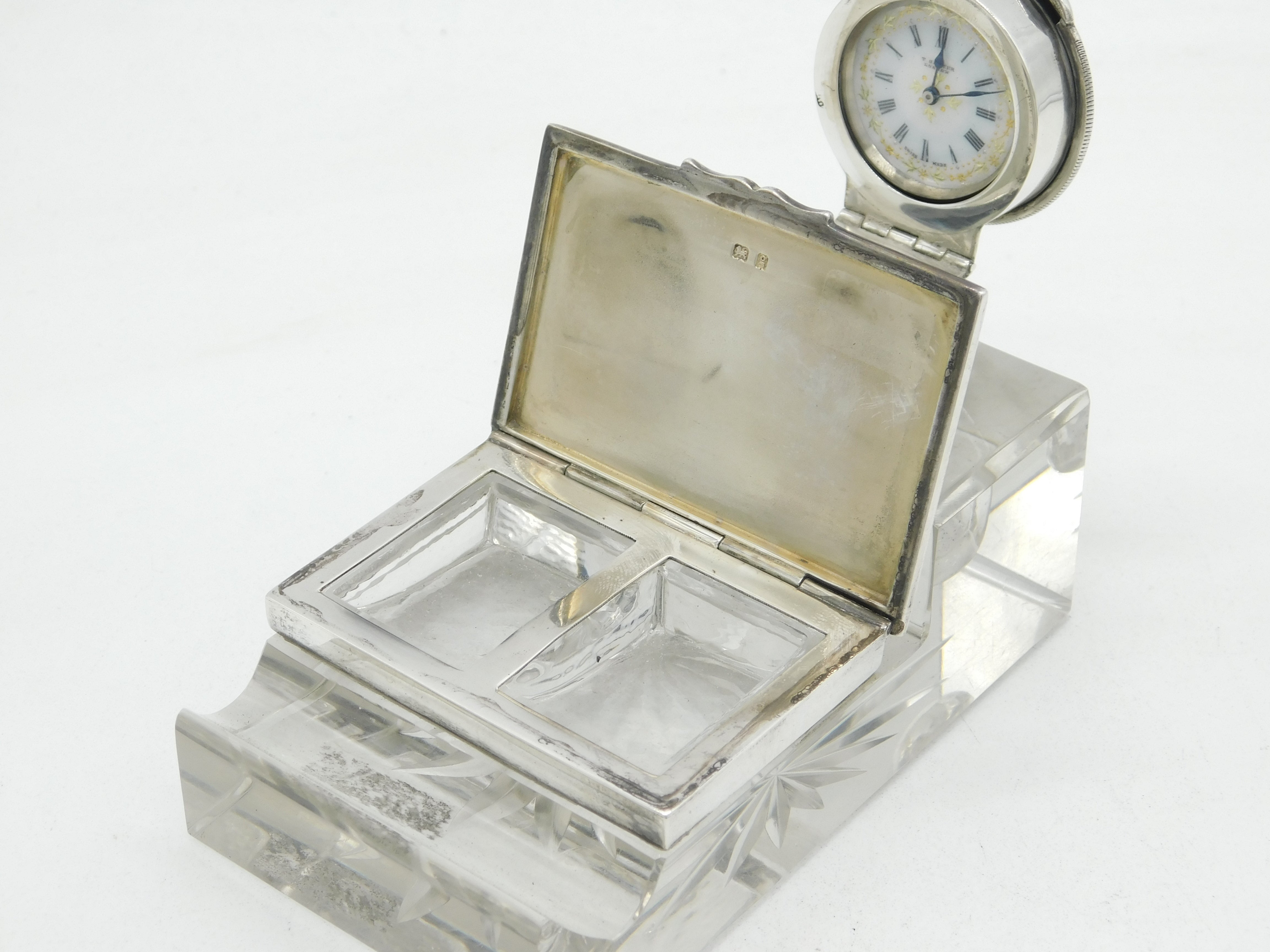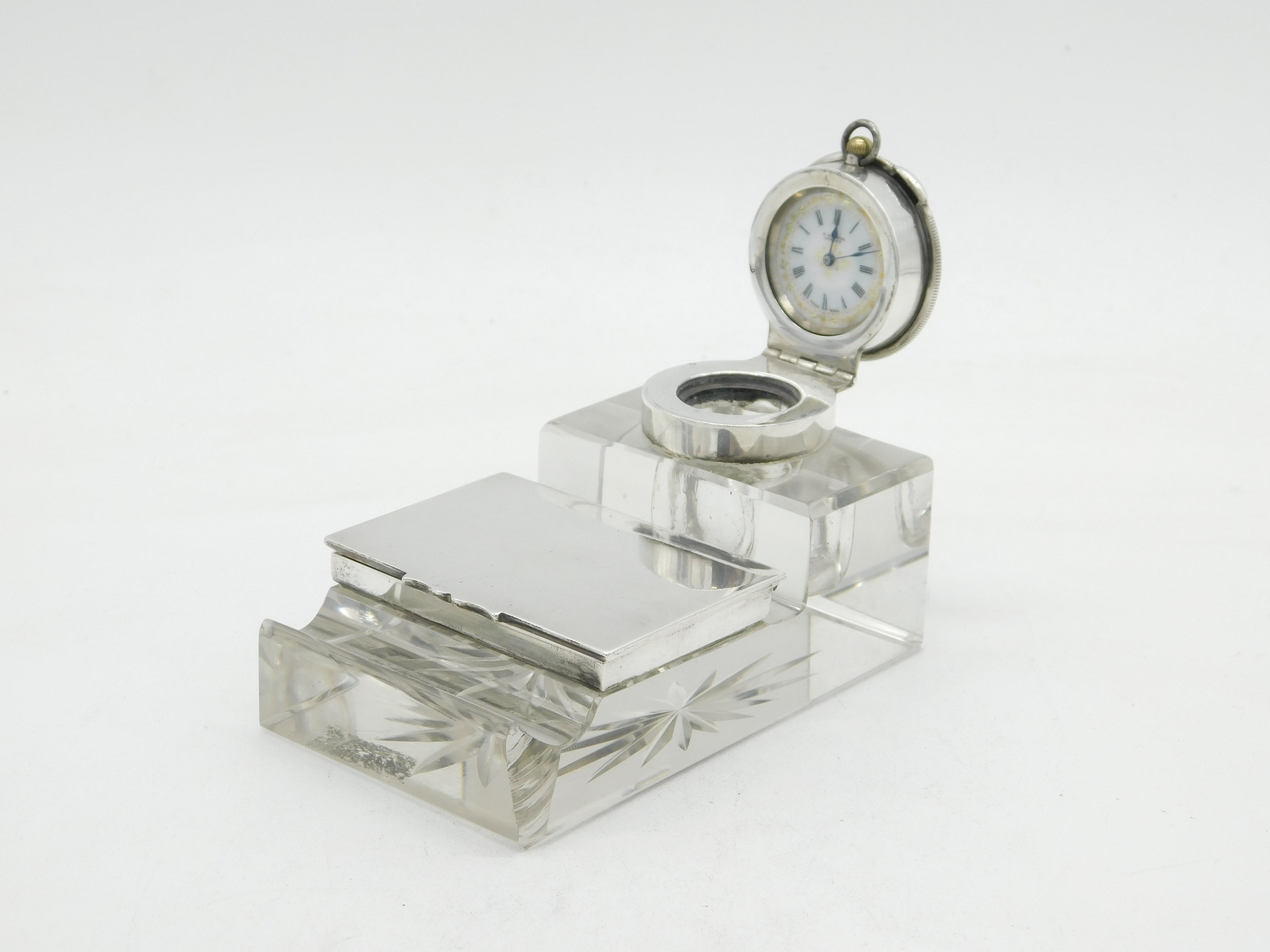Edwardian Sterling Silver Combination Desk Stamp with Pocket Watch Holder 1906 Birmingham