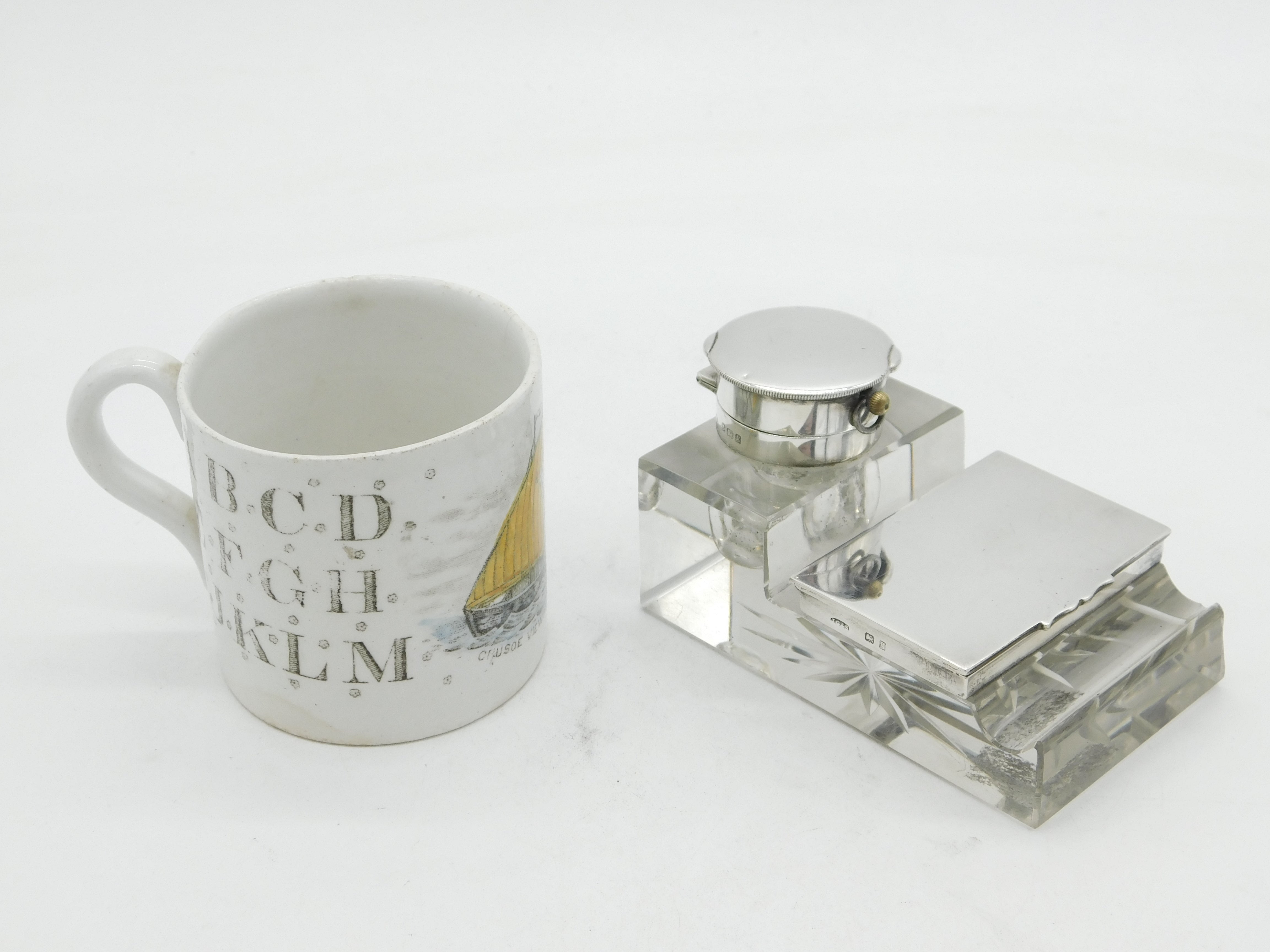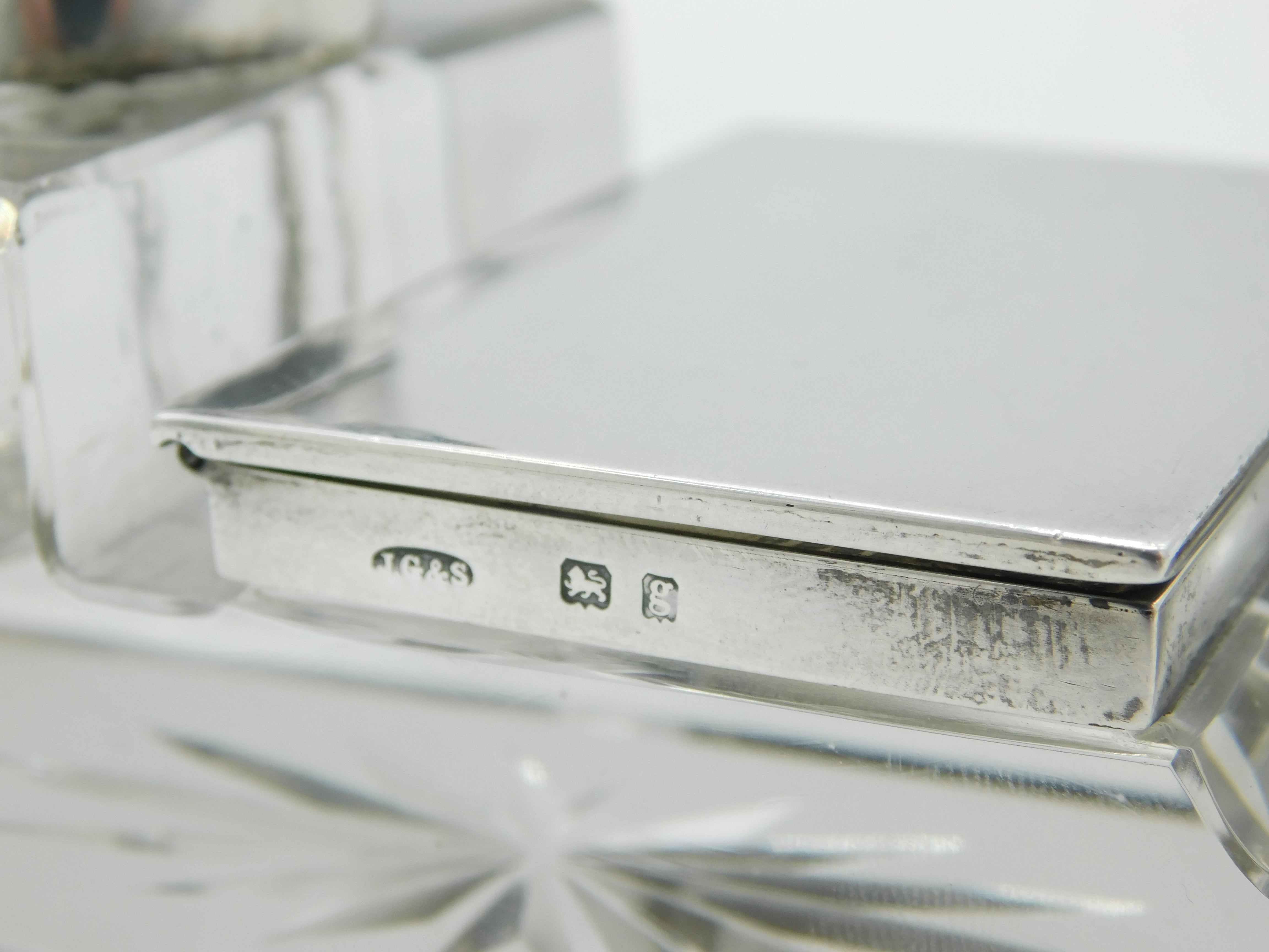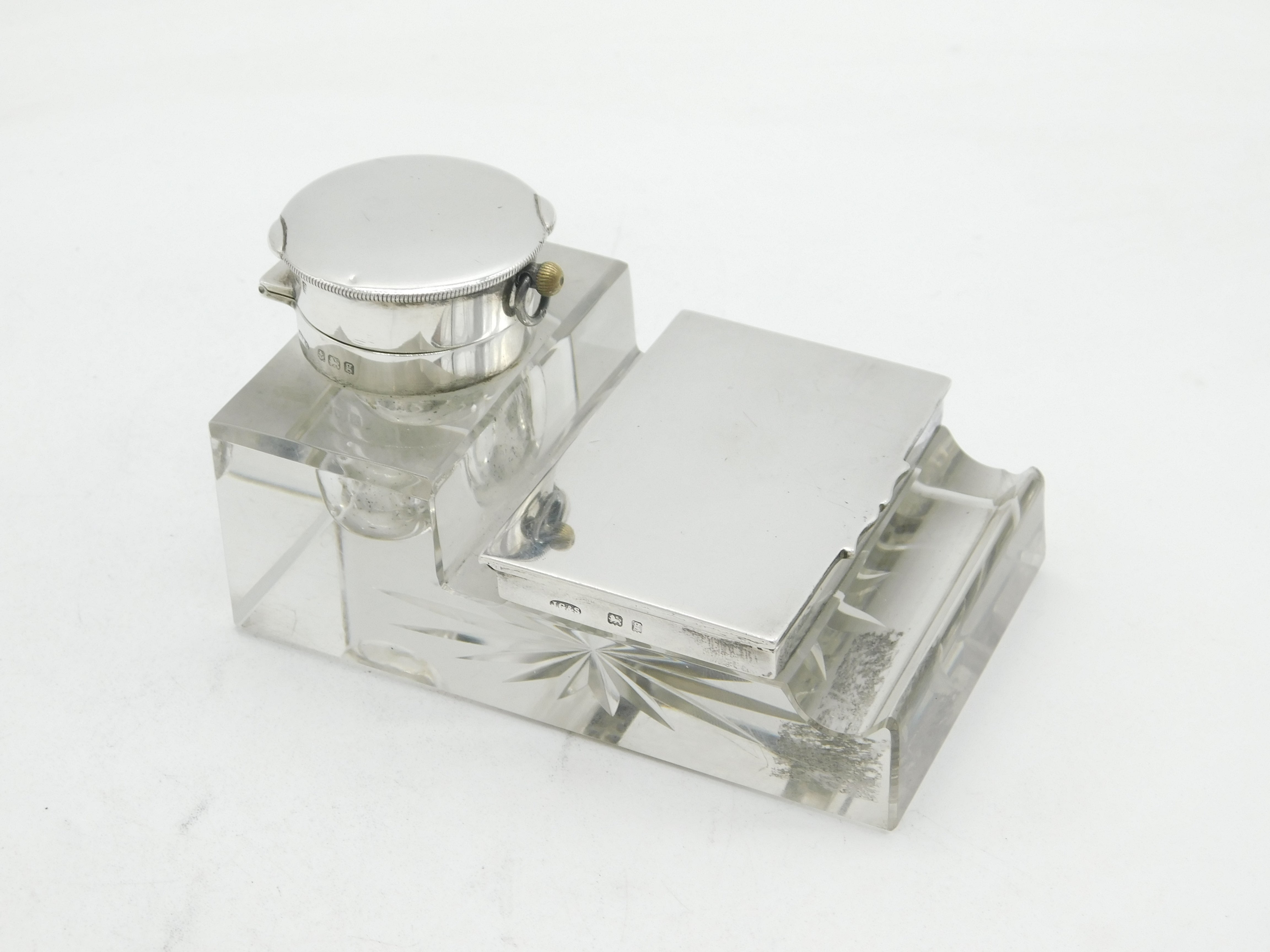 Edwardian Sterling Silver Combination Desk Stamp with Pocket Watch Holder 1906 Birmingham