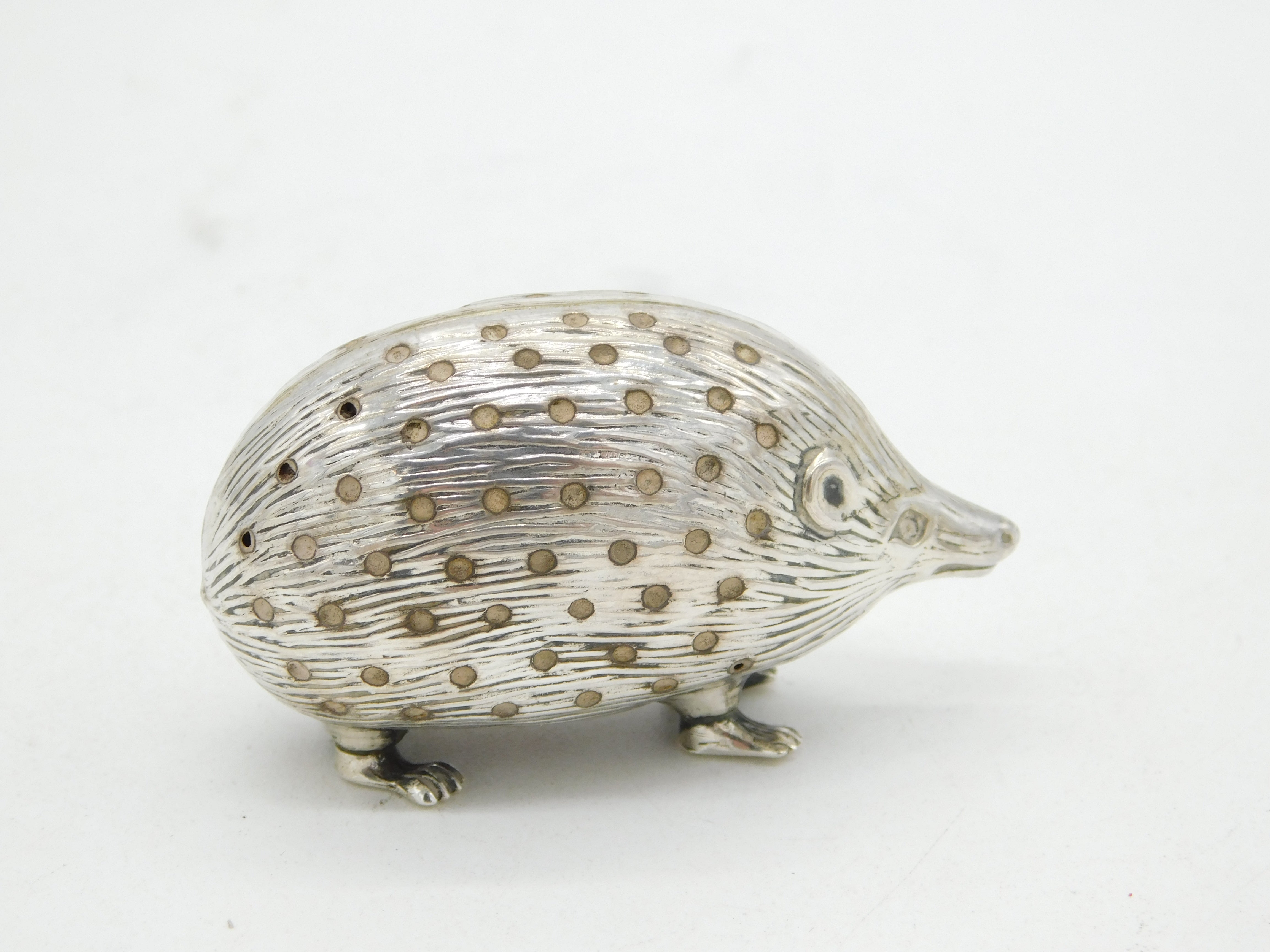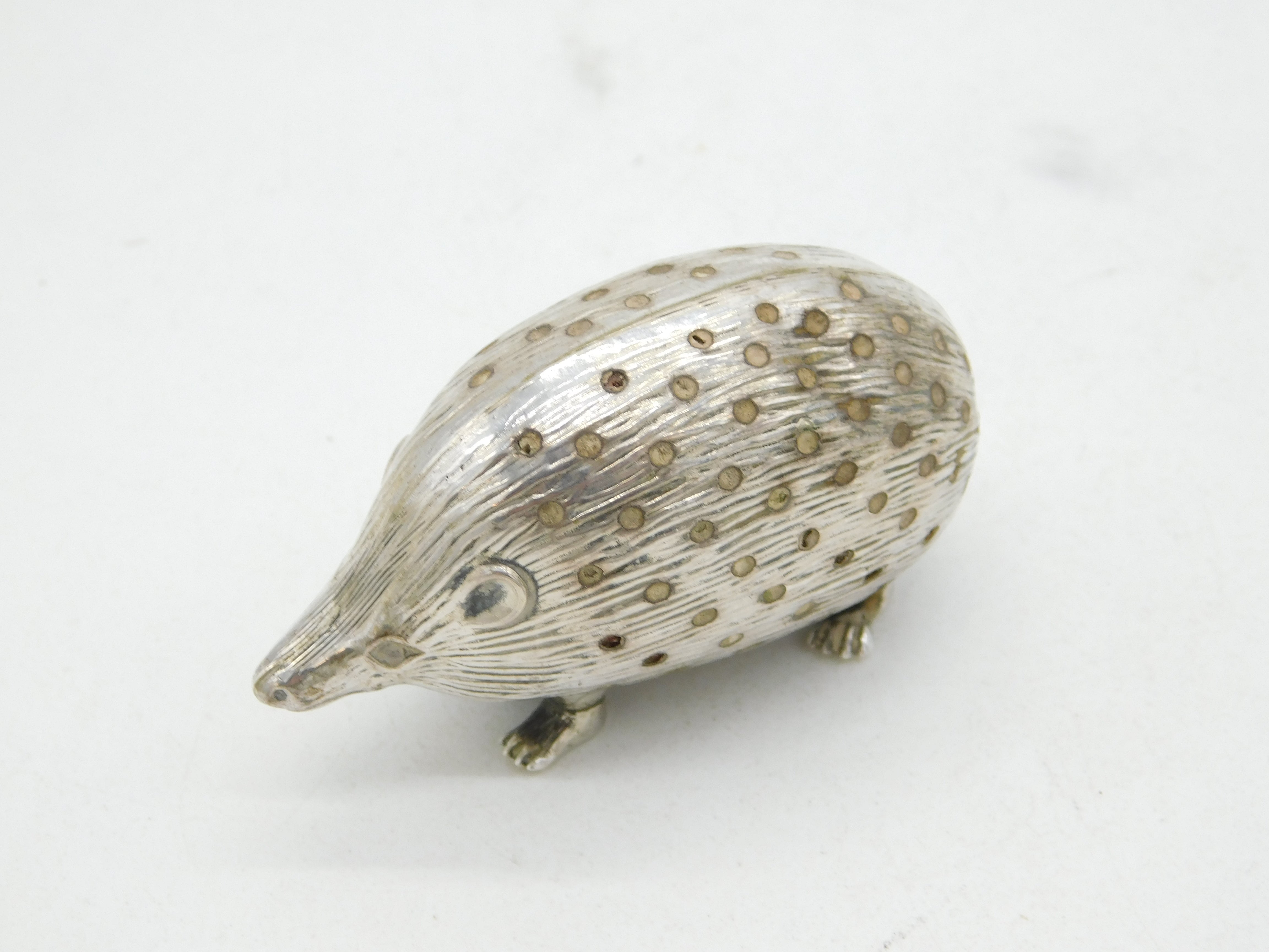 Details: A fantastic and wonderfully designed antique edwardian sterling silver hedgehog form pin cushion or cocktail stick holder with charming detailing hallmarked Birmingham 1906 by Adie & Lovekin. This is a wonderful item that would make a perfect gift or addition to any collection. We are more than happy to provide XRF reports for items upon request.
