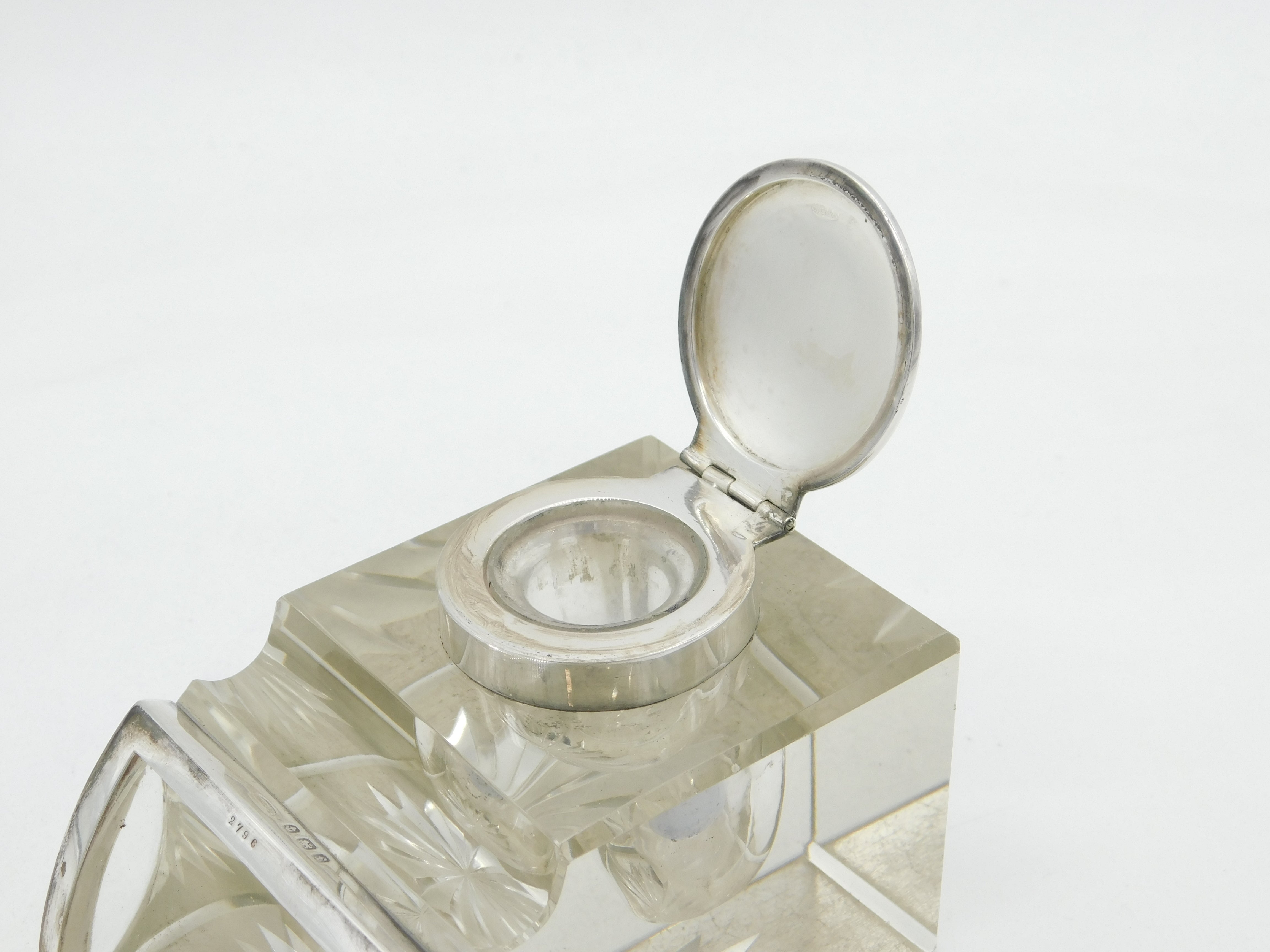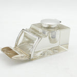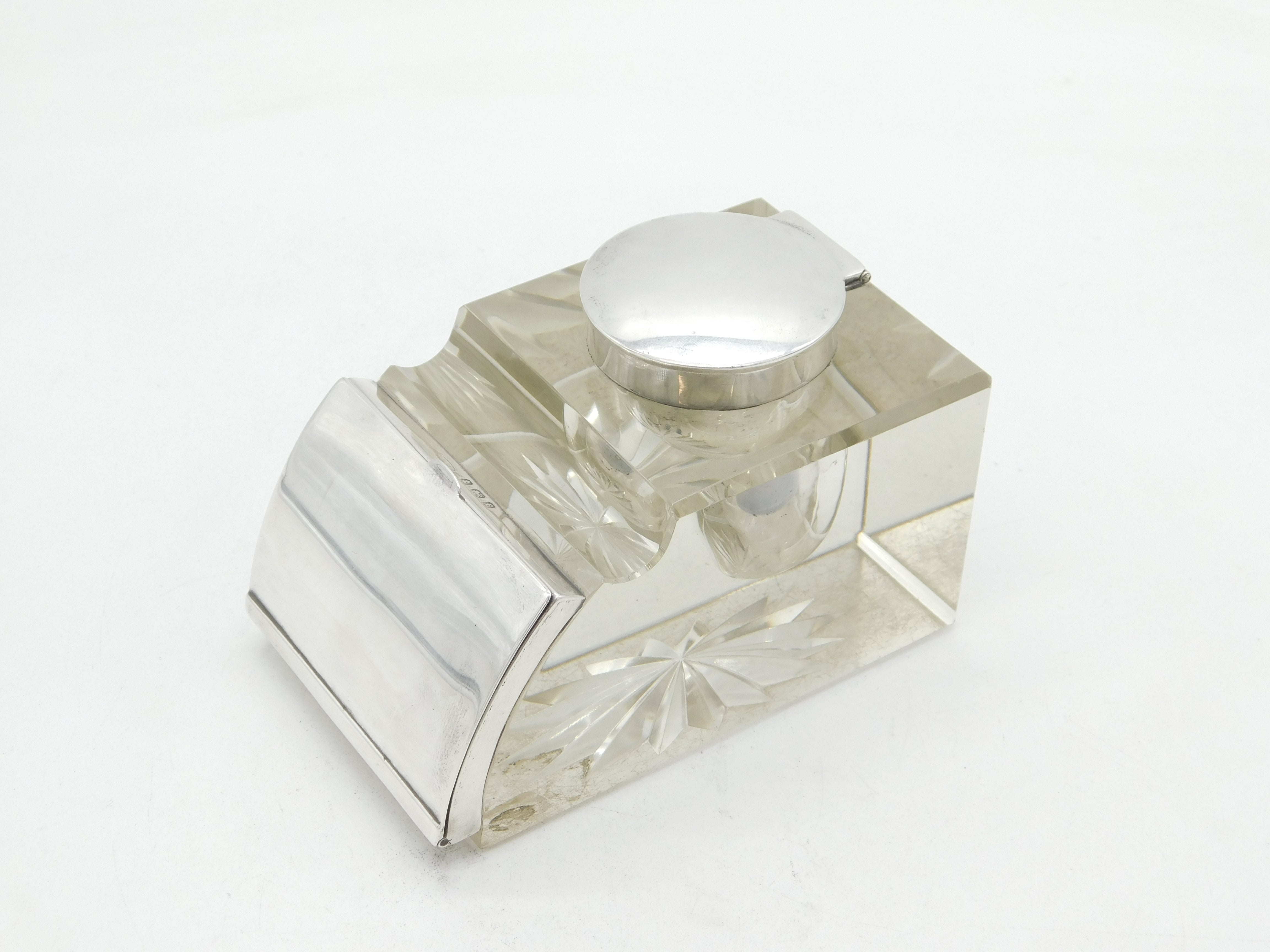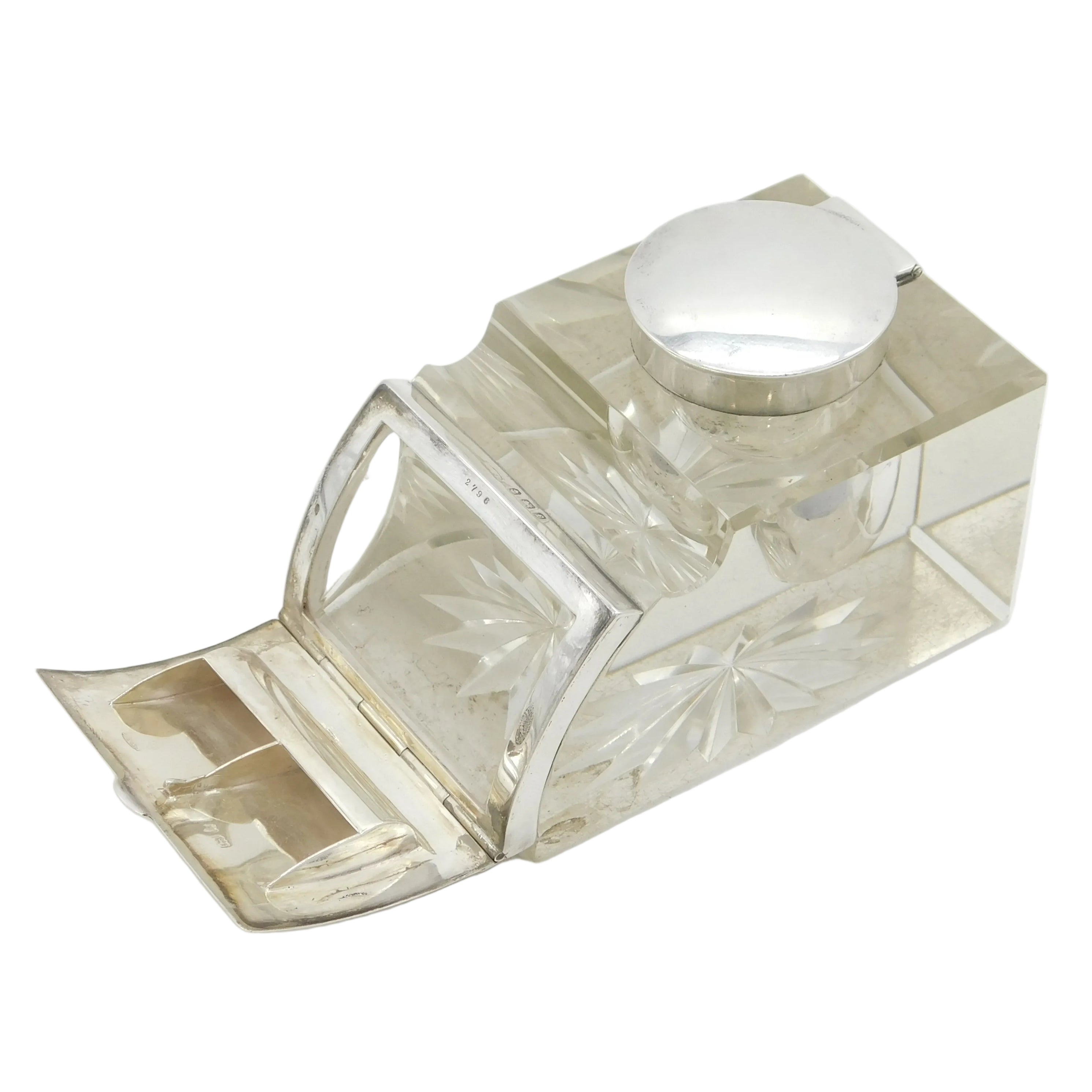 Edwardian Sterling Silver Mounted Cut Glass Combination Stamp Box & Inkwell Antique 1905