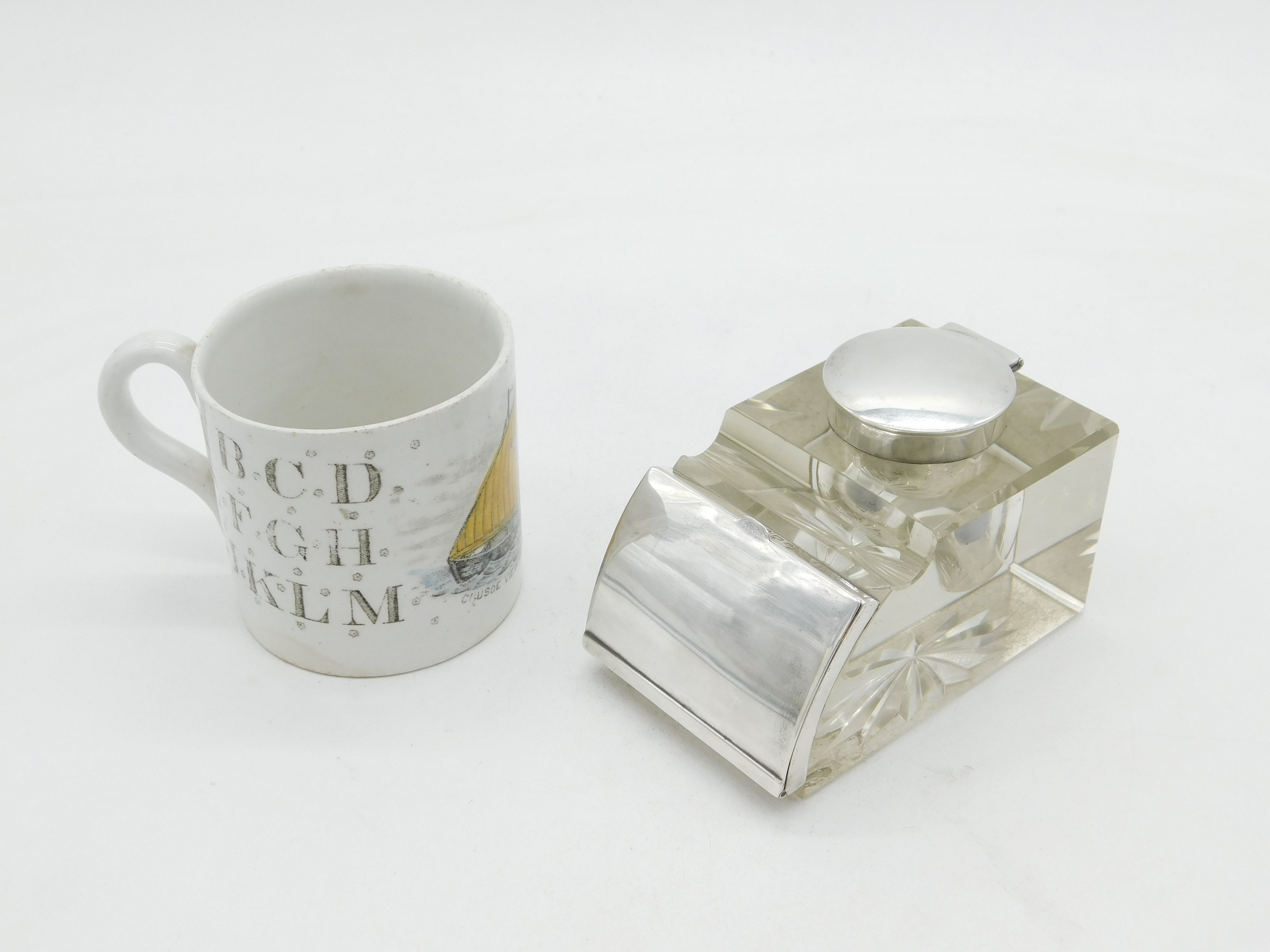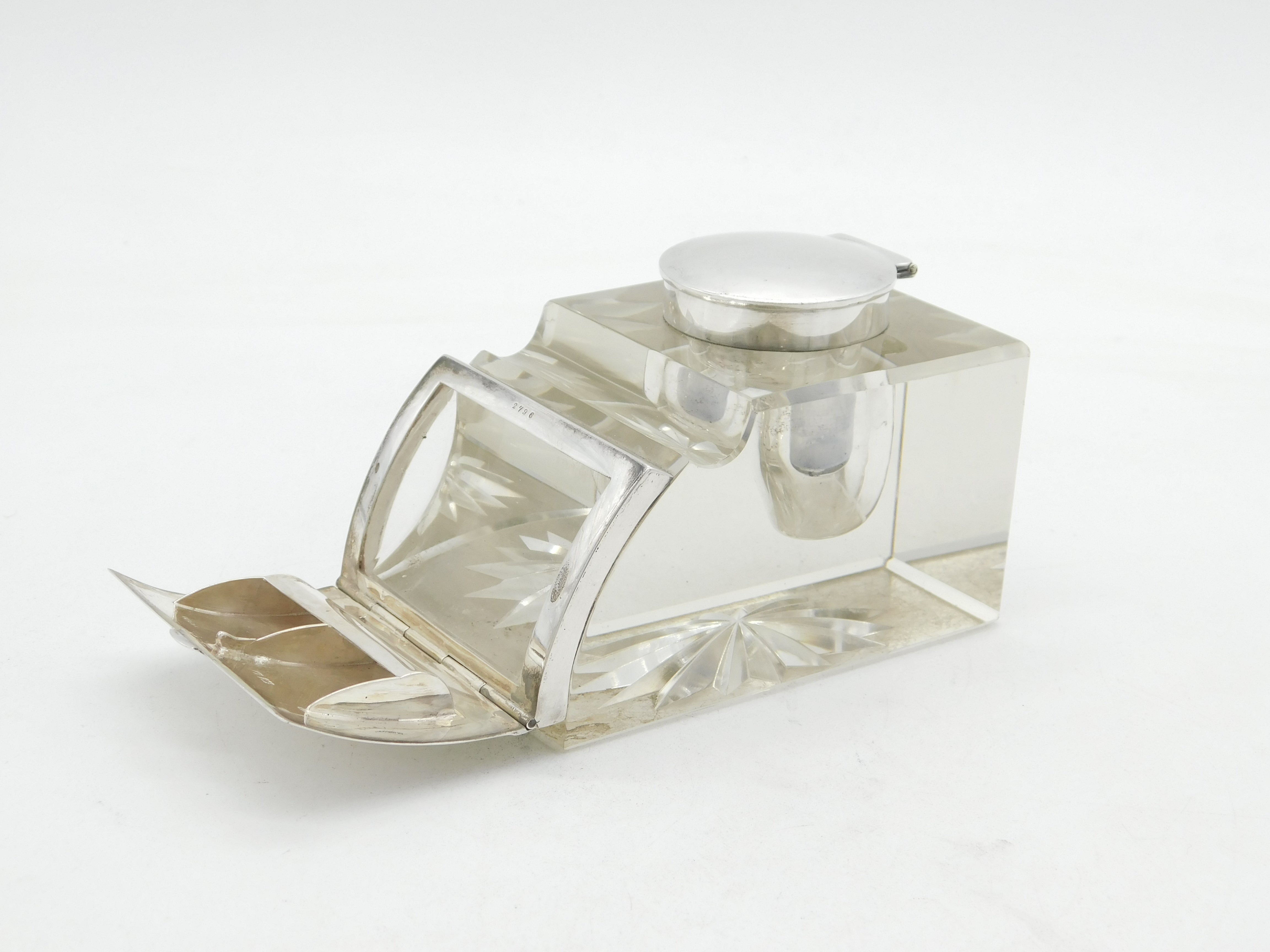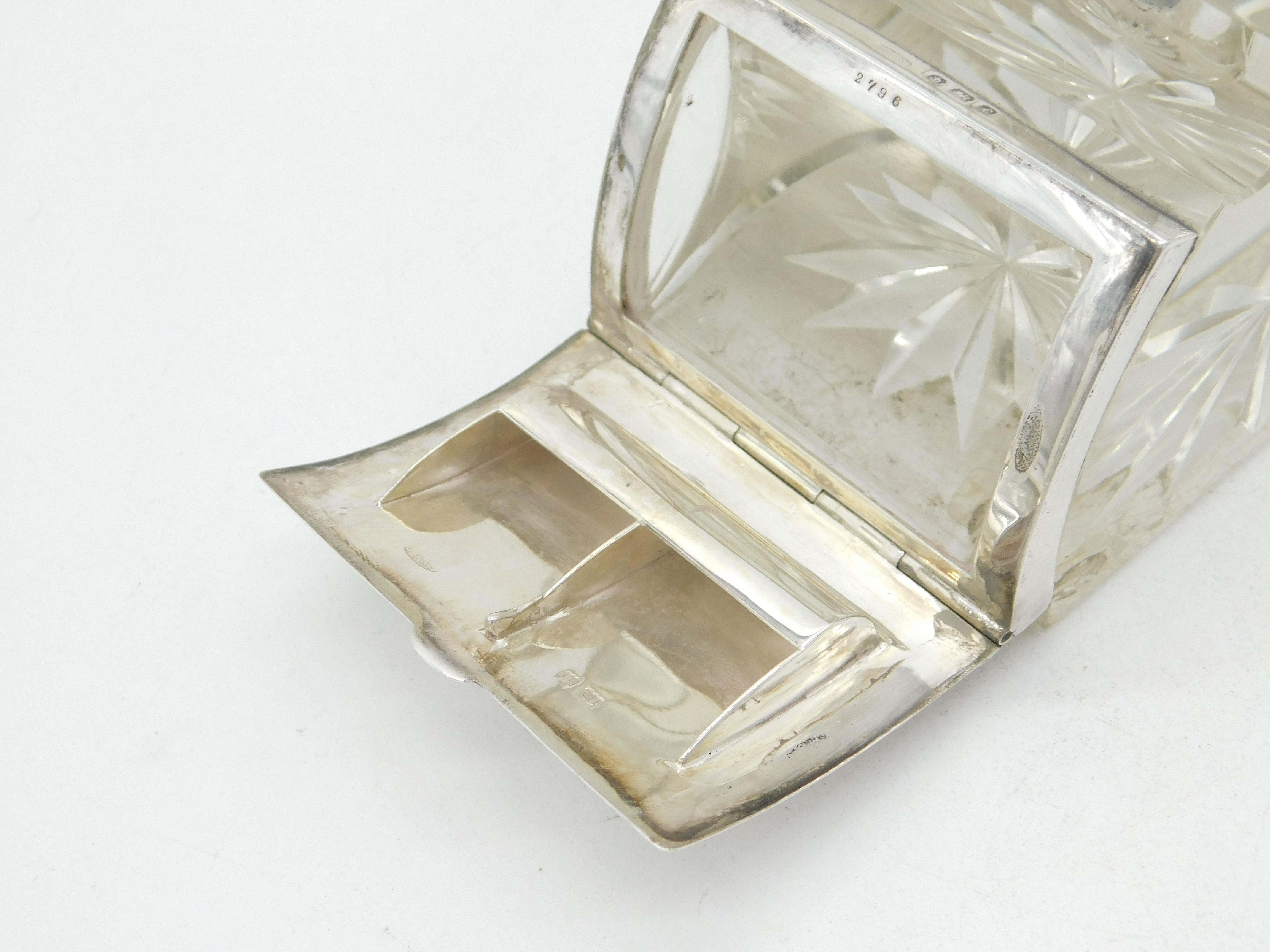 Edwardian Sterling Silver Mounted Cut Glass Combination Stamp Box & Inkwell Antique 1905