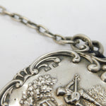 Details: A fantastic and wonderfully designed antique edwardian sterling silver hanging sewing pin cushion with wonderful applied regency scene hallmarked for Birmingham 1902 to both edges. This is a wonderful item that would make a perfect gift or addition to any collection. We are more than happy to provide XRF reports for items upon request.
