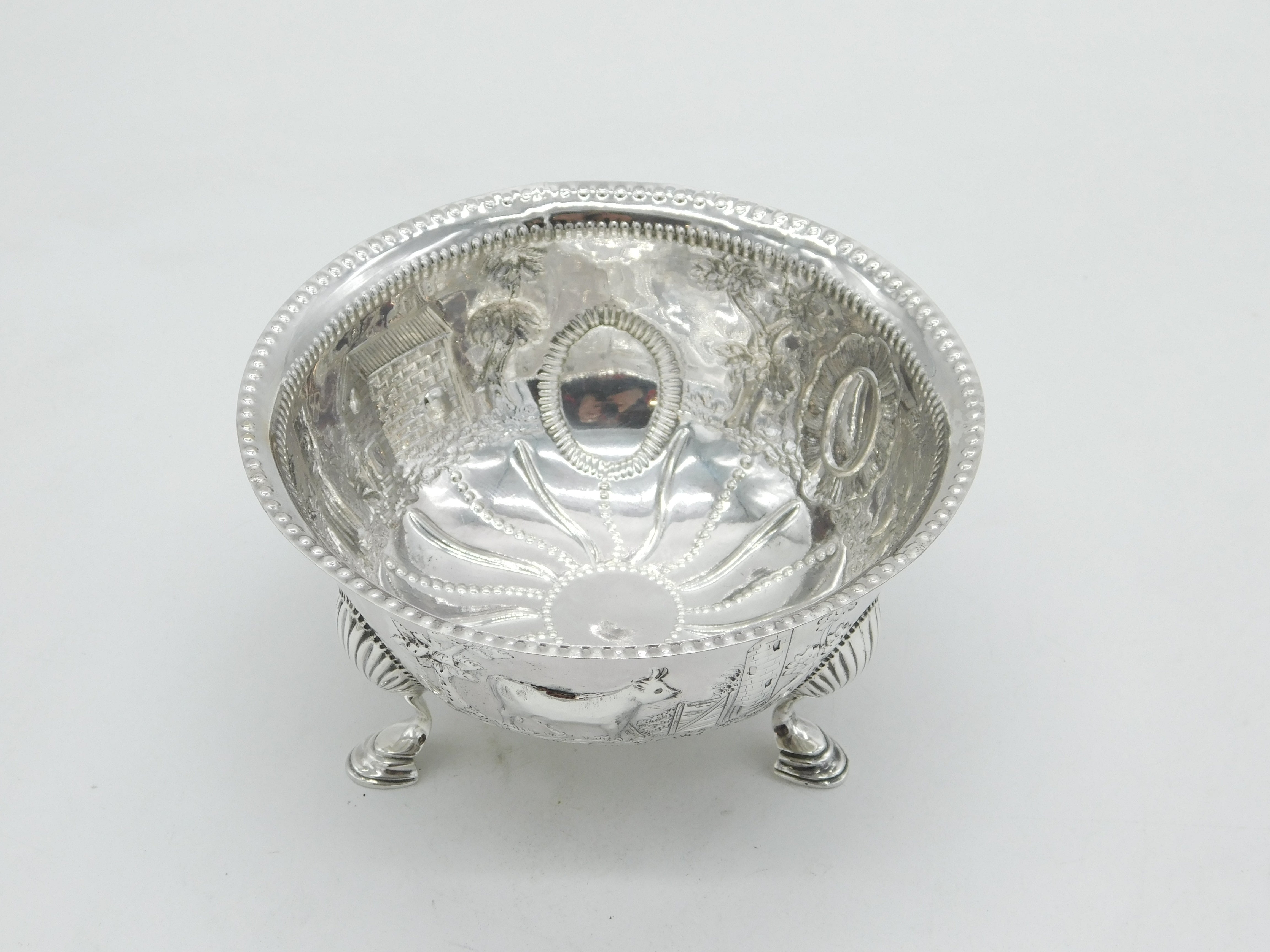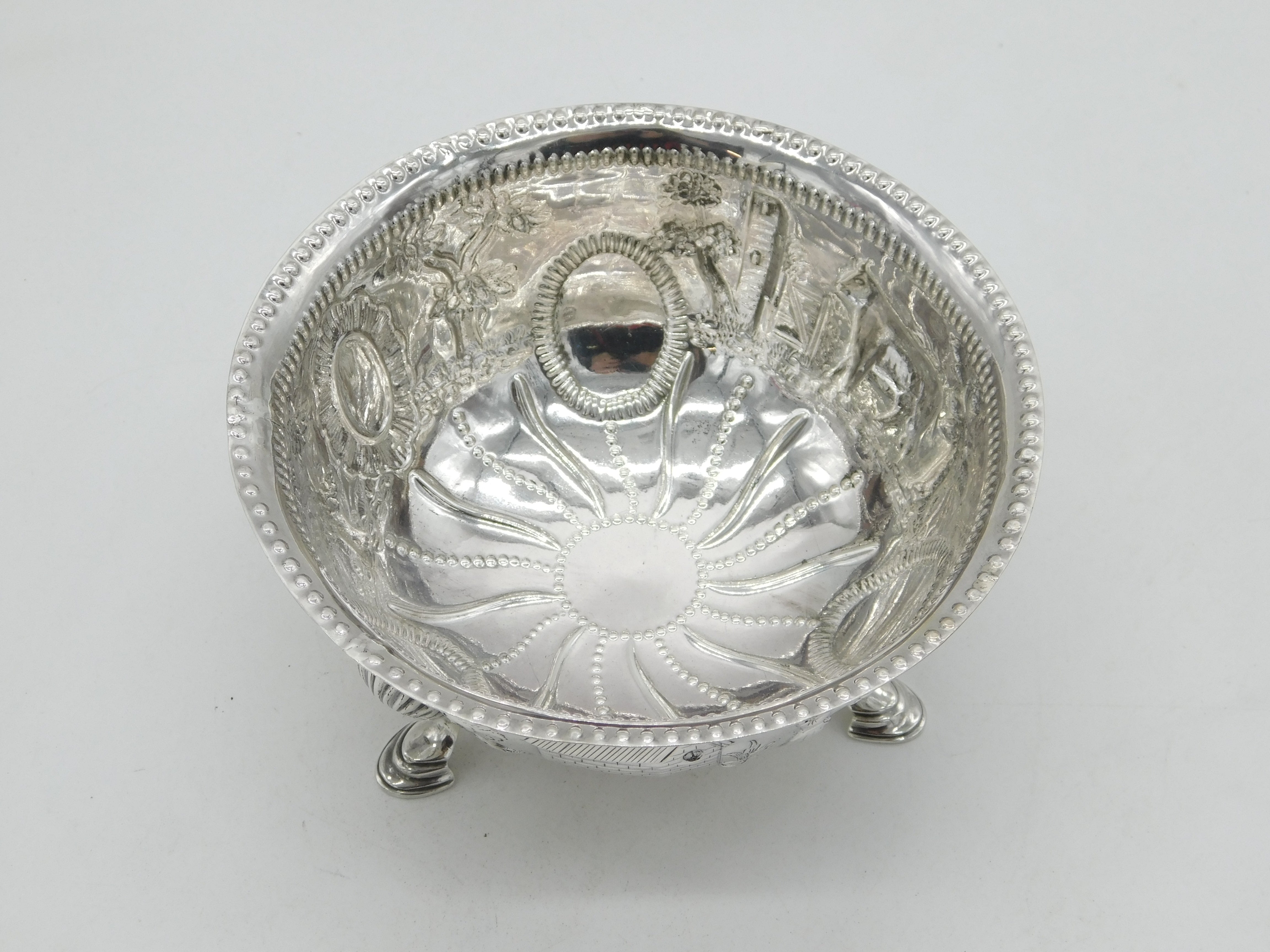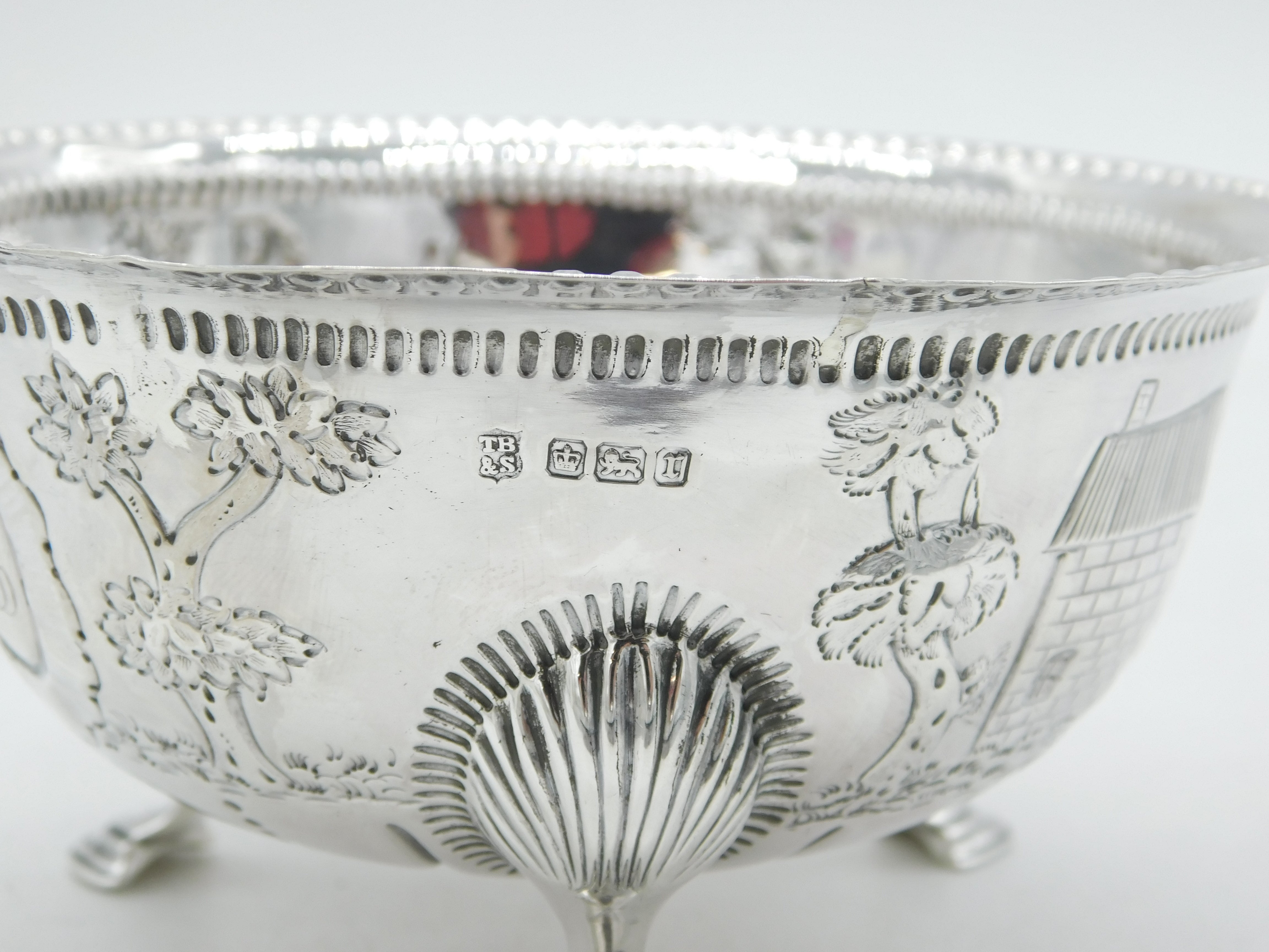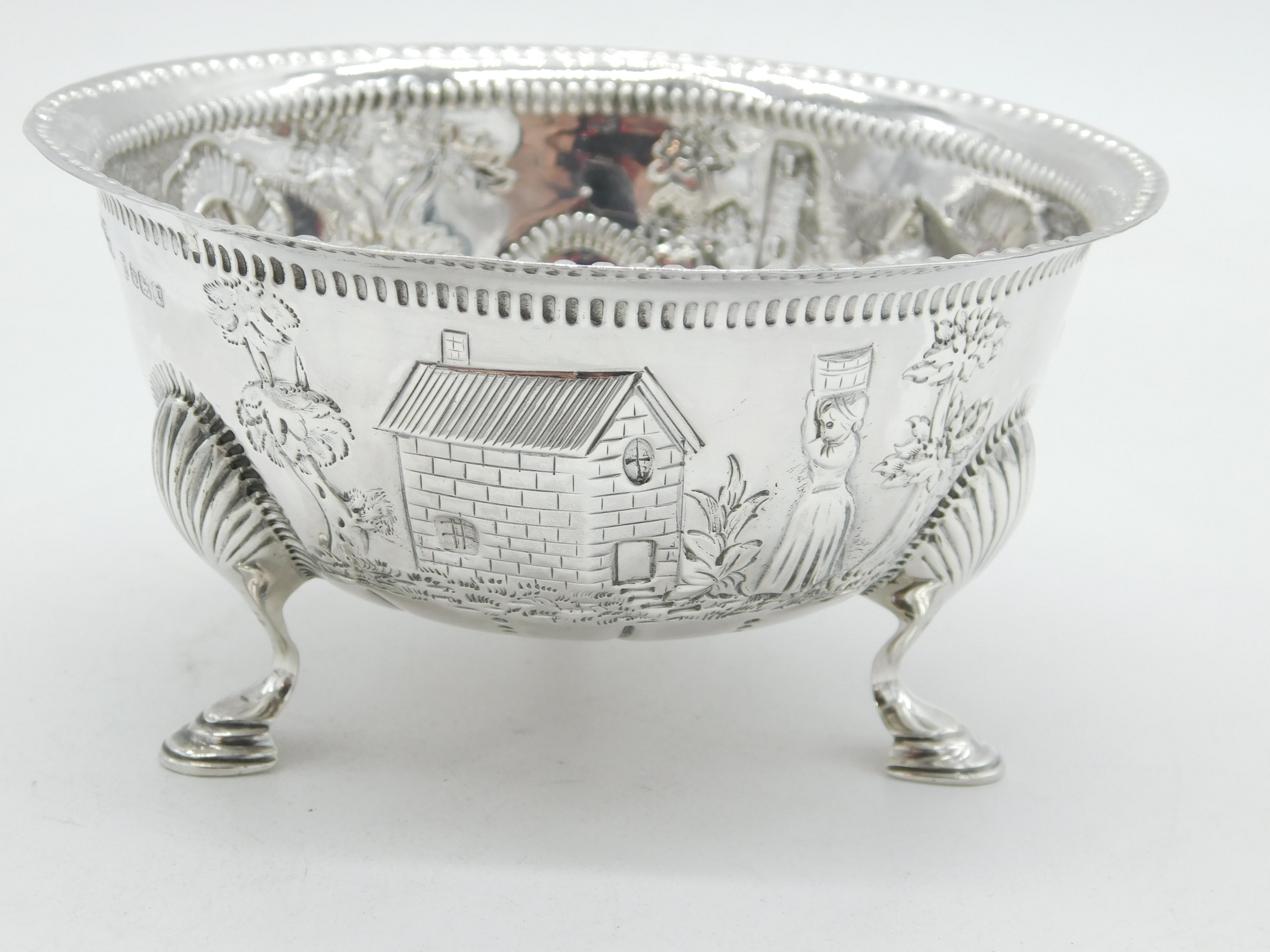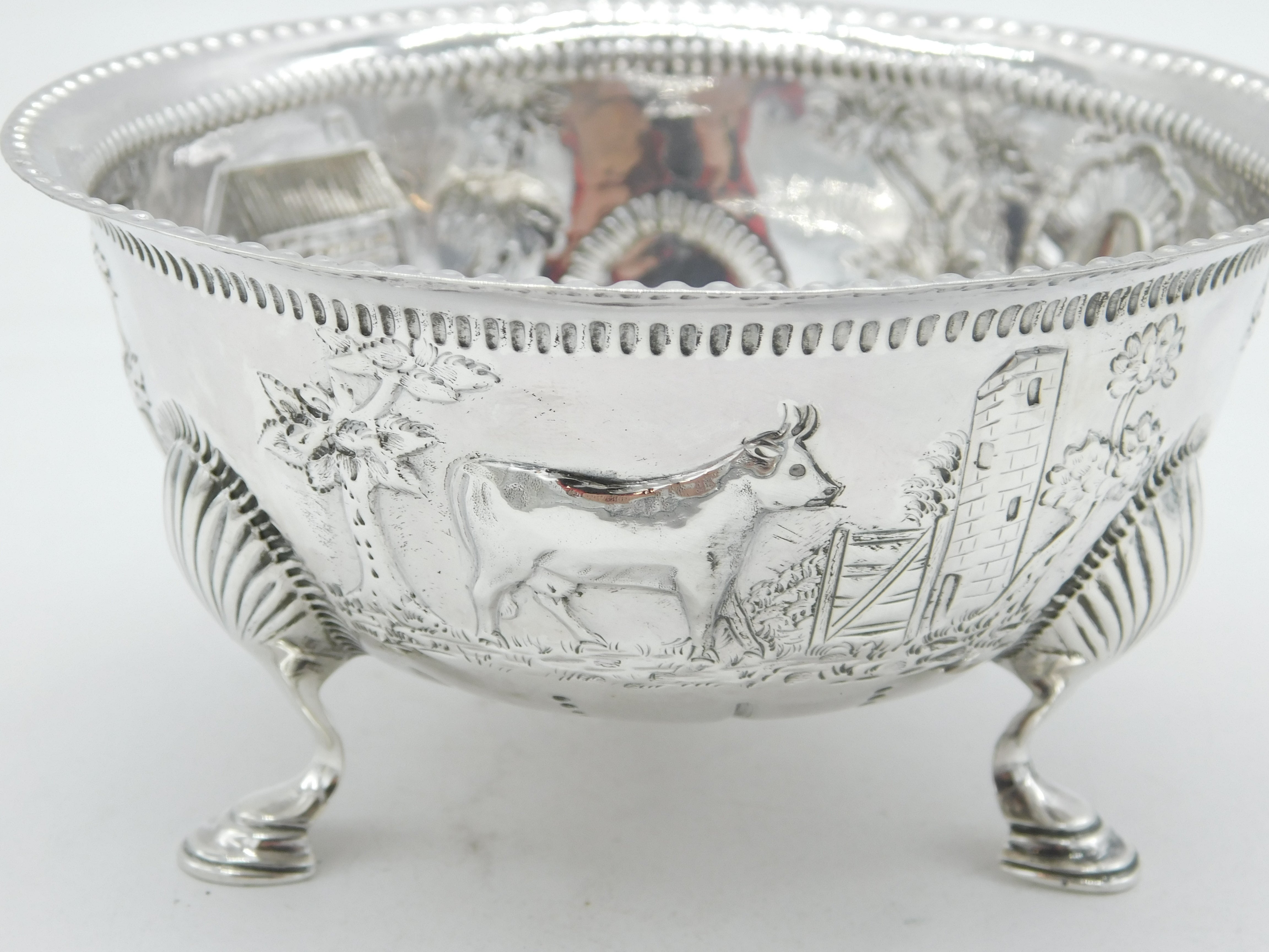 Edwardian Sterling Silver Rural Scene Sweet Bowl Dish Antique 1909 Sheffield