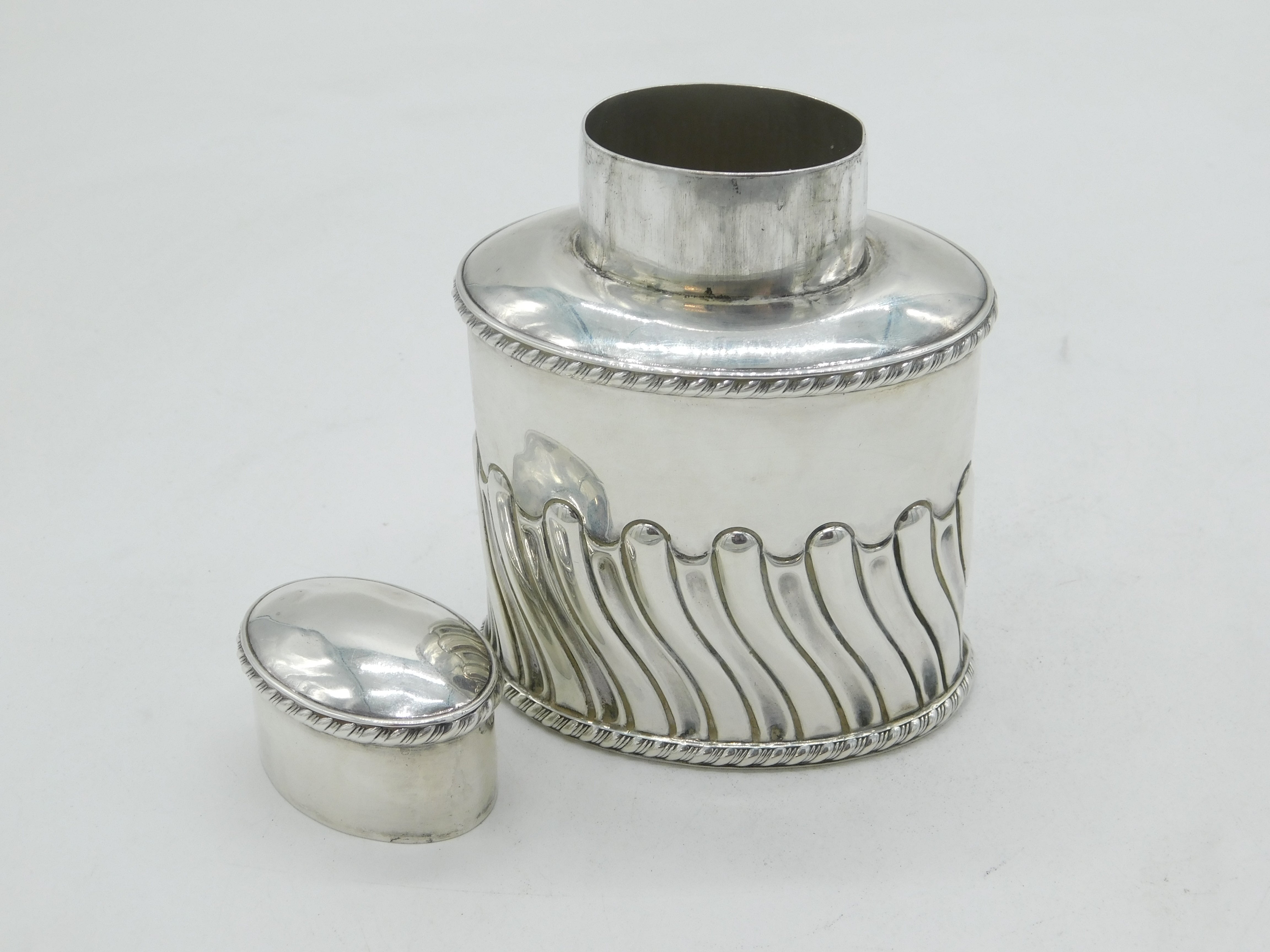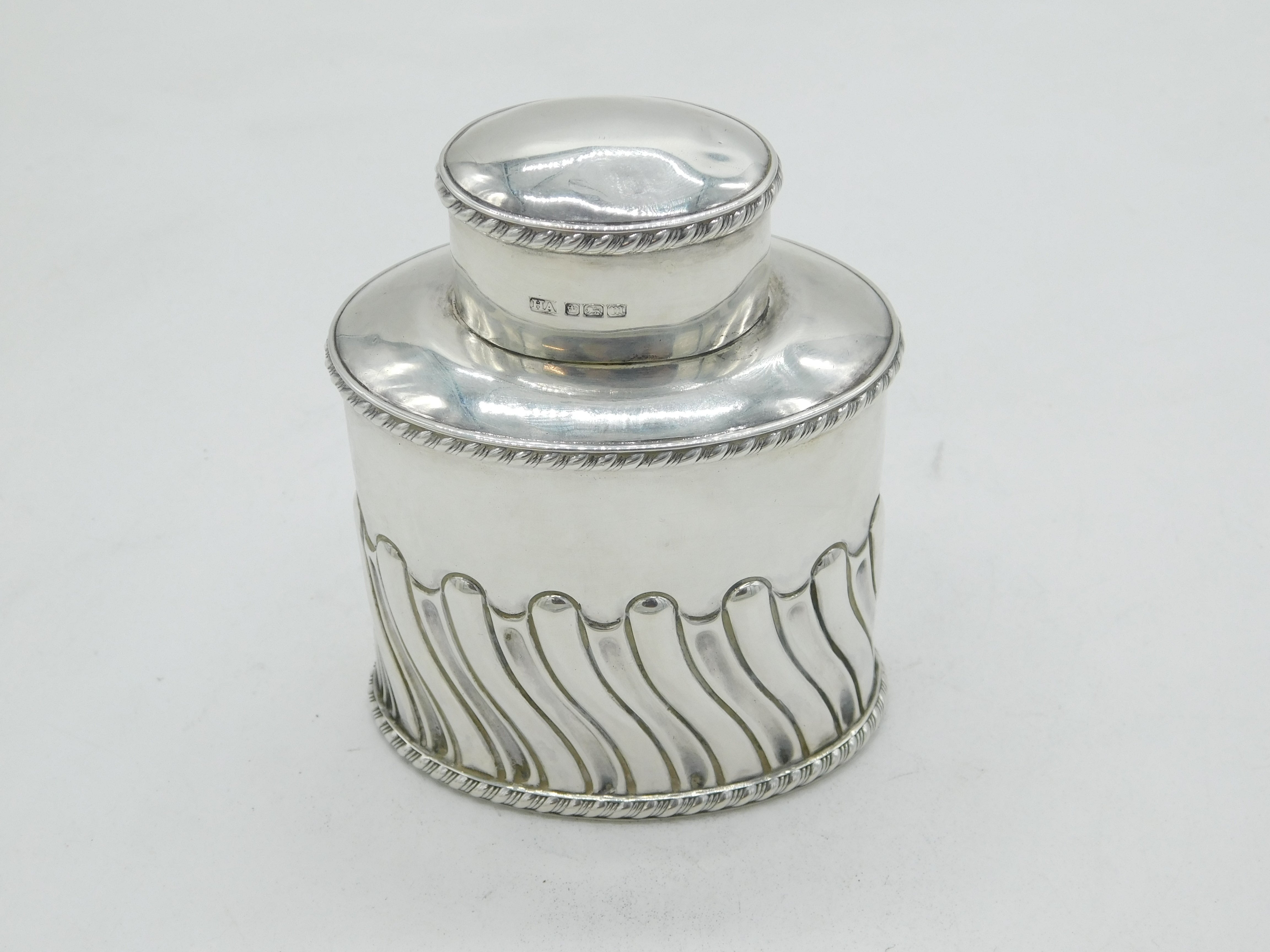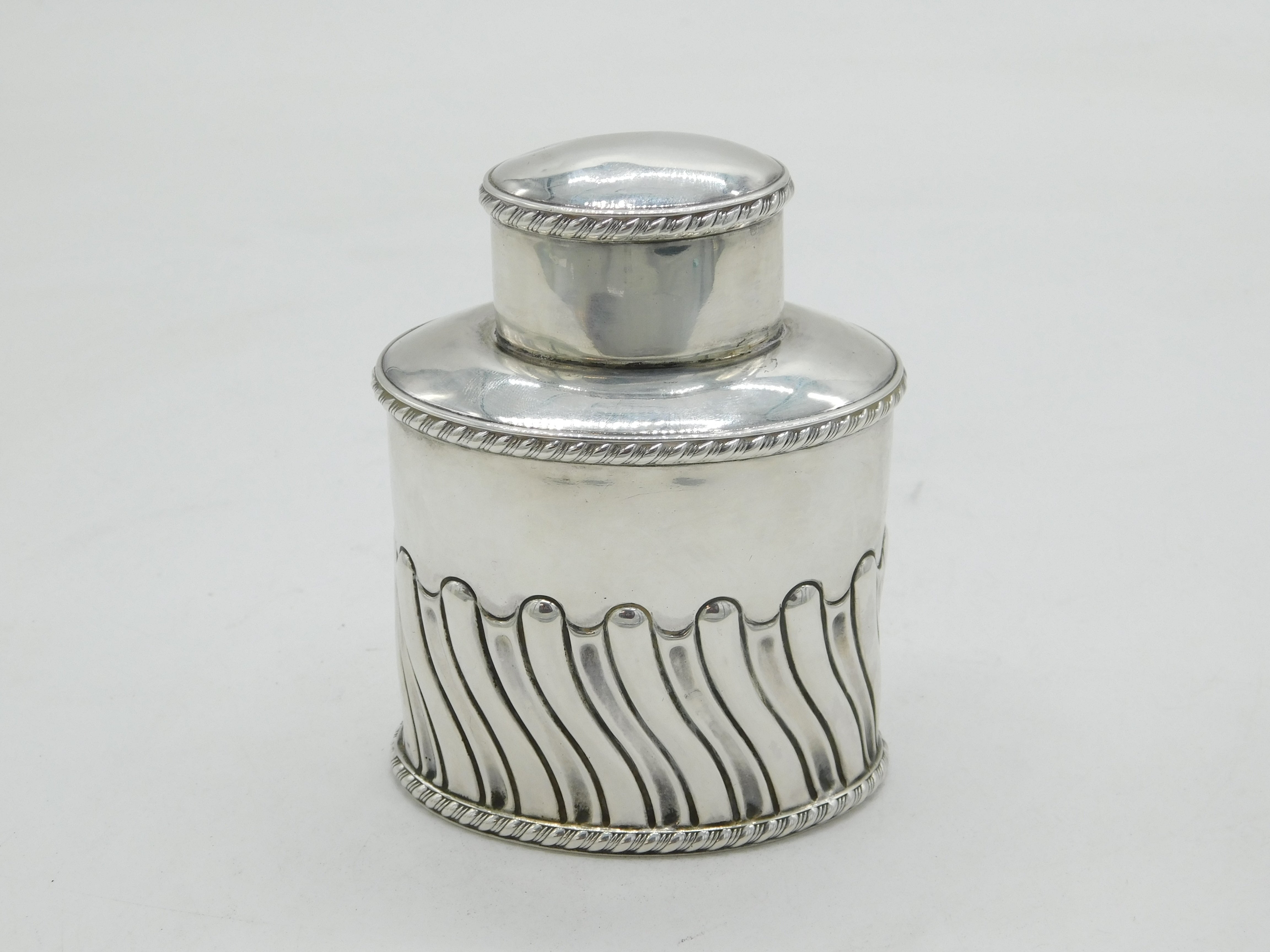 Edwardian Sterling Silver Swirl Pattern Tea Caddy Antique 1904 Sheffield