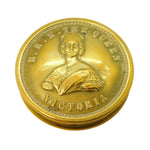 Details: A fantastic and wonderfully designed antique Victorian small brass advertising box by G. Arnaud of Paris, likely for breath mints stating on the base 'For the Correction of Breath', decorated with an embossed image of Queen Victoria to the top lid c1850. This is a wonderful item that would make a perfect gift or addition to any collection. We are more than happy to provide XRF reports for items upon request.