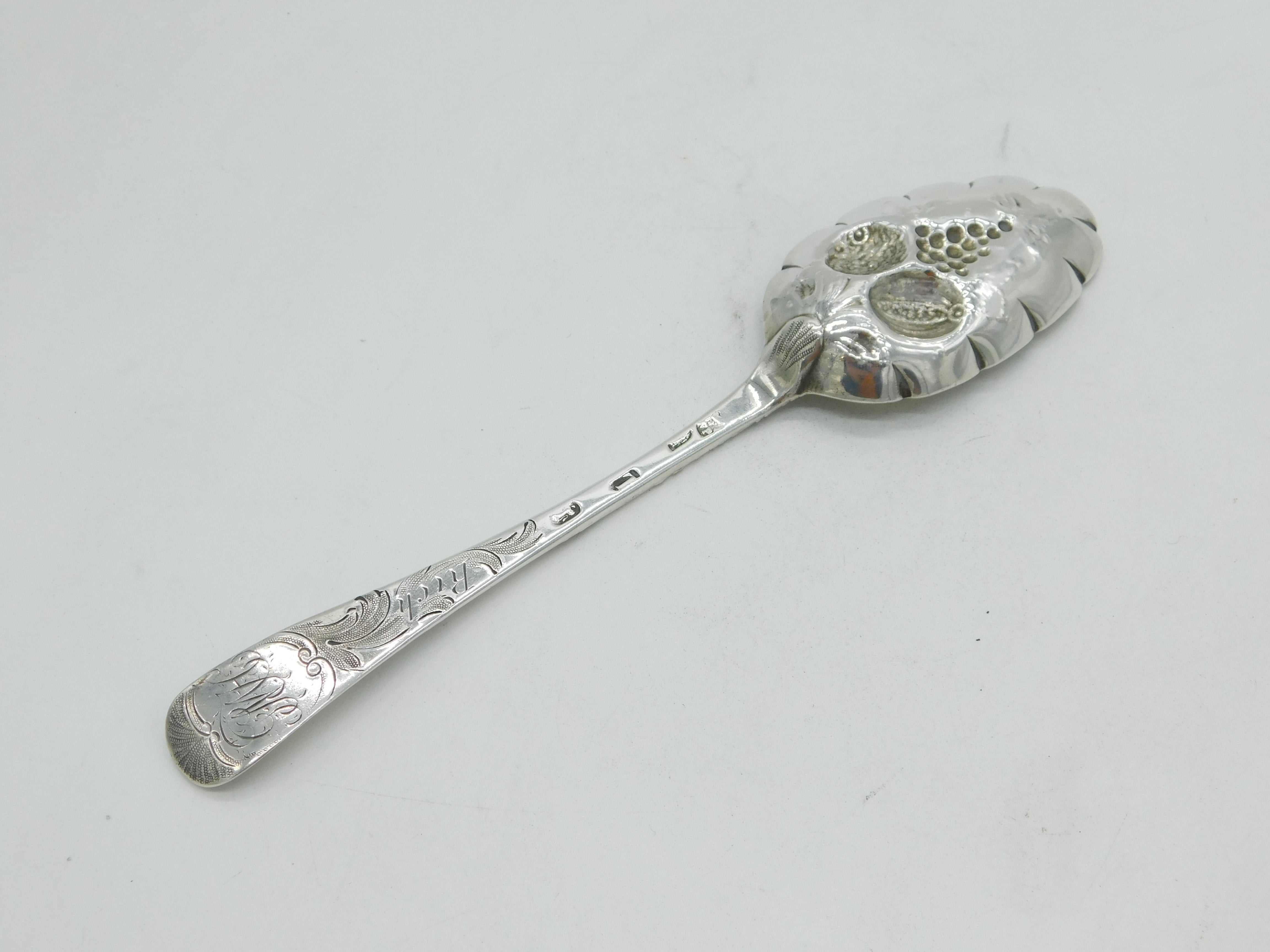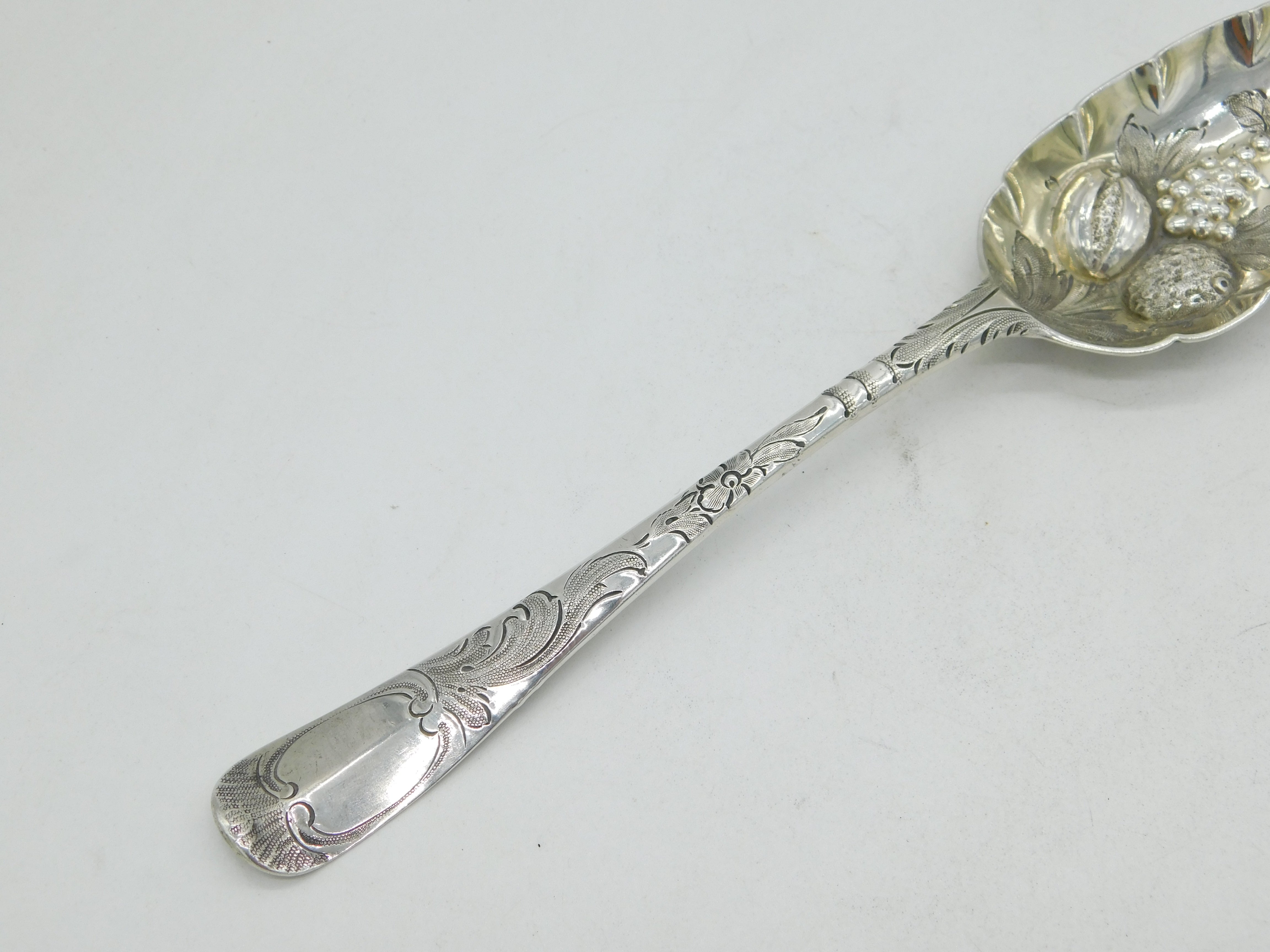 George I Sterling Silver Berry Pattern Dessert Spoon Antique 1726 London
