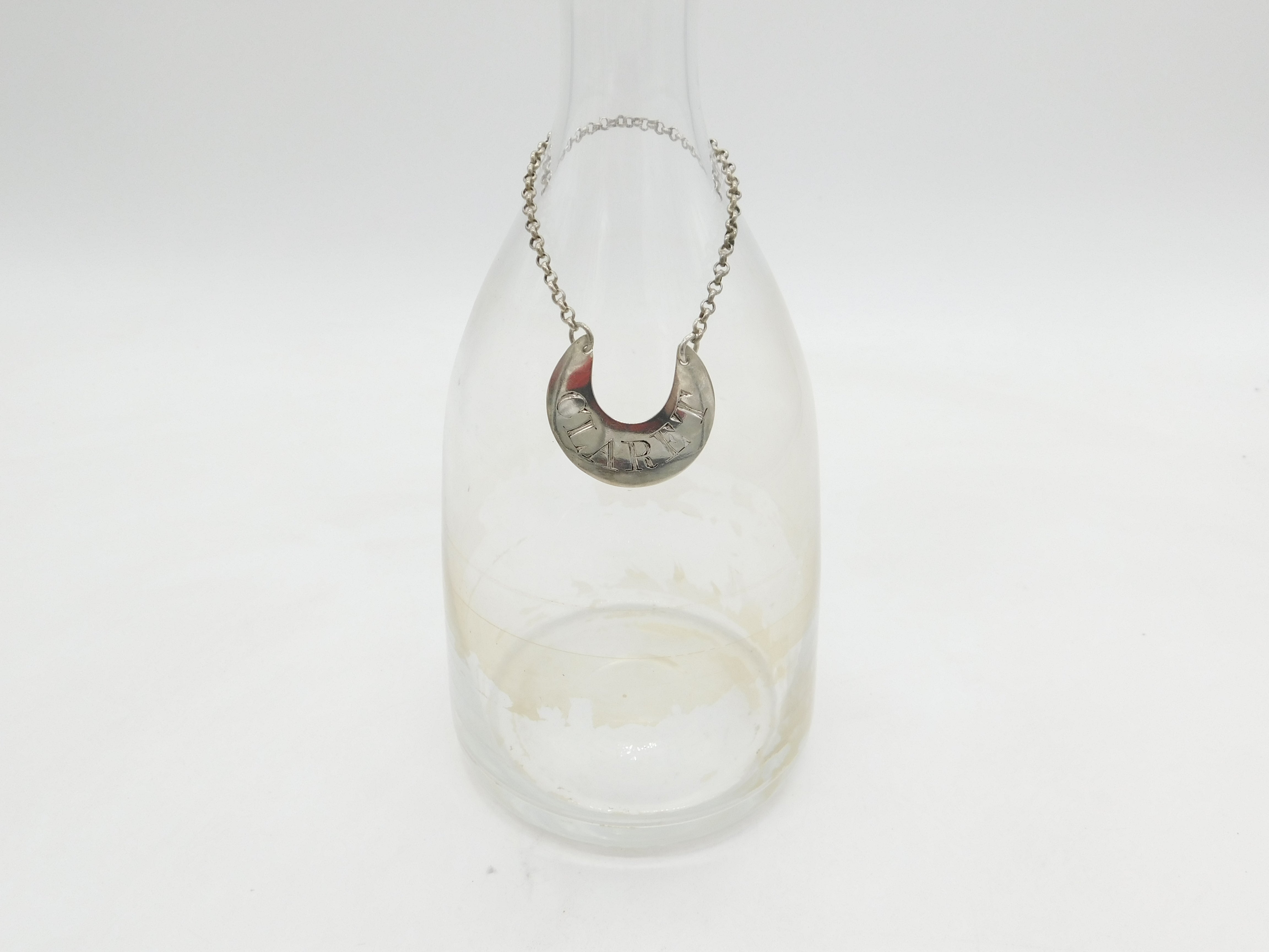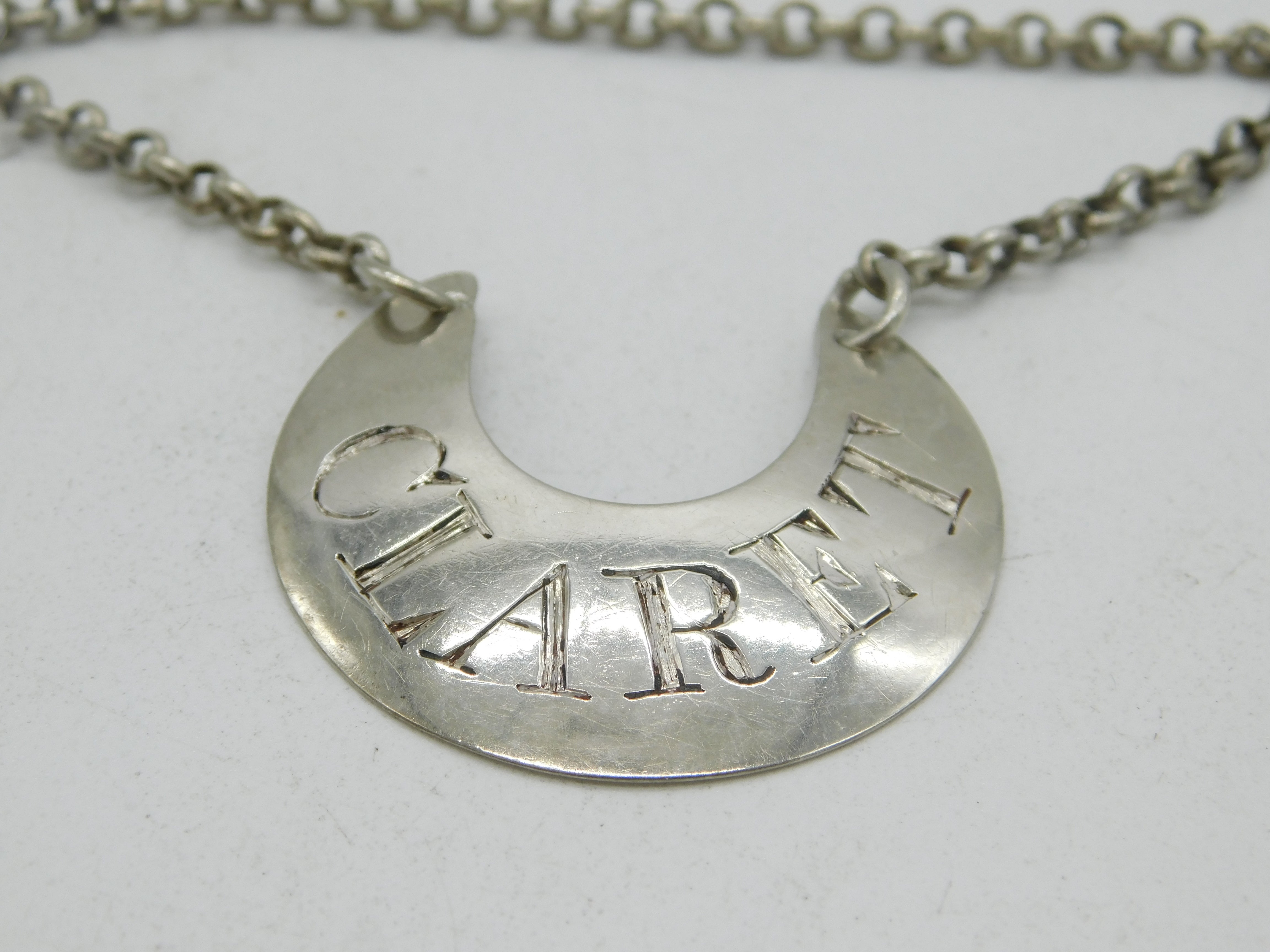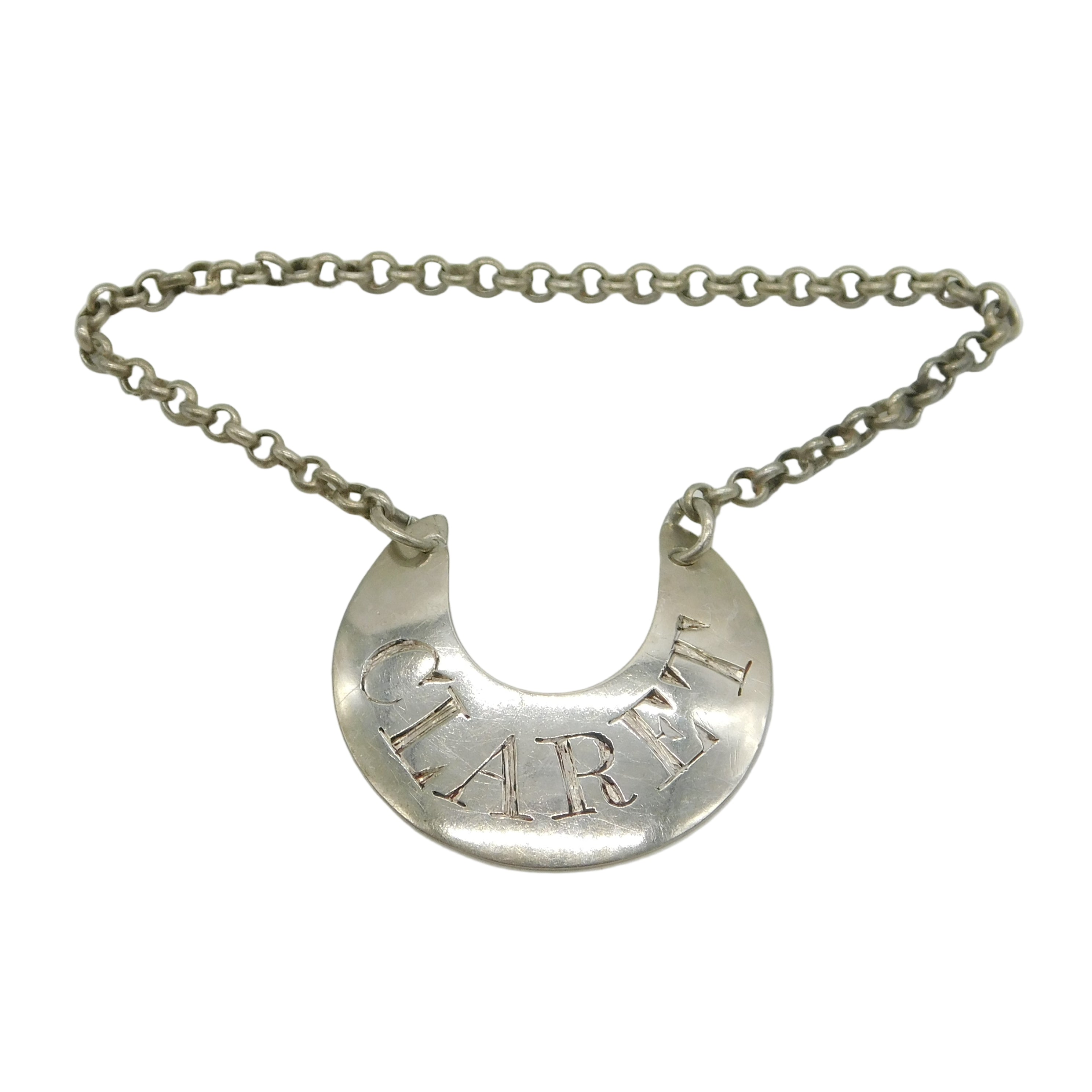 George II Sterling Silver Crescent Form Claret Decanter Label Antique c1755
