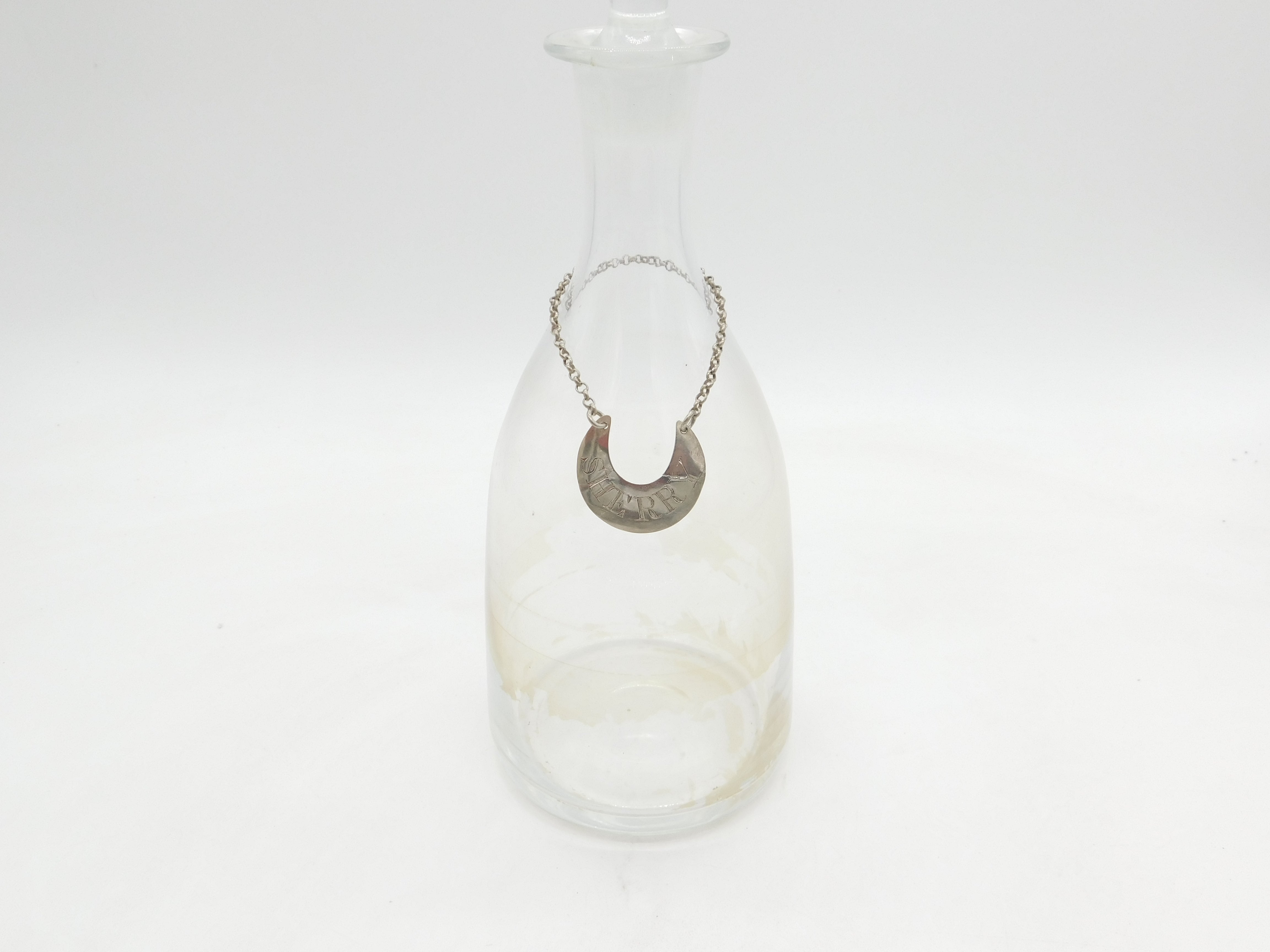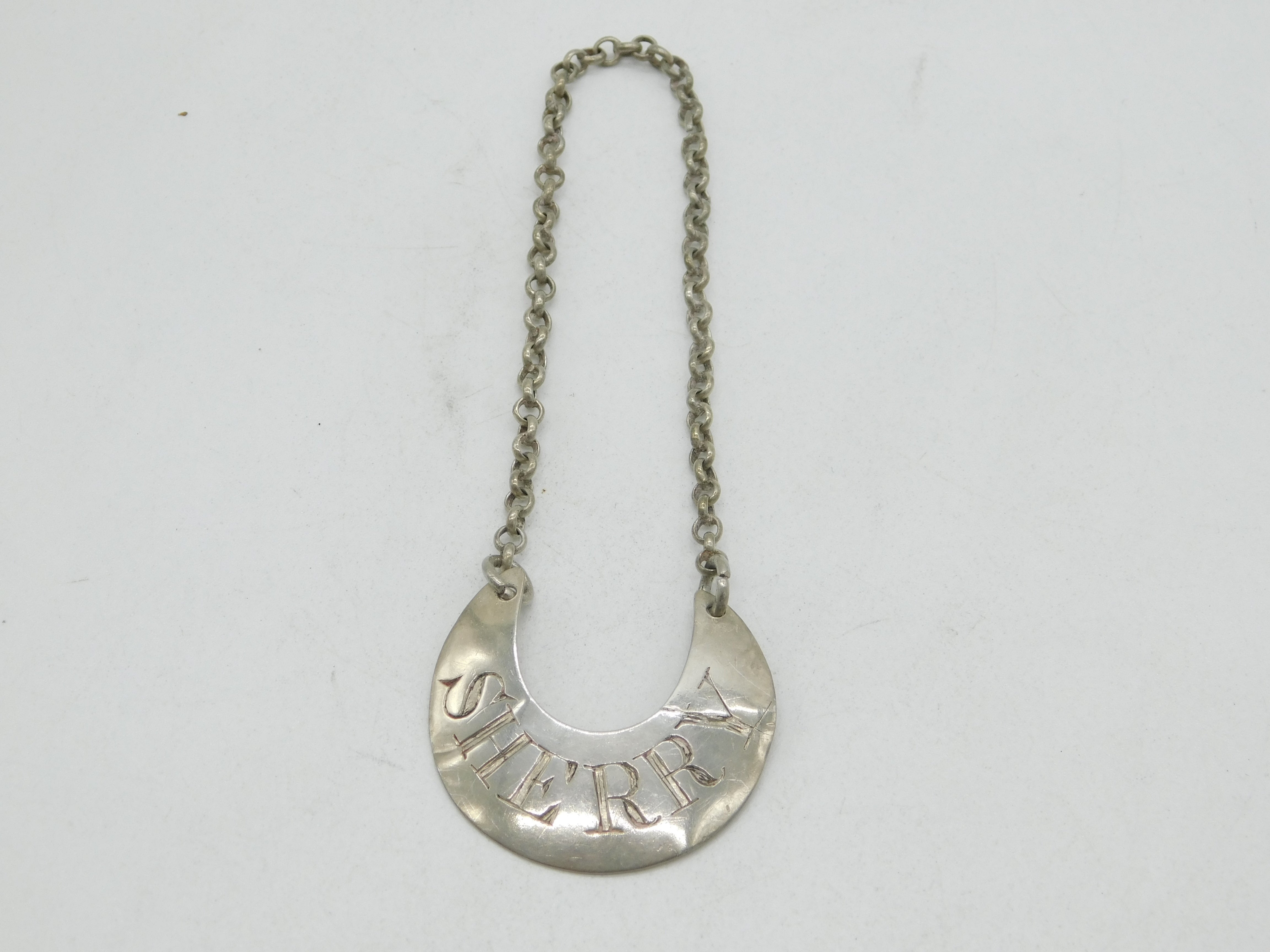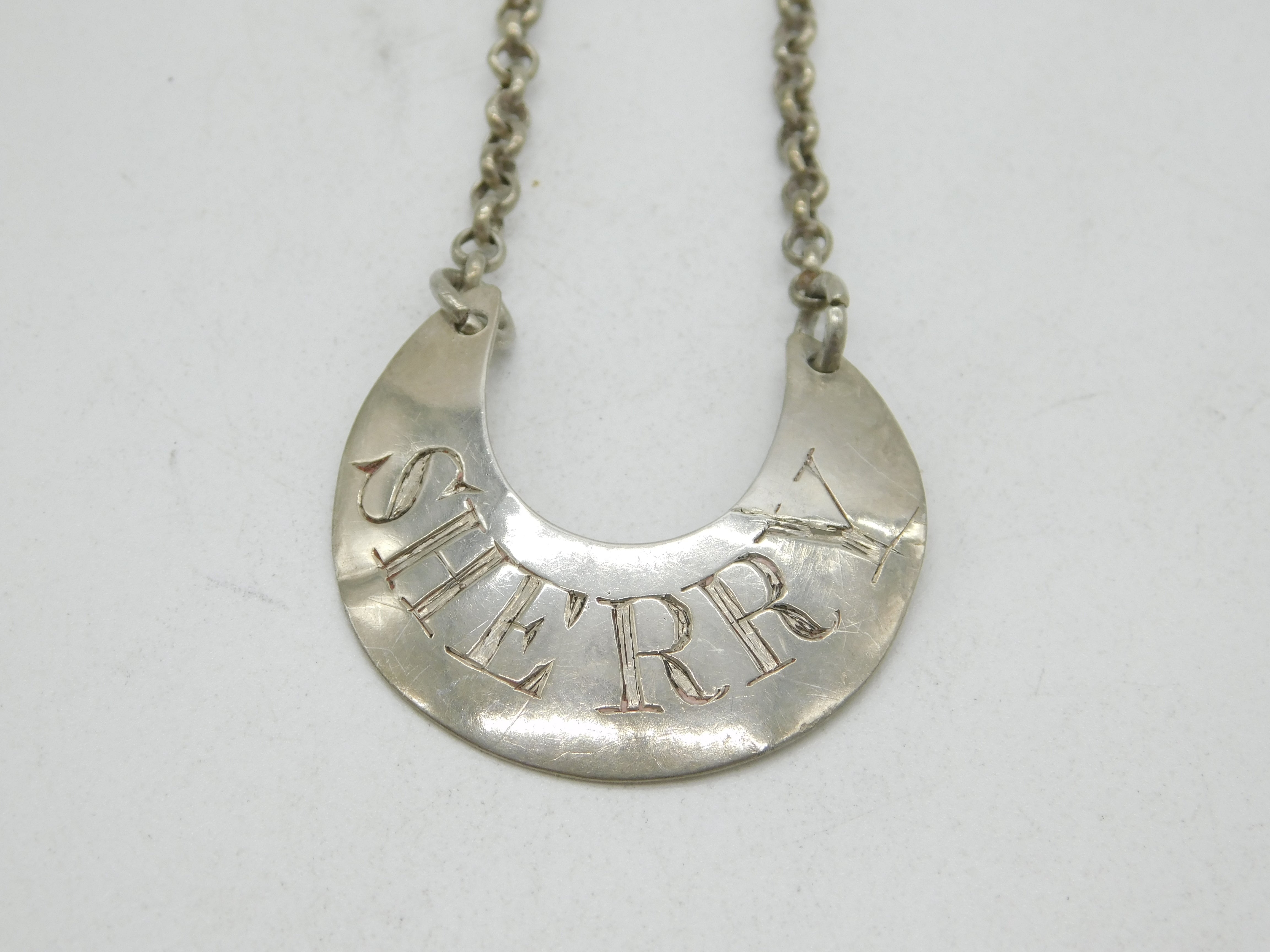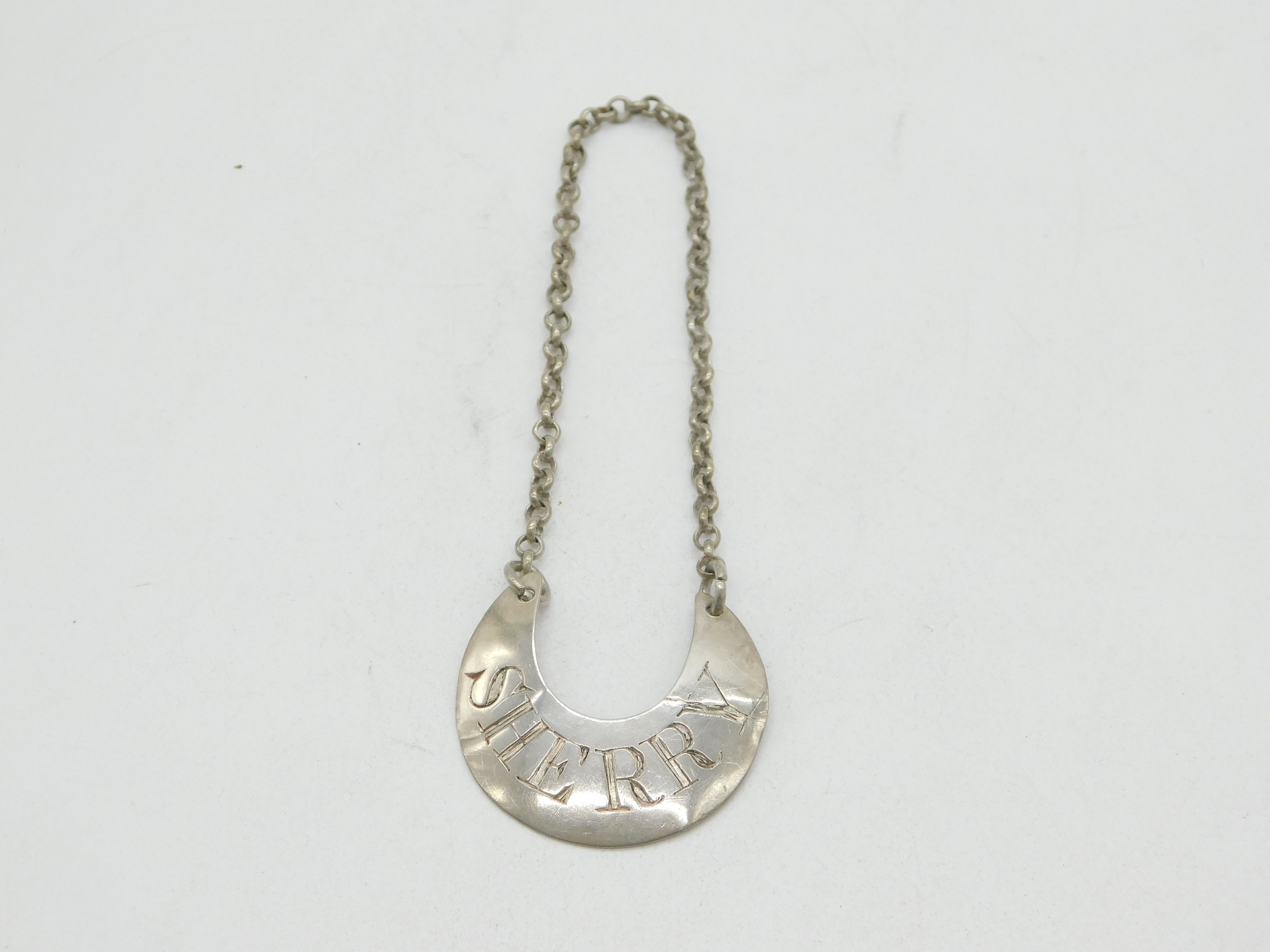 George II Sterling Silver Crescent Form Sherry Decanter Label Antique c1755