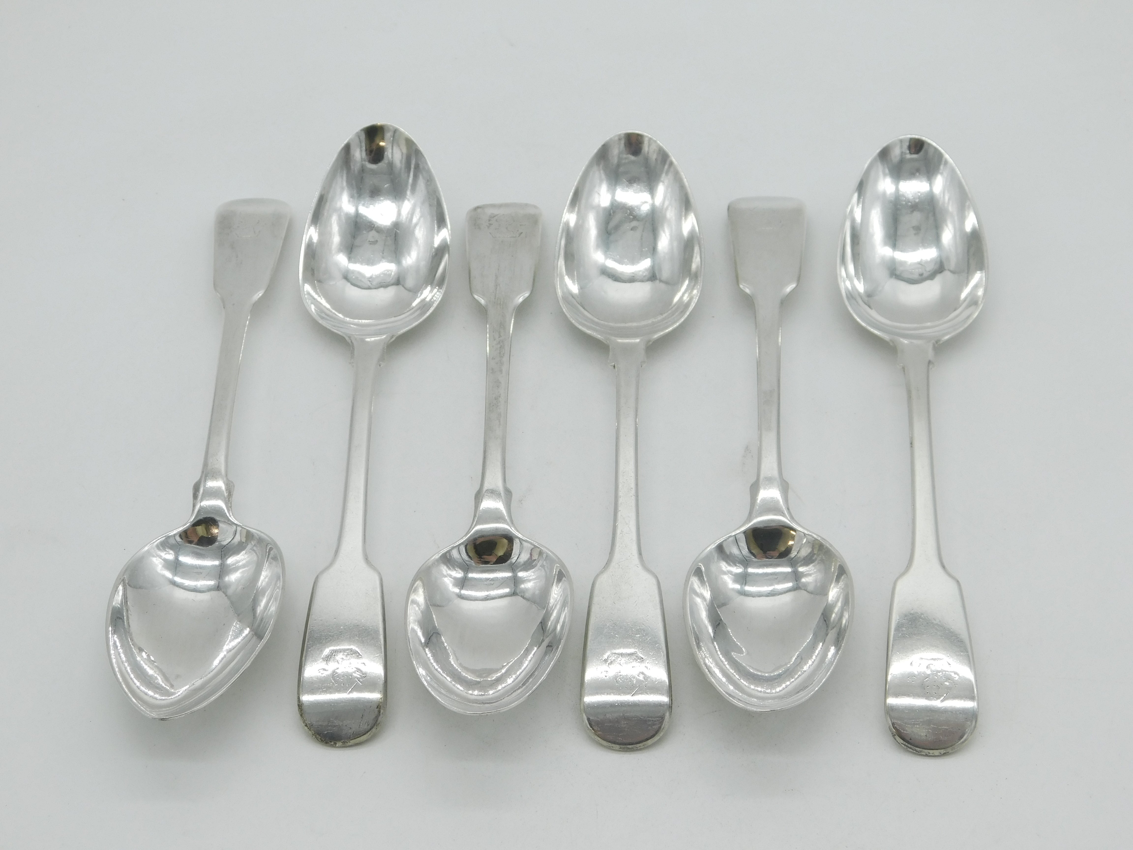 Details: A fantastic and wonderfully designed antique georgian sterling silver set of six fiddle thread pattern dessert forks with heraldic crests to the terminals, each hallmarked for London 1795 by important maker Paul Storr. One of the spoons is 1793 to the rest are 1795. This is a wonderful item that would make a perfect gift or addition to any collection. We are more than happy to provide XRF reports for items upon request.