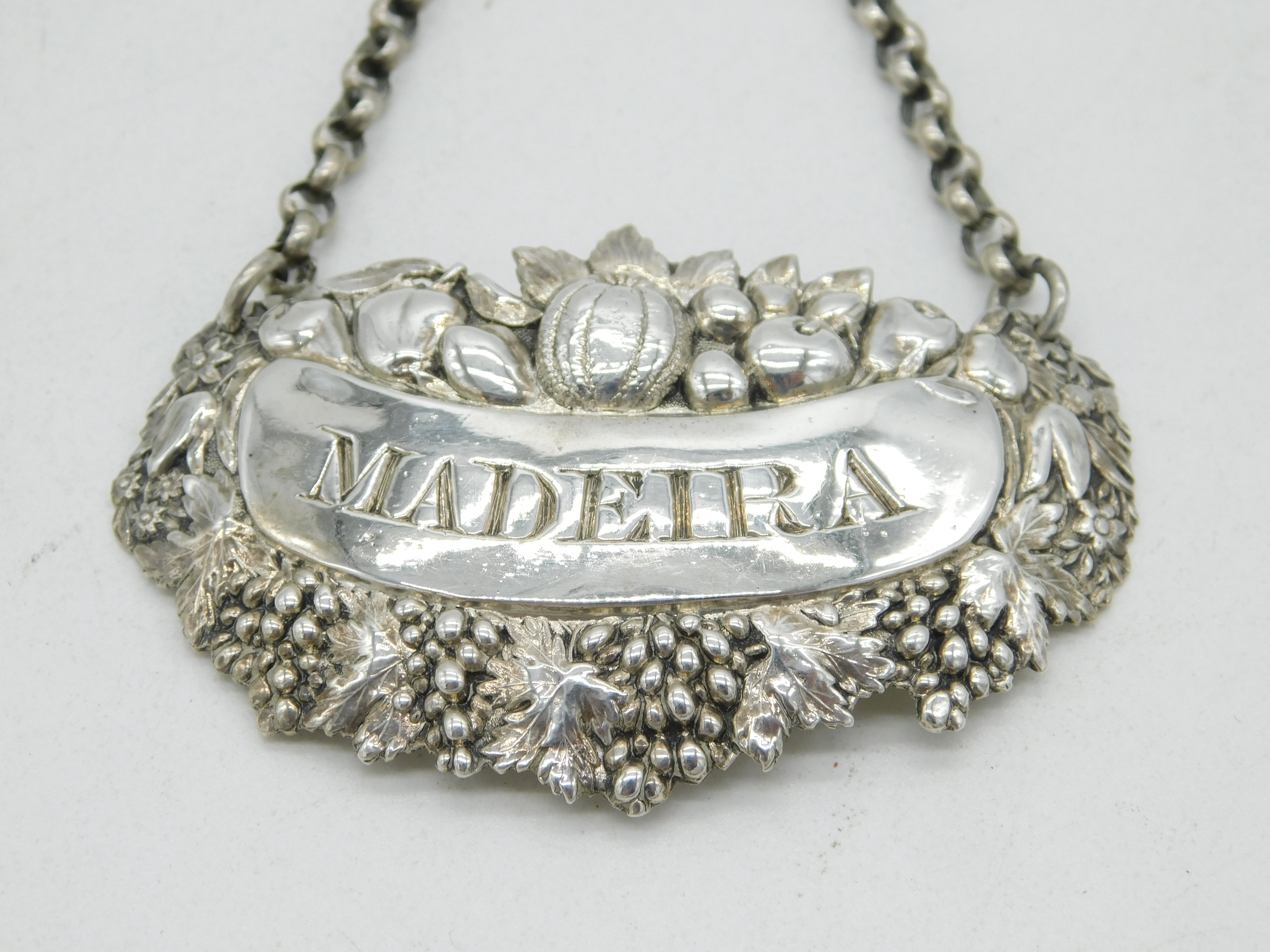 George III Sterling Silver 'Madeira' Wine Decanter Label Antique 1820 London