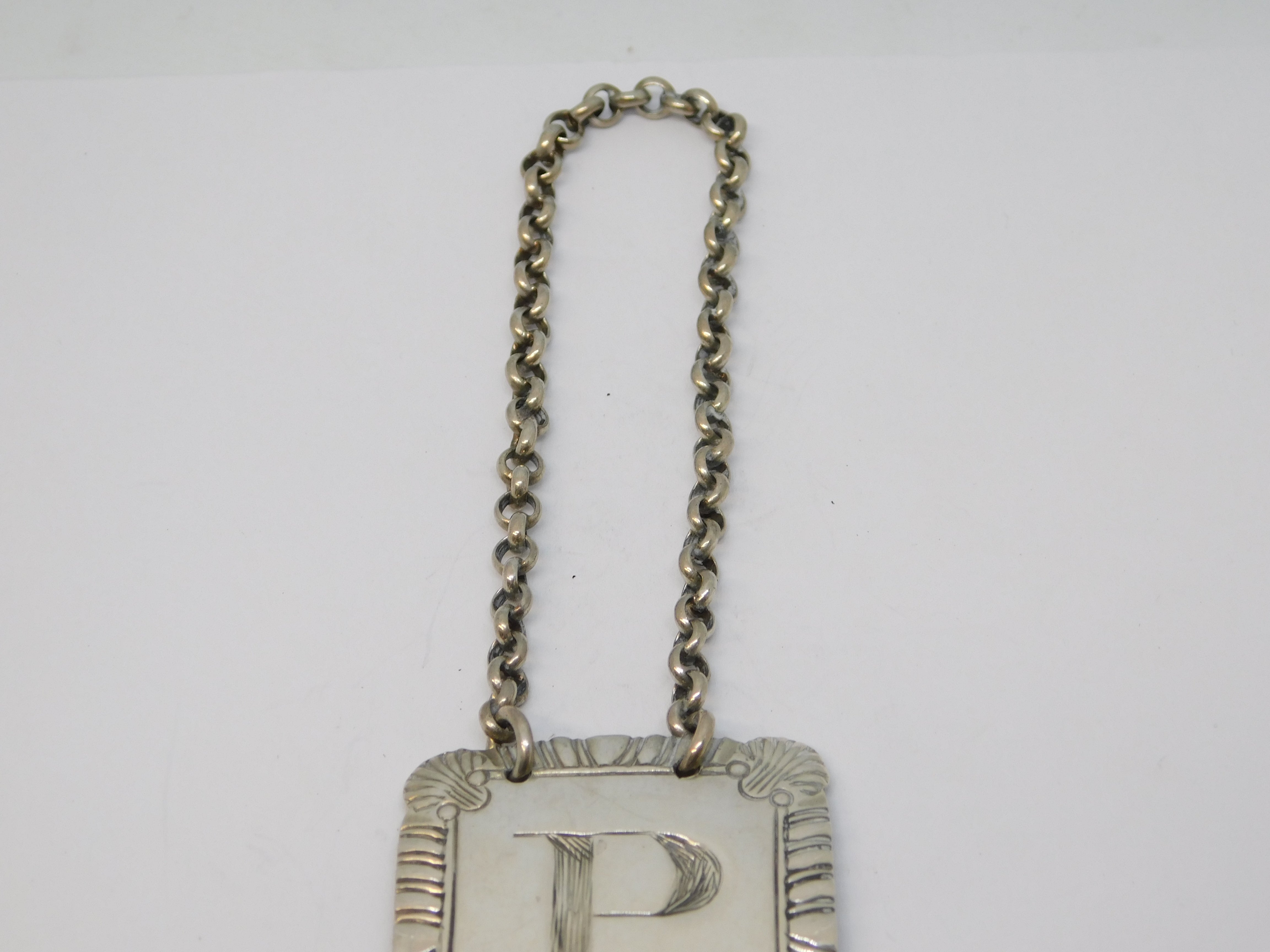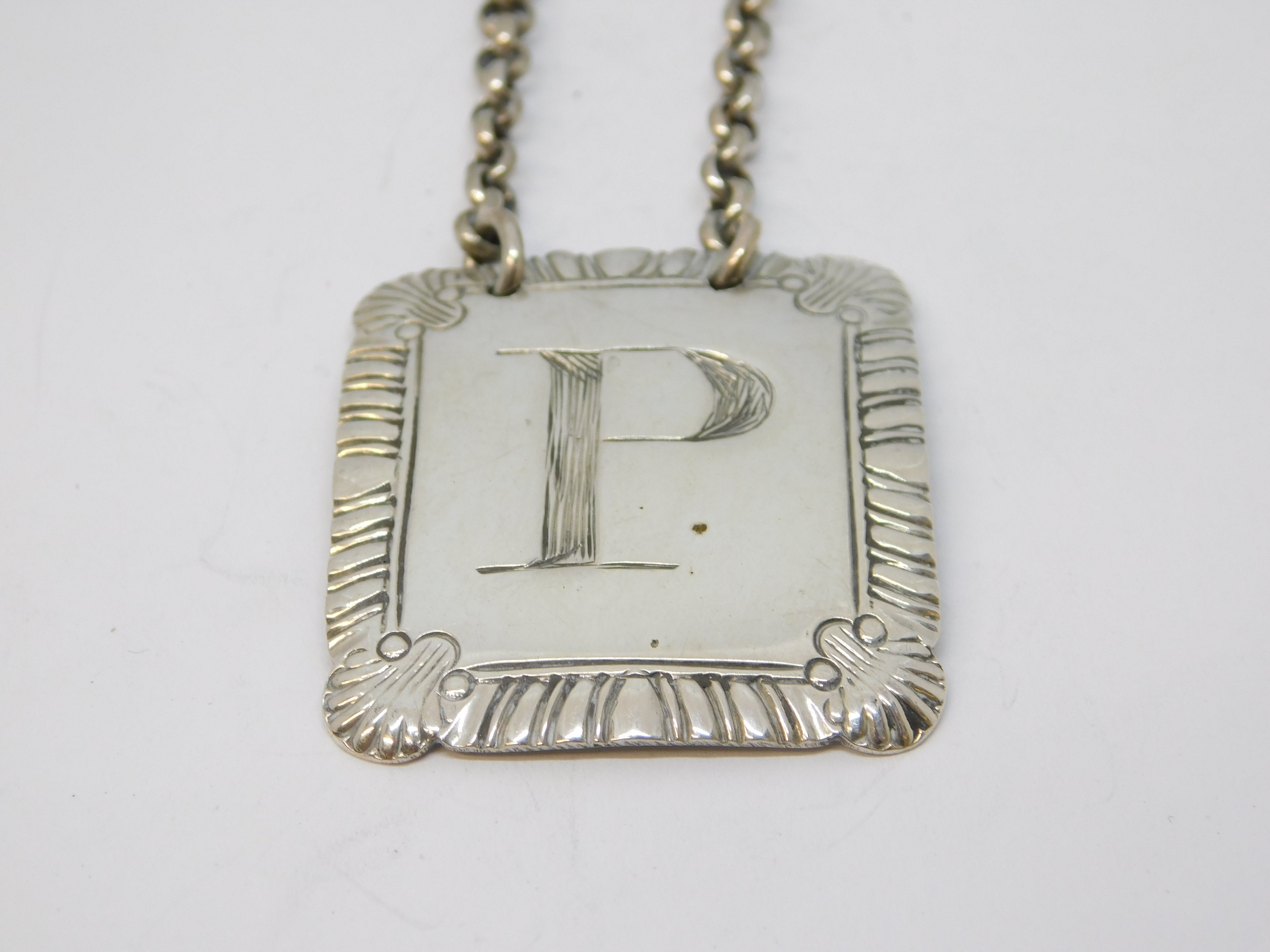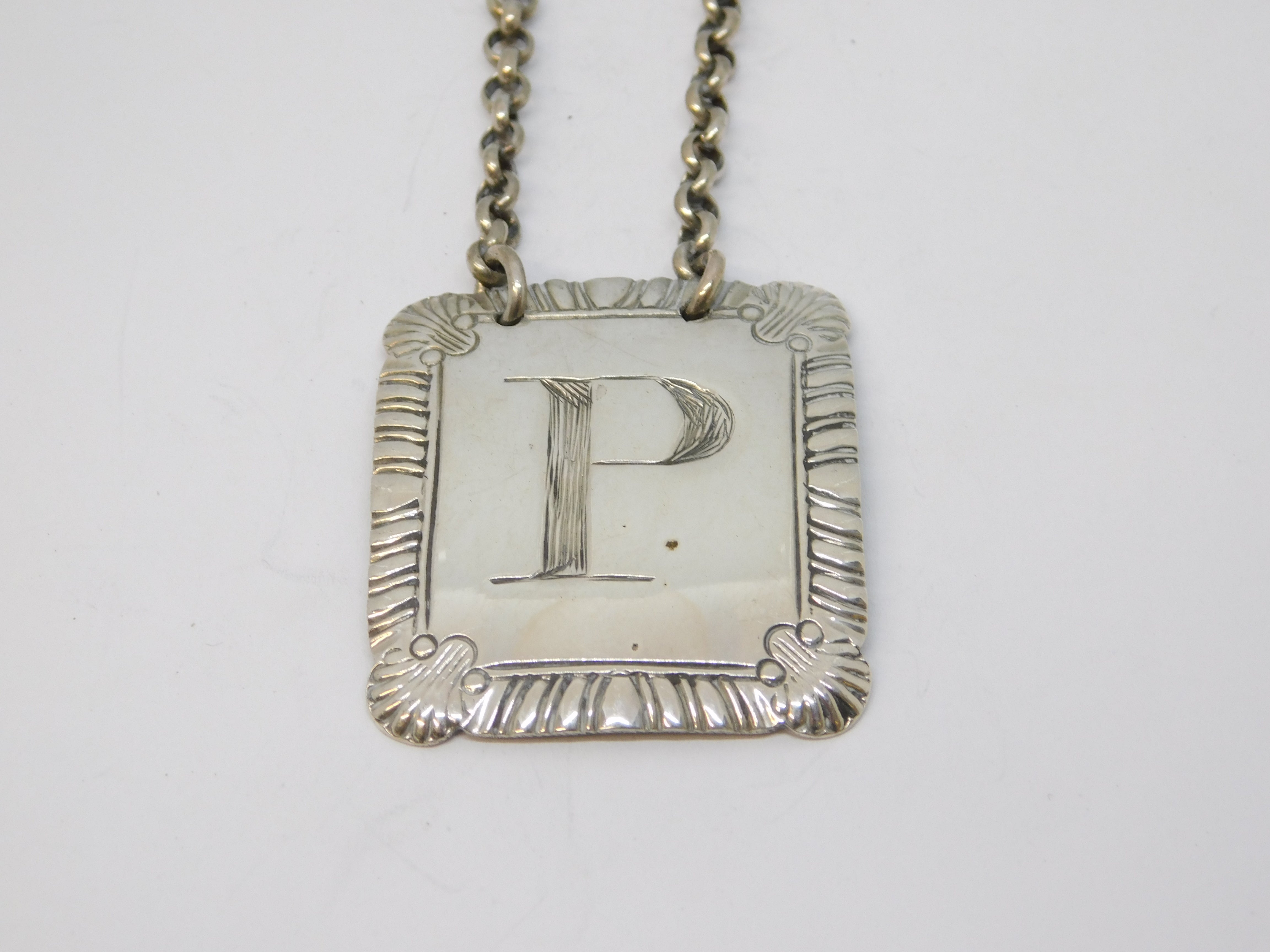 George III Sterling Silver 'P' Letter Port Decanter Label Antique 1815 London