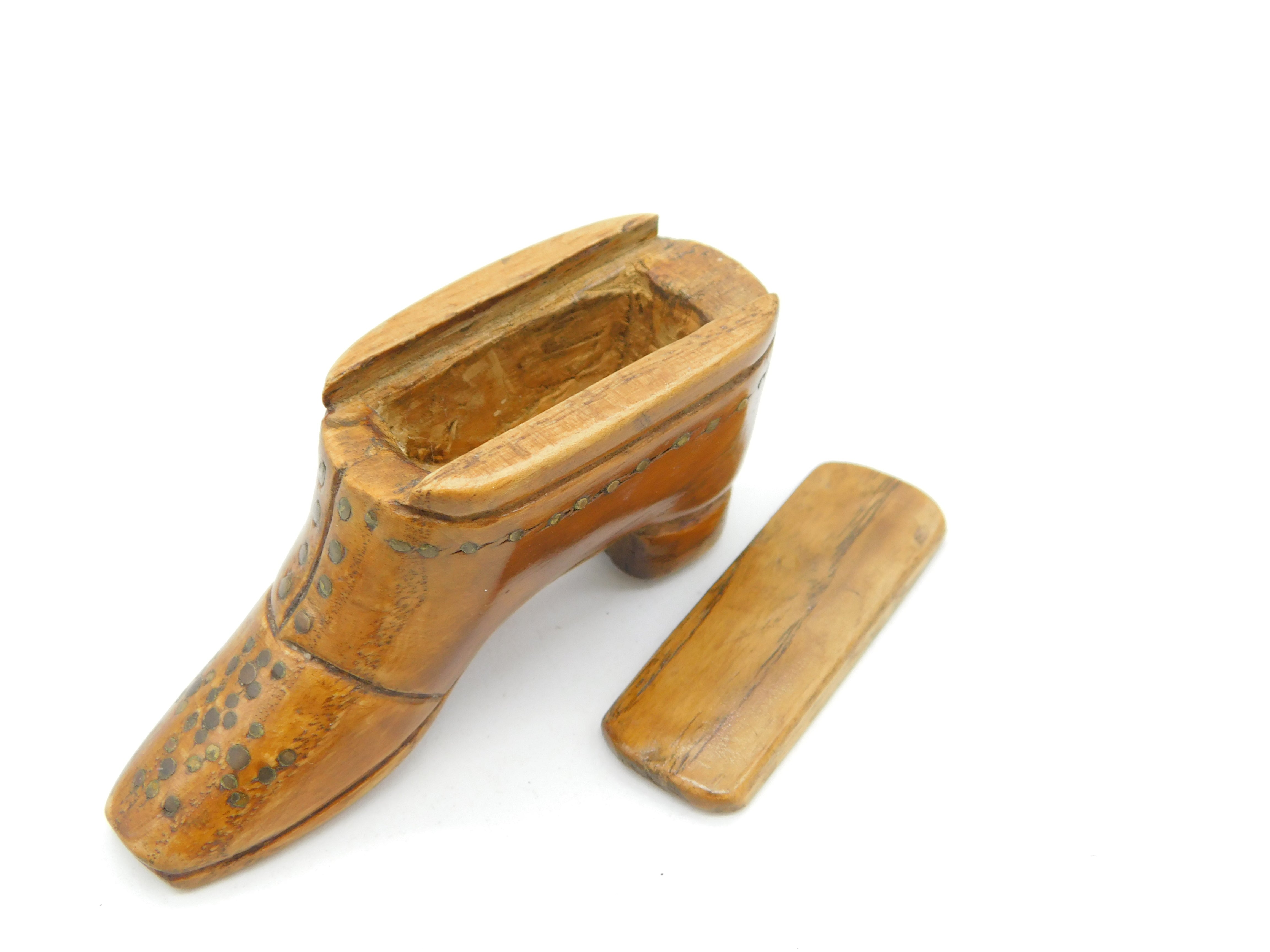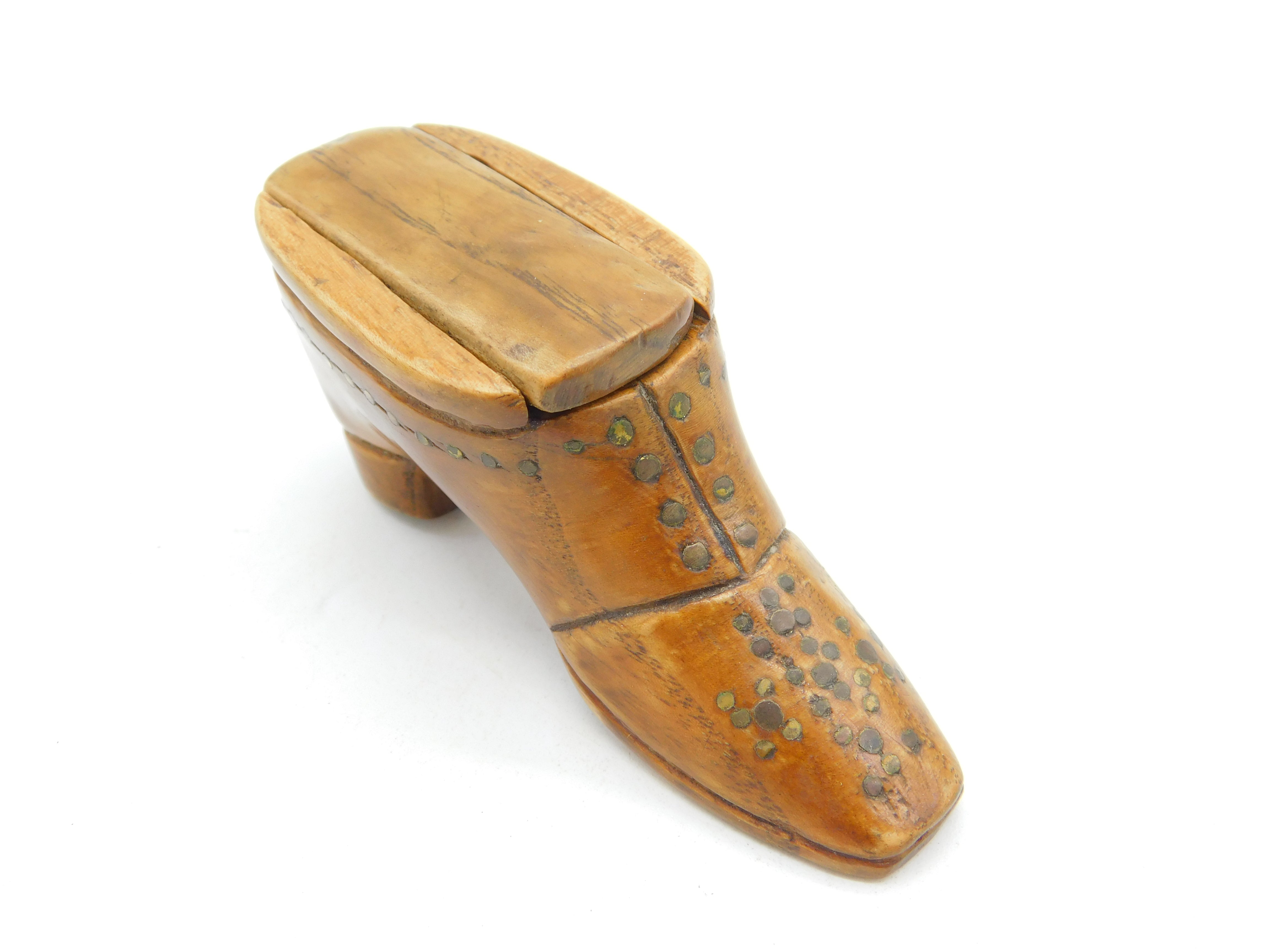 George III Treen & Brass Pin Novelty Shoe Form Snuff Box Antique c1800