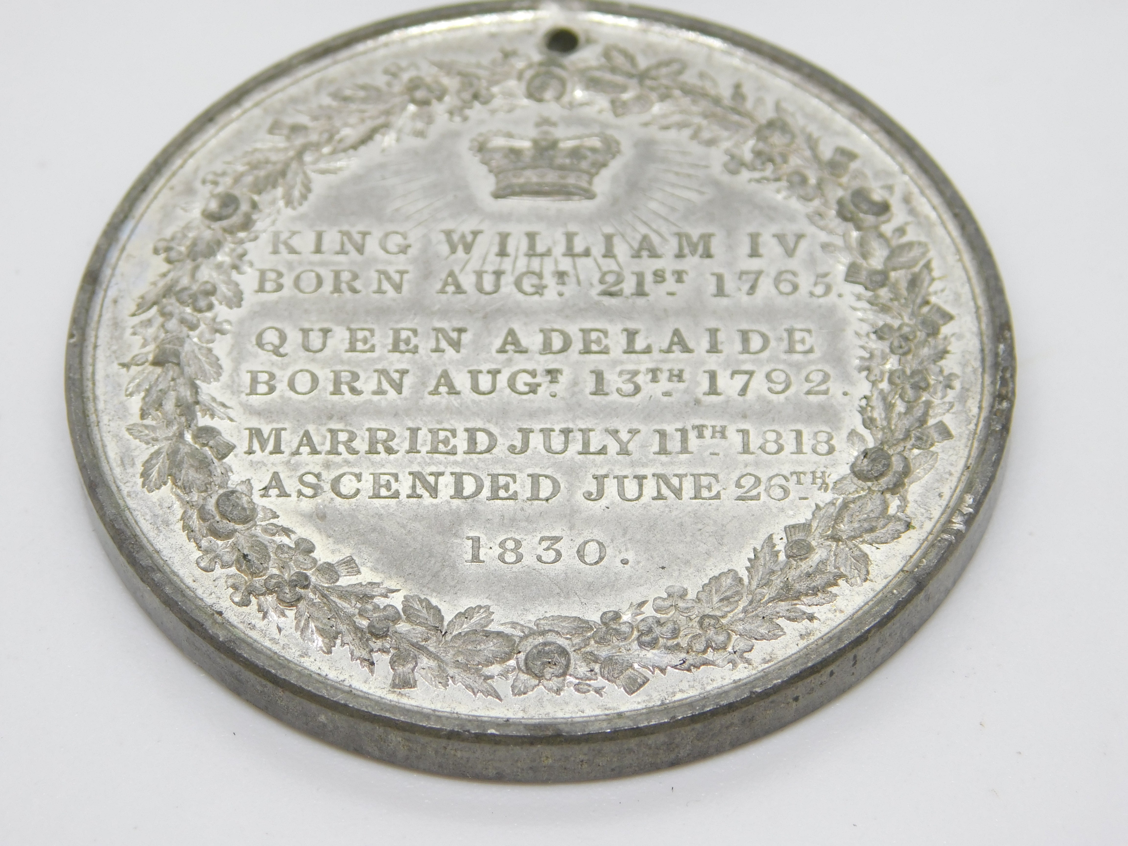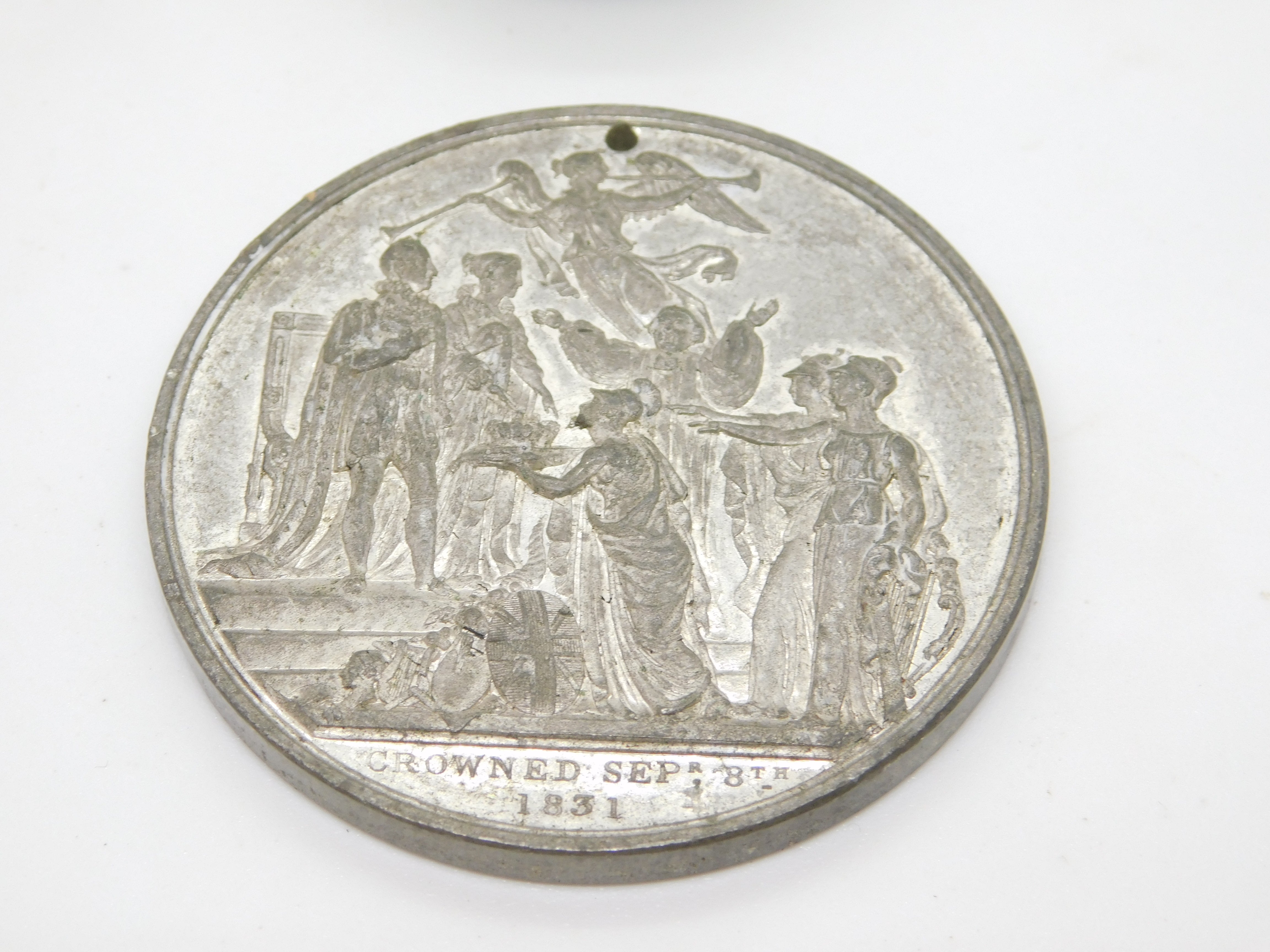 King William IV Silver Plated Large Coronation Commemorative Medal Antique 1830
