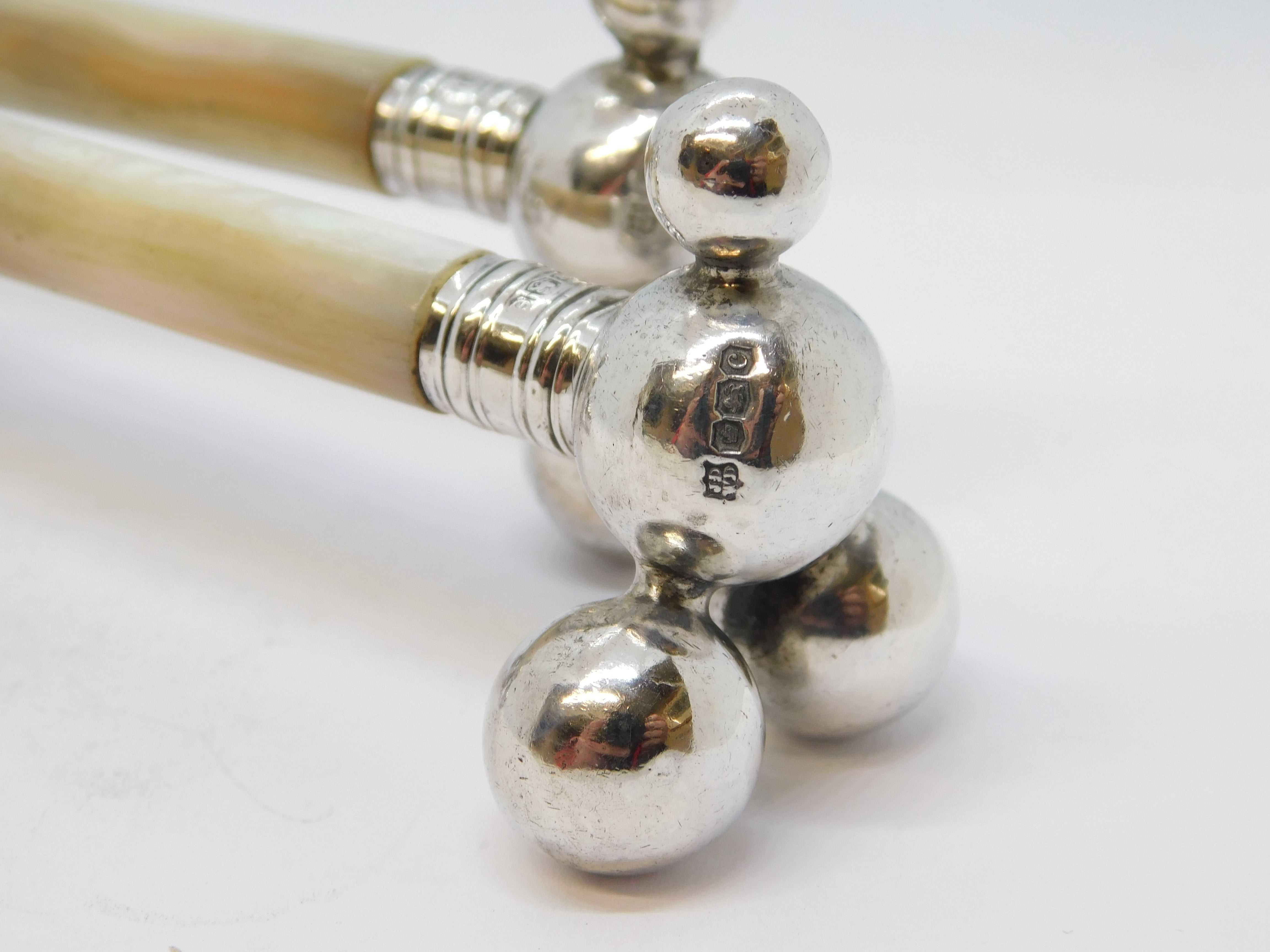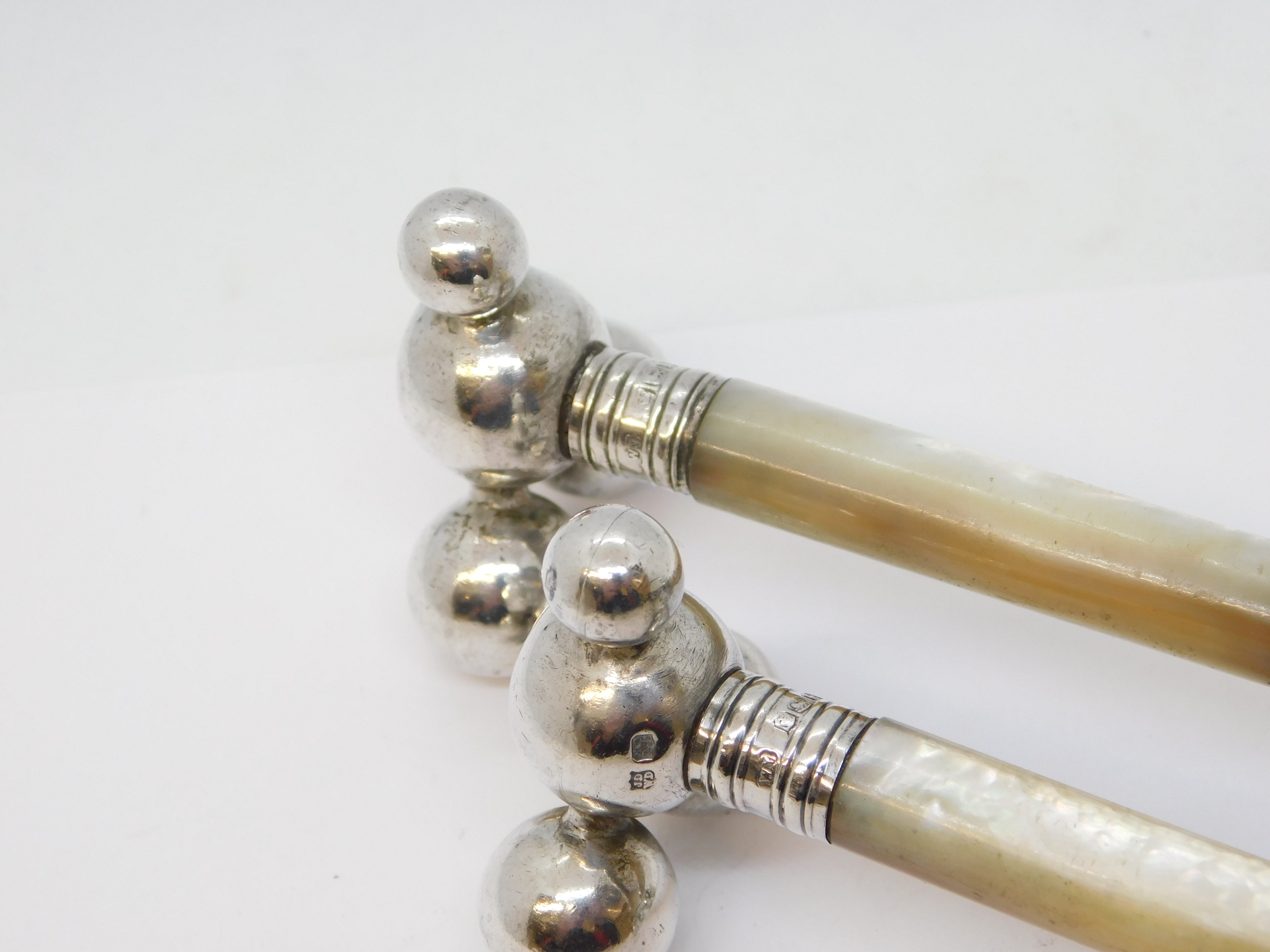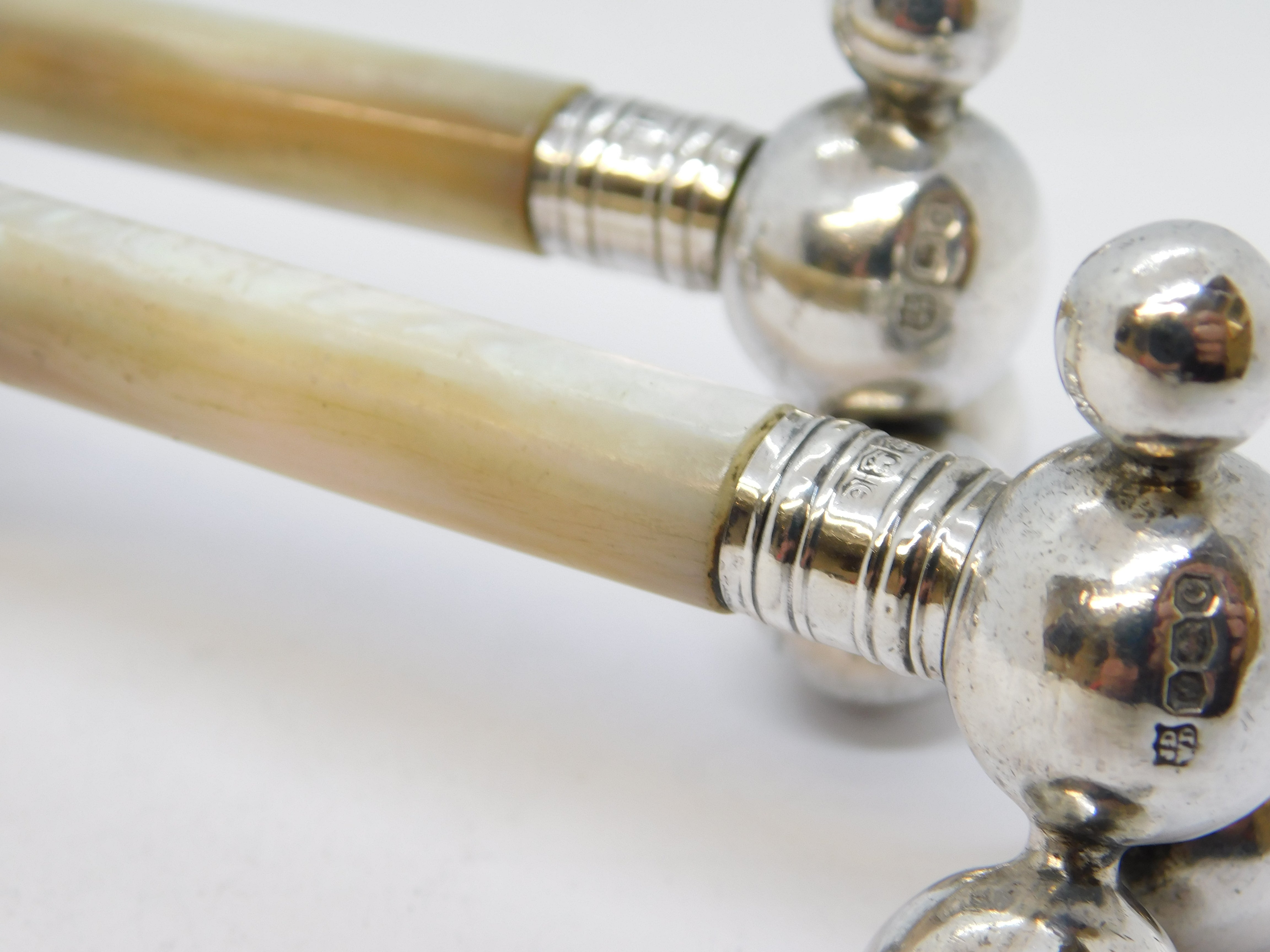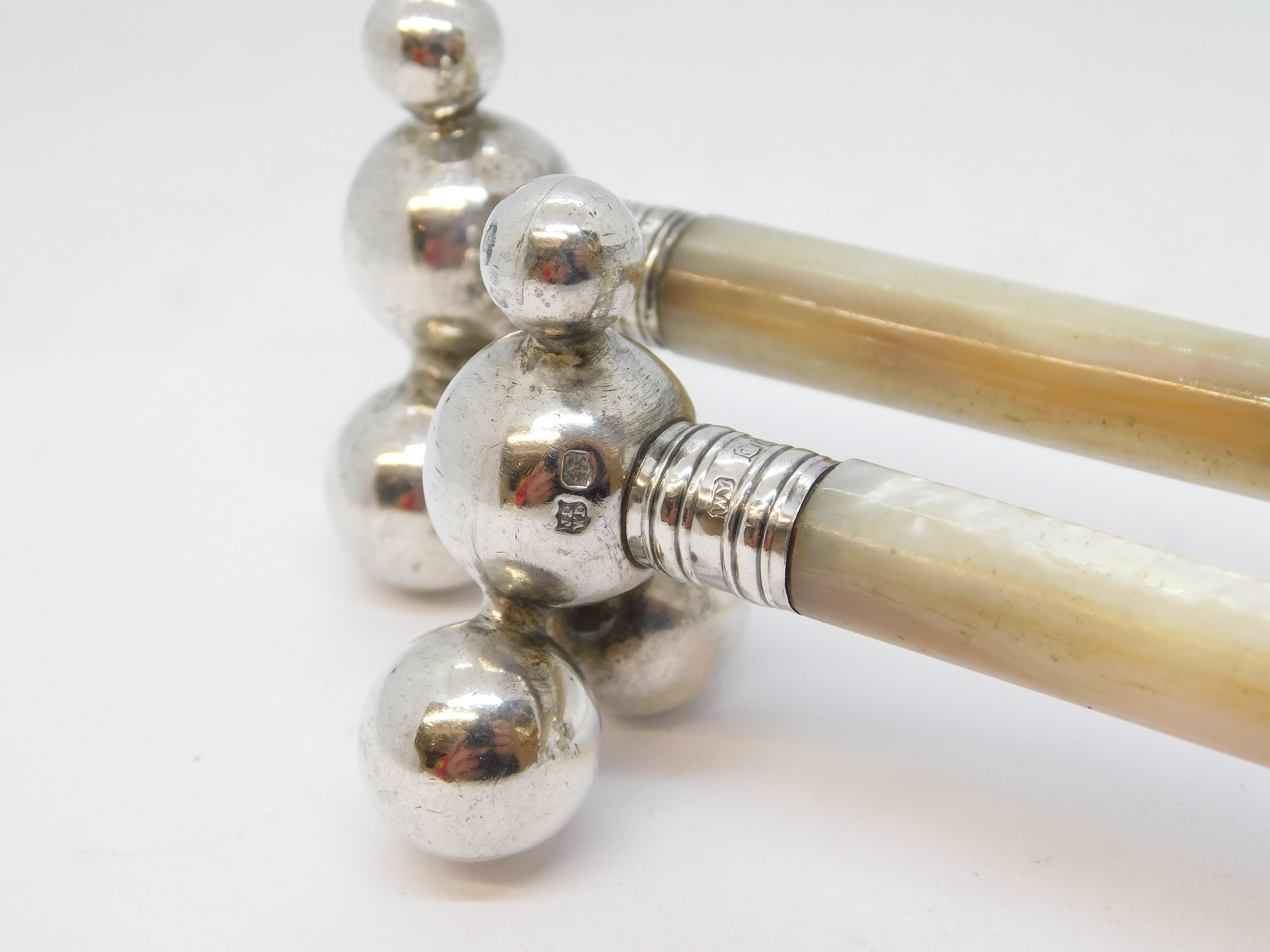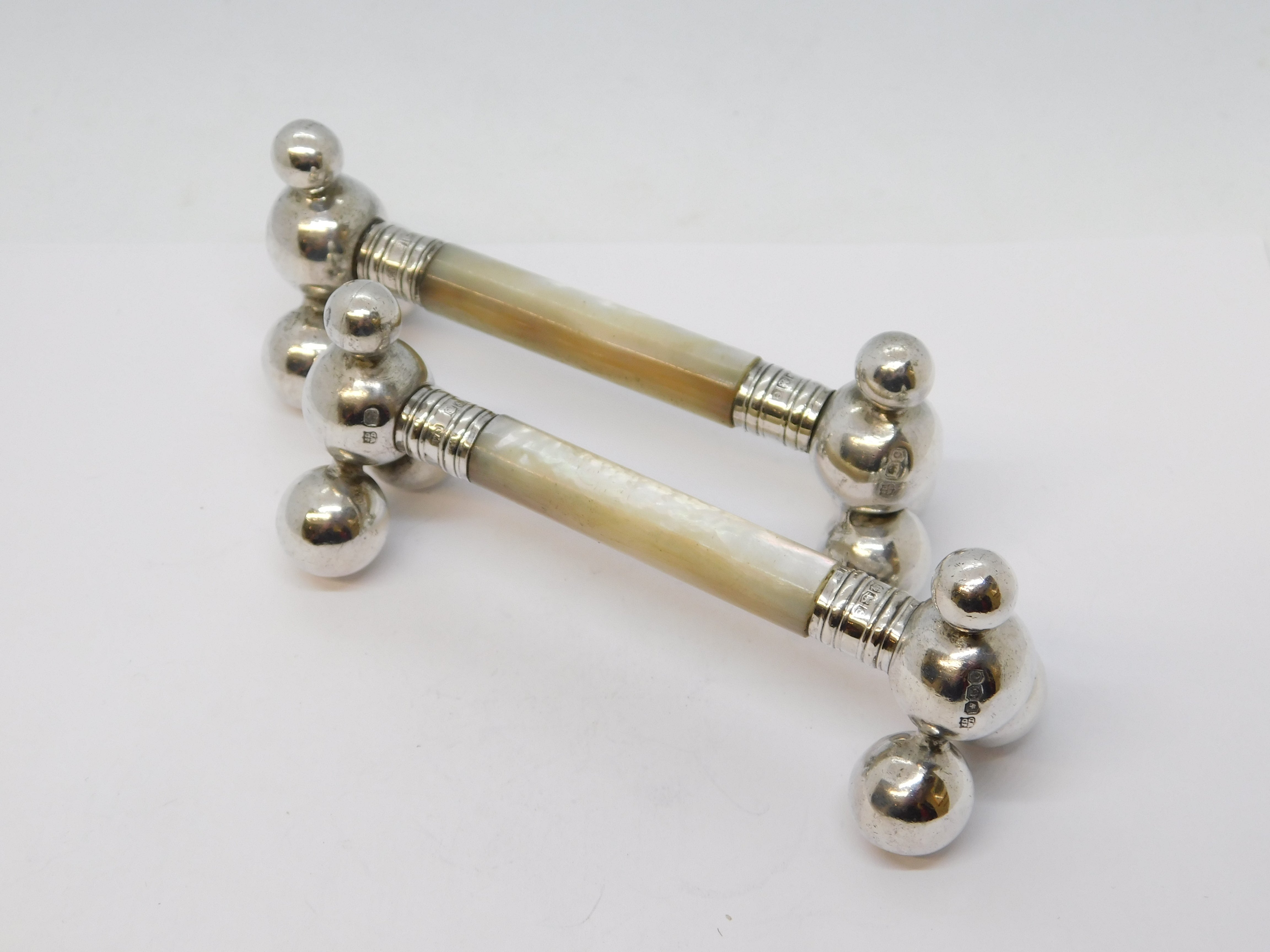 Pair of Sterling Silver & Mother of Pearl Knife Rests Antique 1922 Sheffield