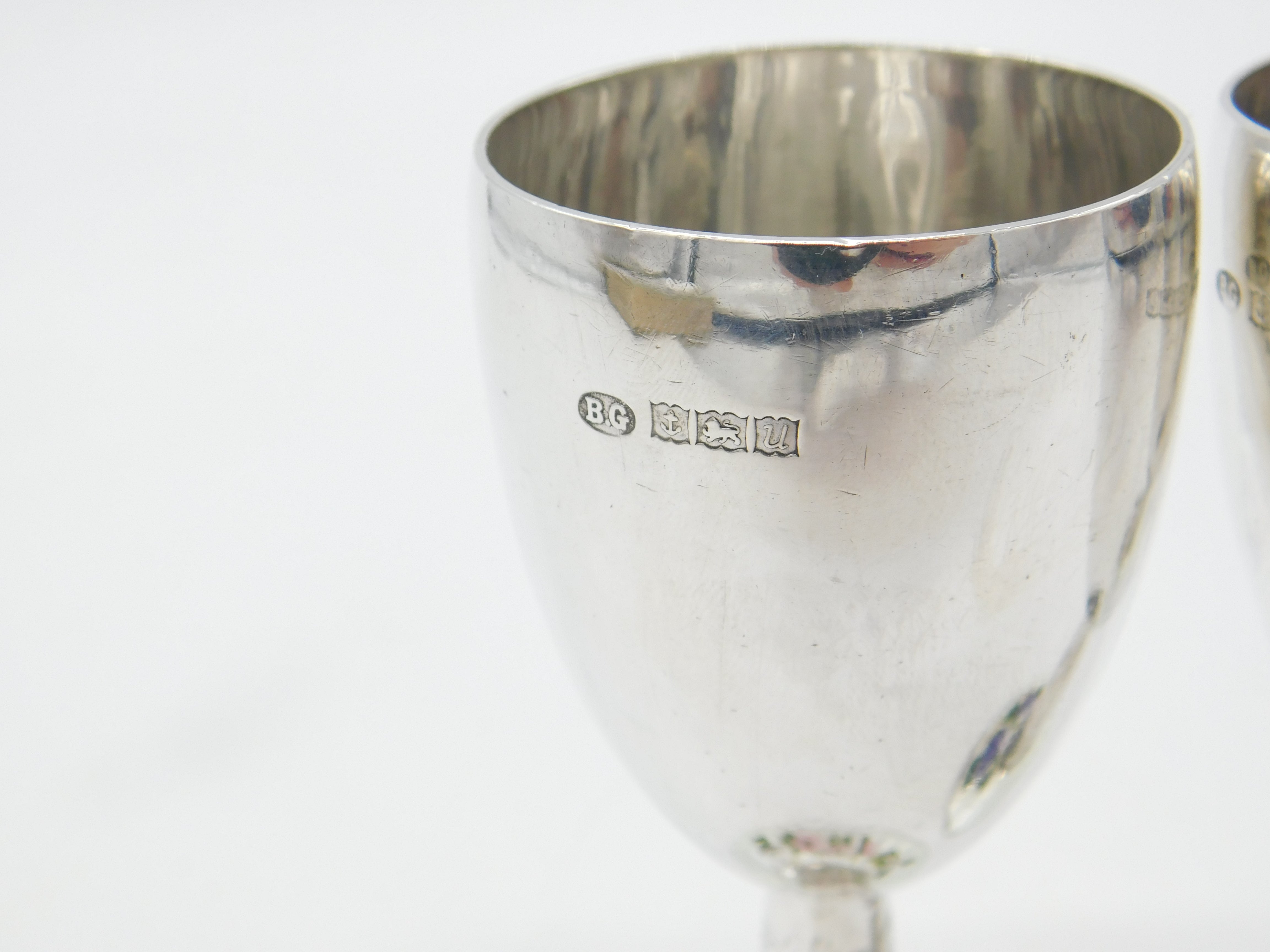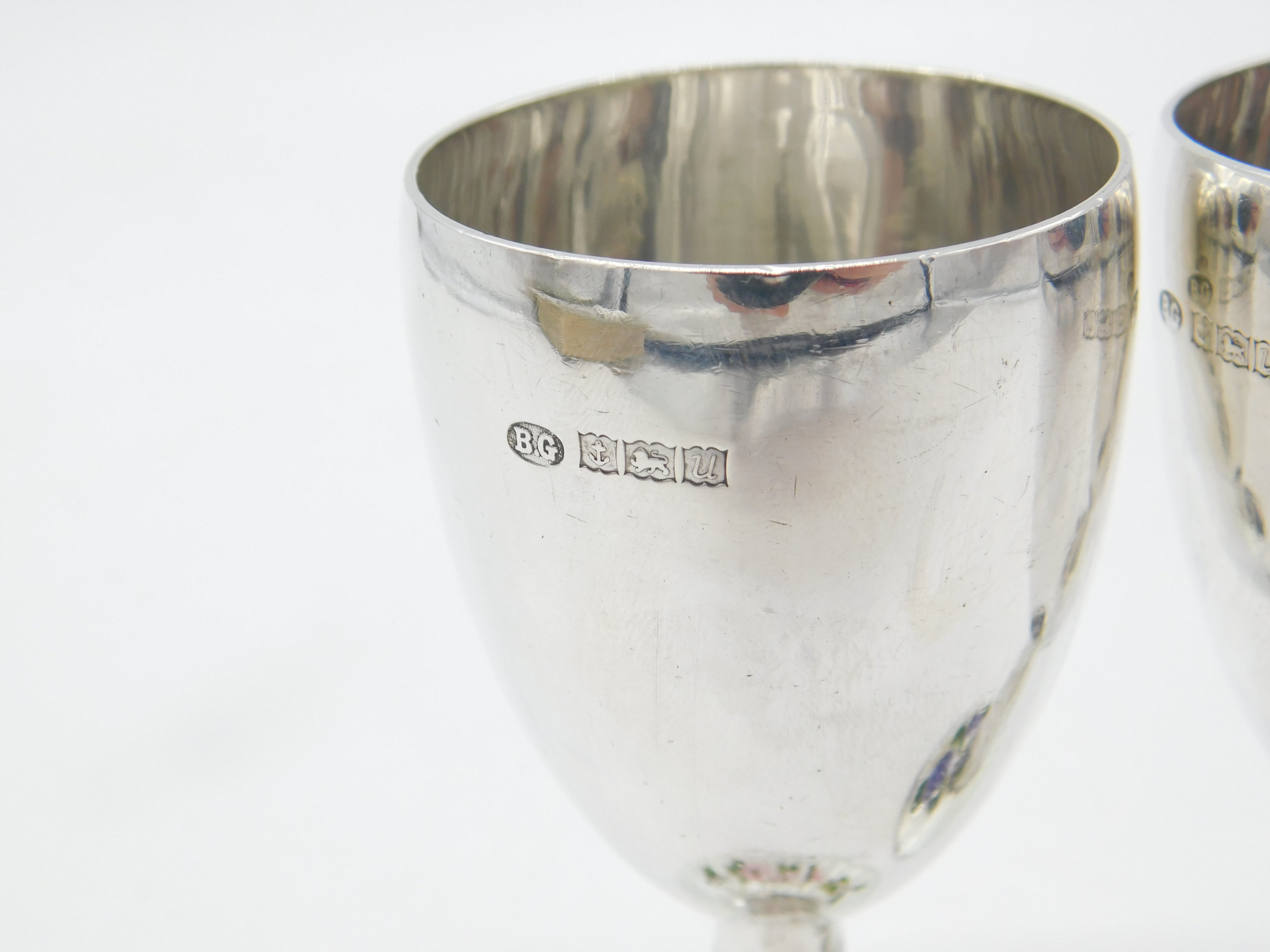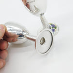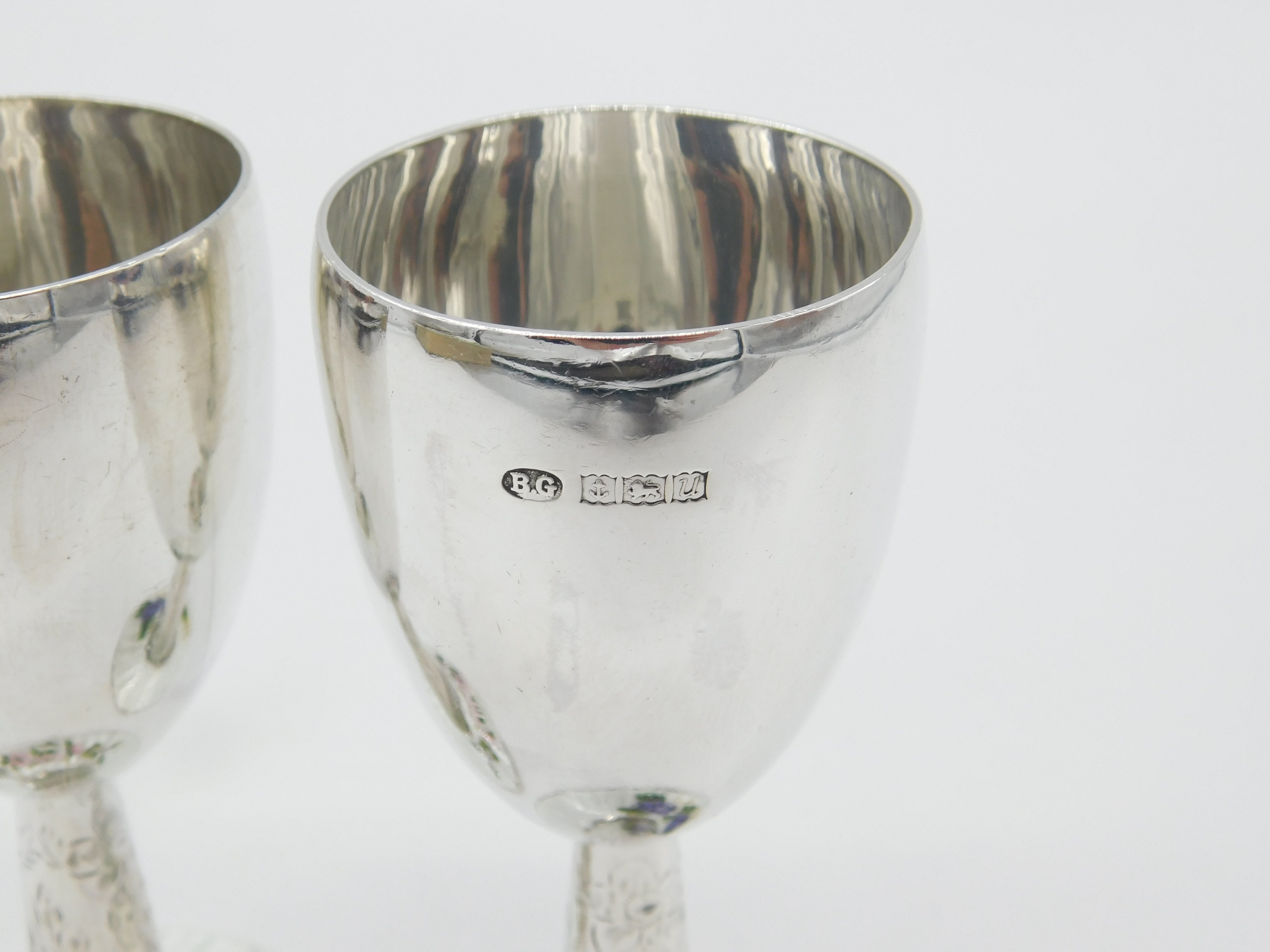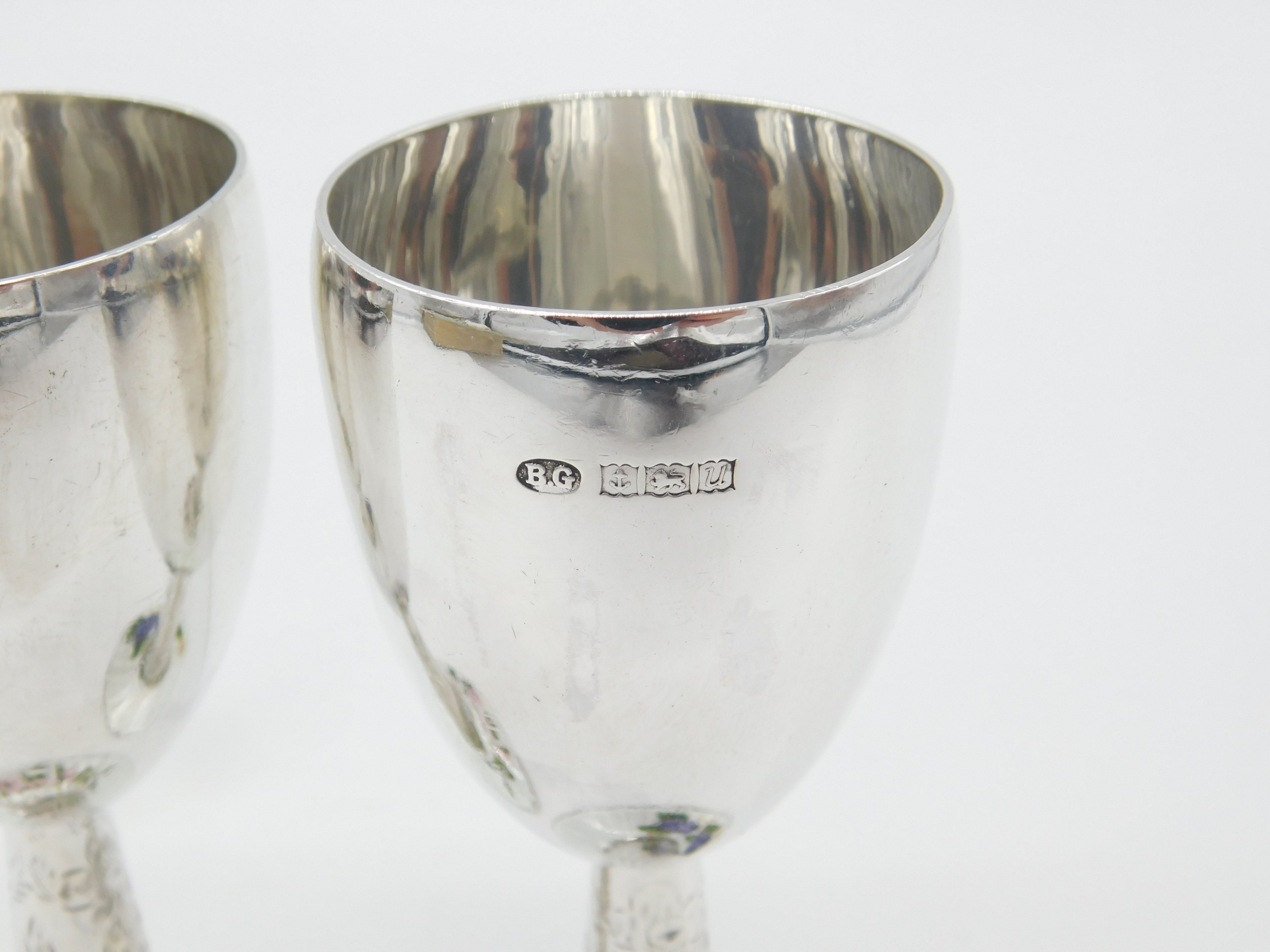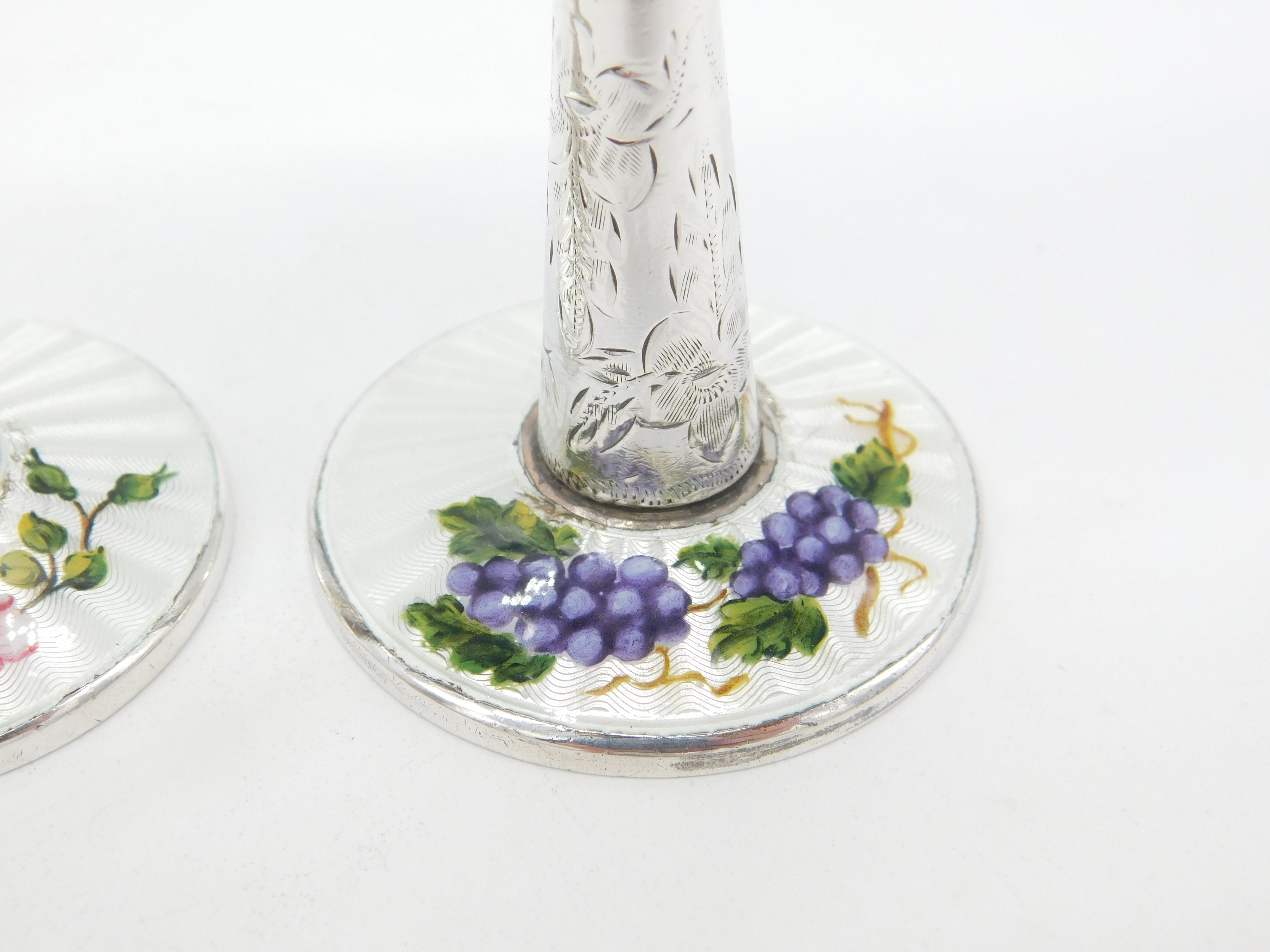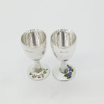 Pair Sterling Silver Floral Guilloche Enamel Base Wine Goblets 1969 Birmingham