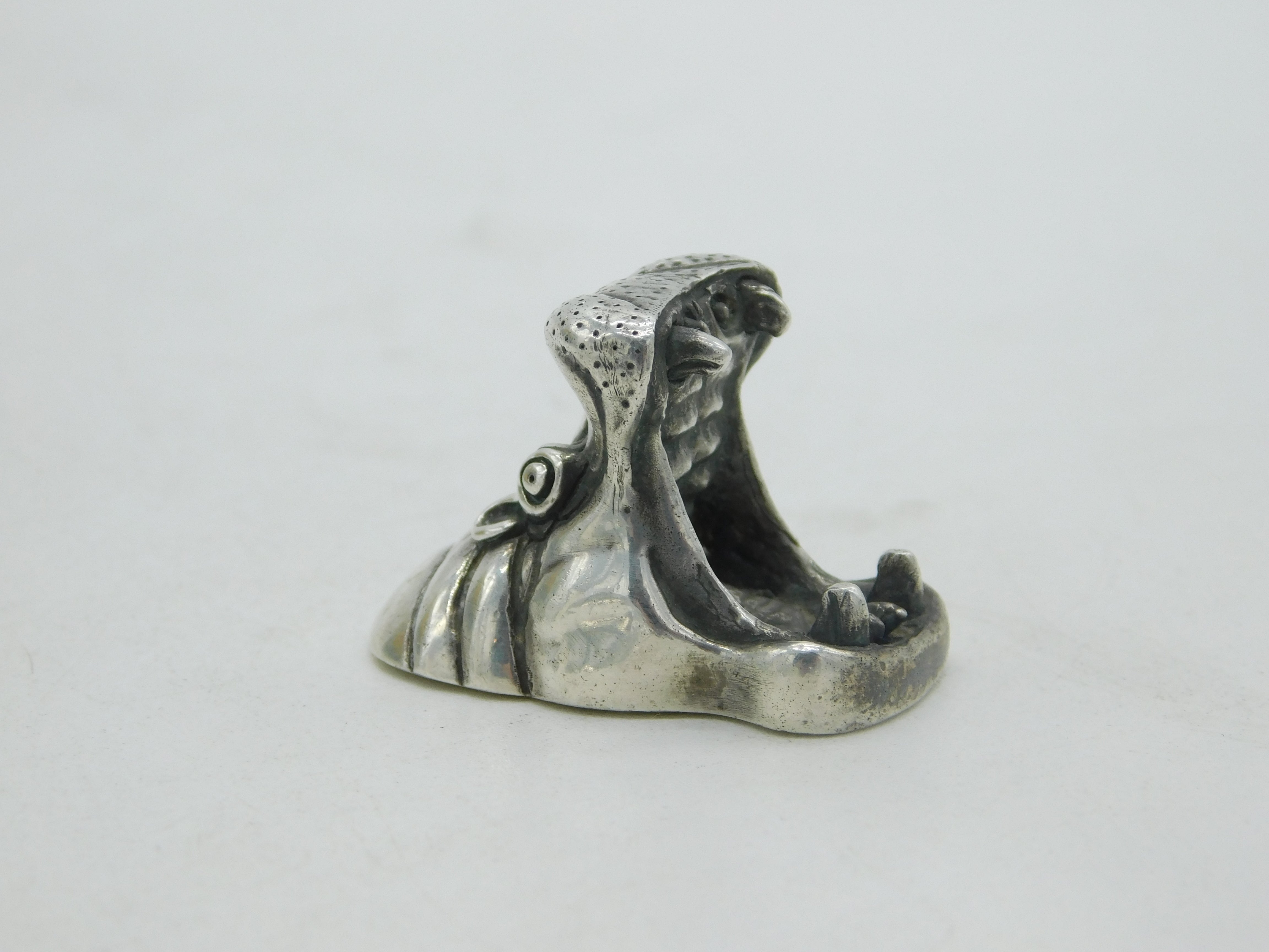 Patrick Mavros Cast Sterling Silver Roaring Hippo Miniature Figure Vintage