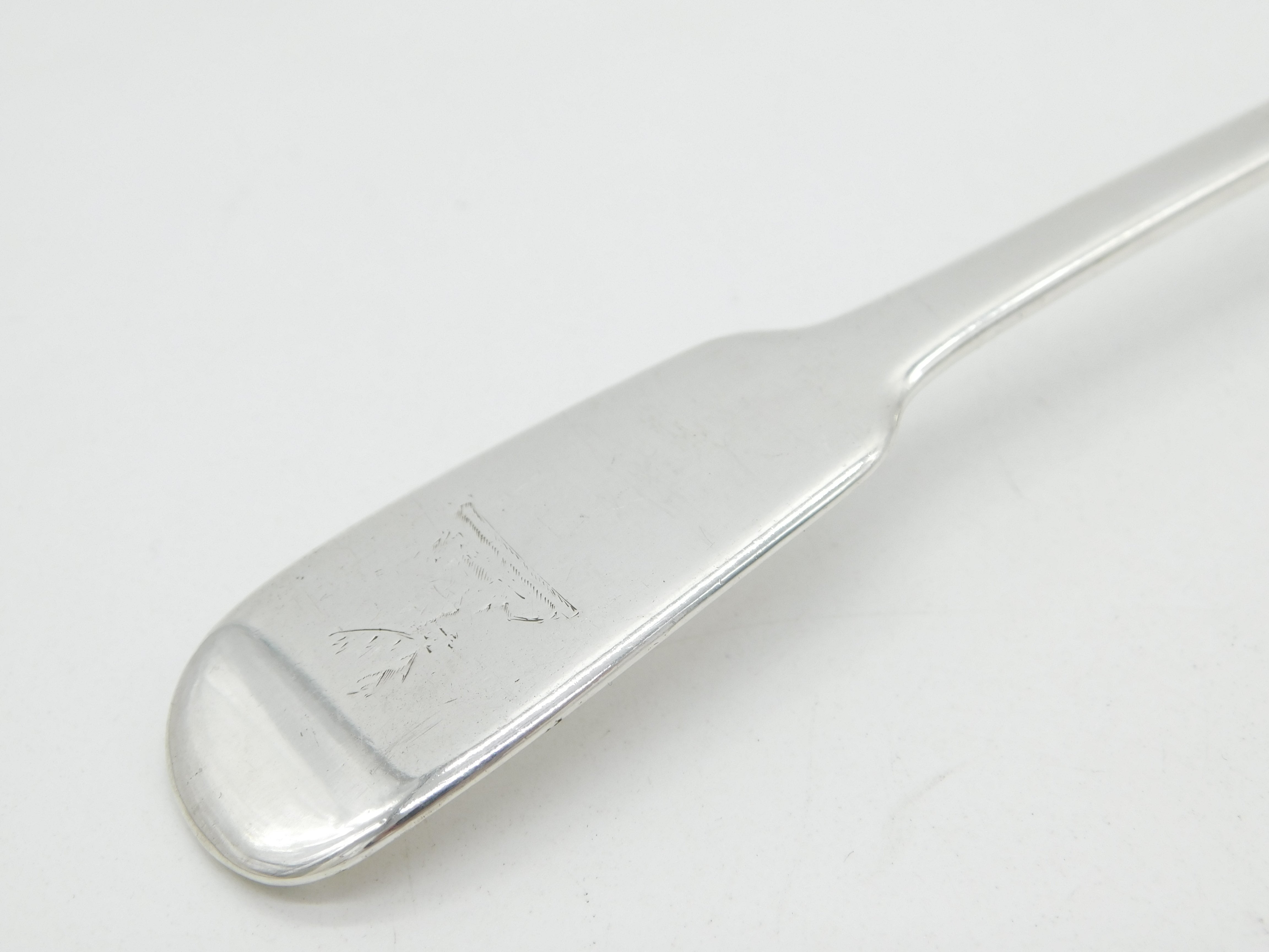 Details: A fantastic and wonderfully designed antique georgian sterling silver fiddle thread pattern serving spoon with heraldic crest to the terminal hallmarked London 1814 by royal silversmith Paul Storr. This is a wonderful item that would make a perfect gift or addition to any collection. We are more than happy to provide XRF reports for items upon request.