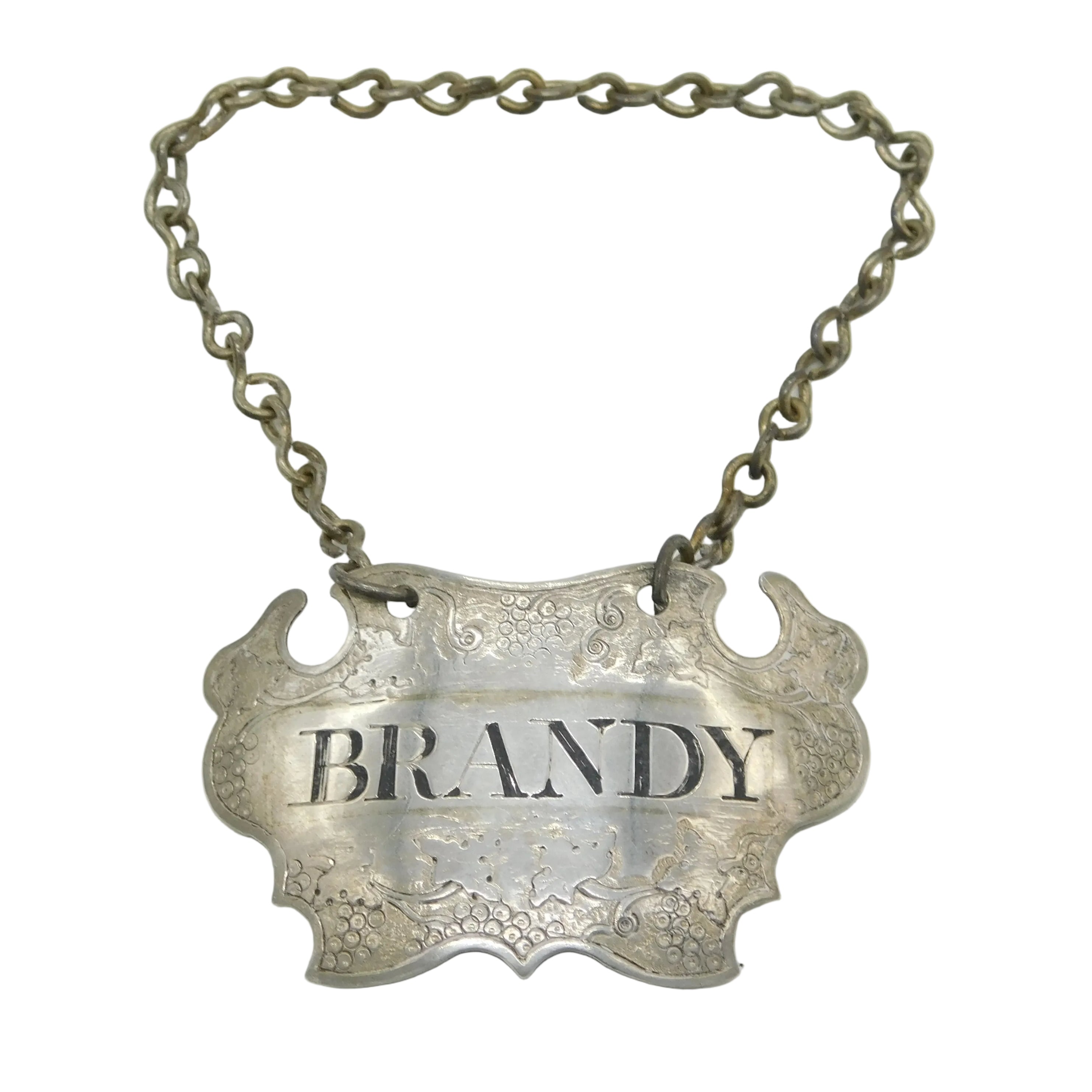 Sandylands Drinkwater George II Sterling Silver Brandy Decanter Label Antique