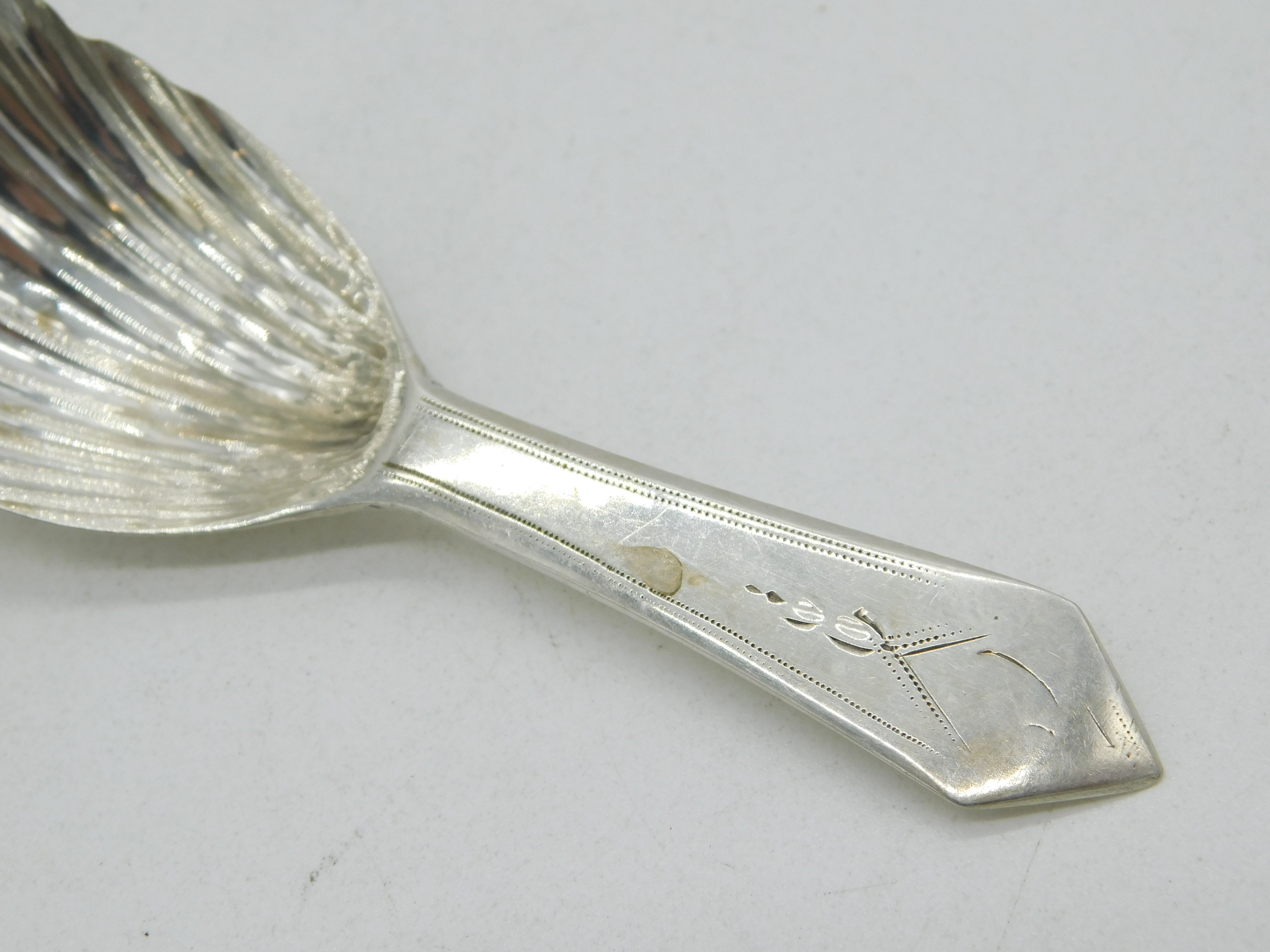 Details: A fantastic and wonderfully designed antique Scottish georgian sterling silver bright cut tea caddy spoon with shell pattern bowl hallmarked Edinburgh c1790 by William & Patrick Cunningham. This is a wonderful item that would make a perfect gift or addition to any collection. We are more than happy to provide XRF reports for items upon request.