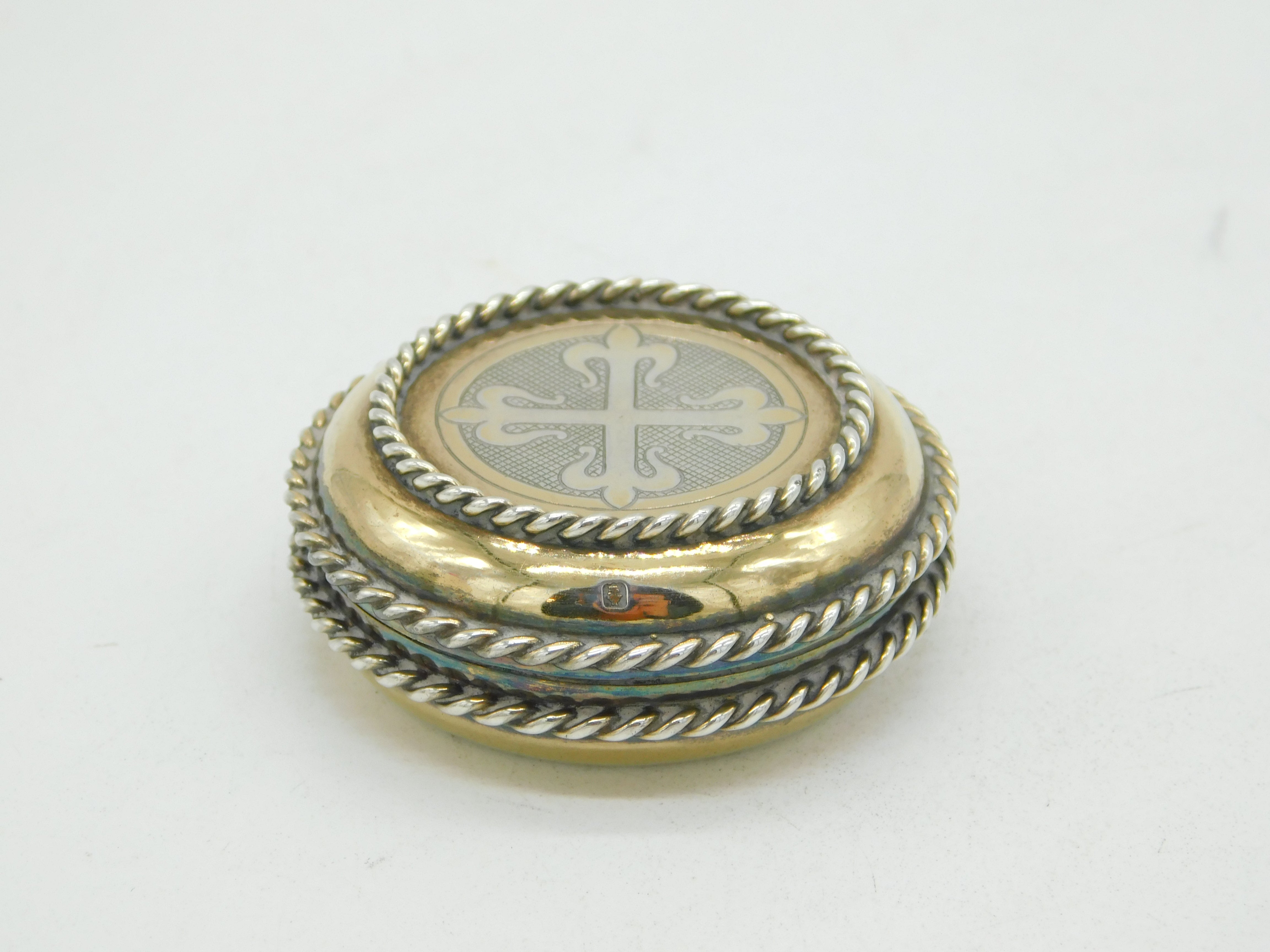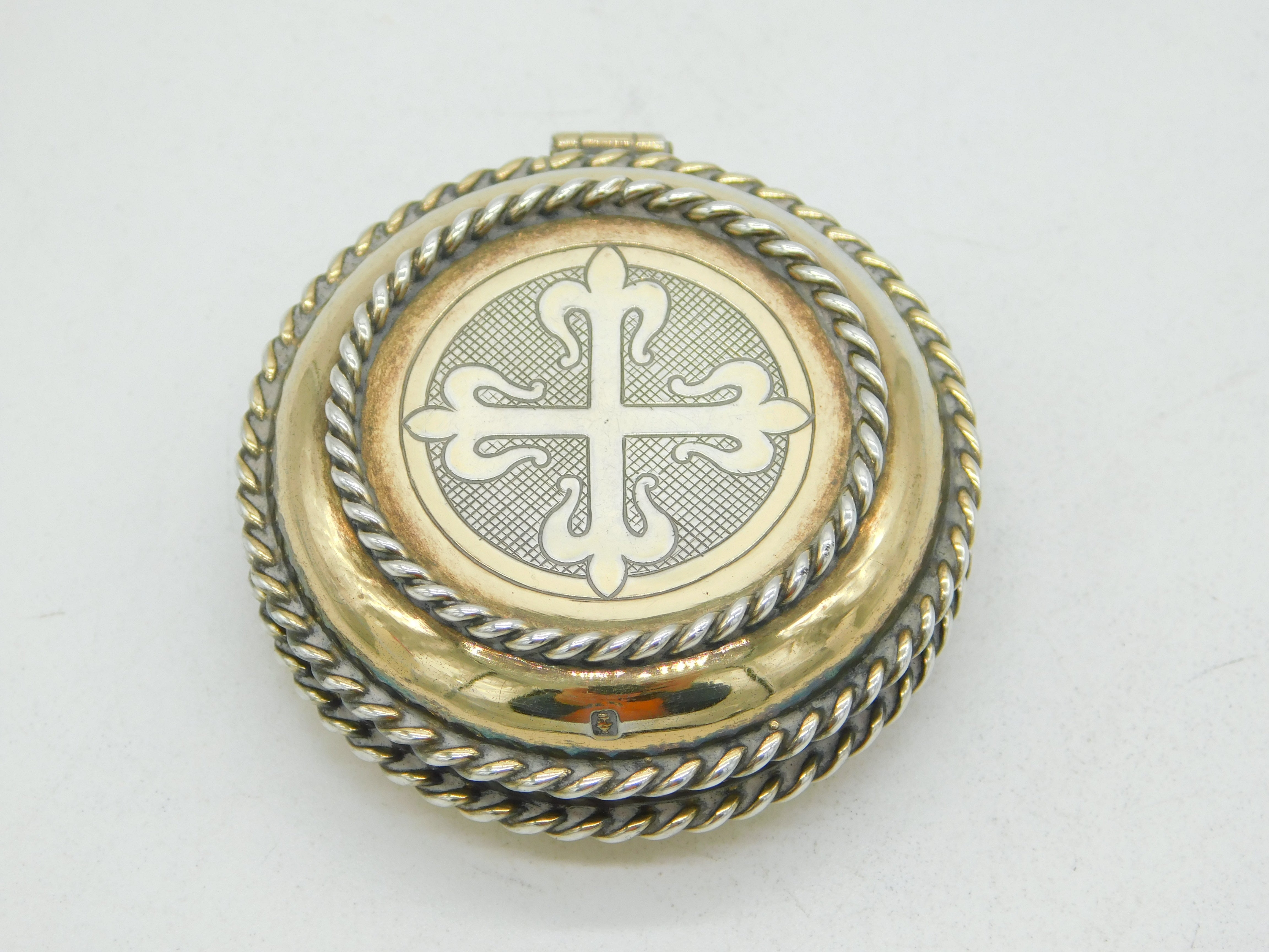 Scottish Sterling Silver Gilt Religious Communion Wafer Pyx Antique 1921 Glasgow