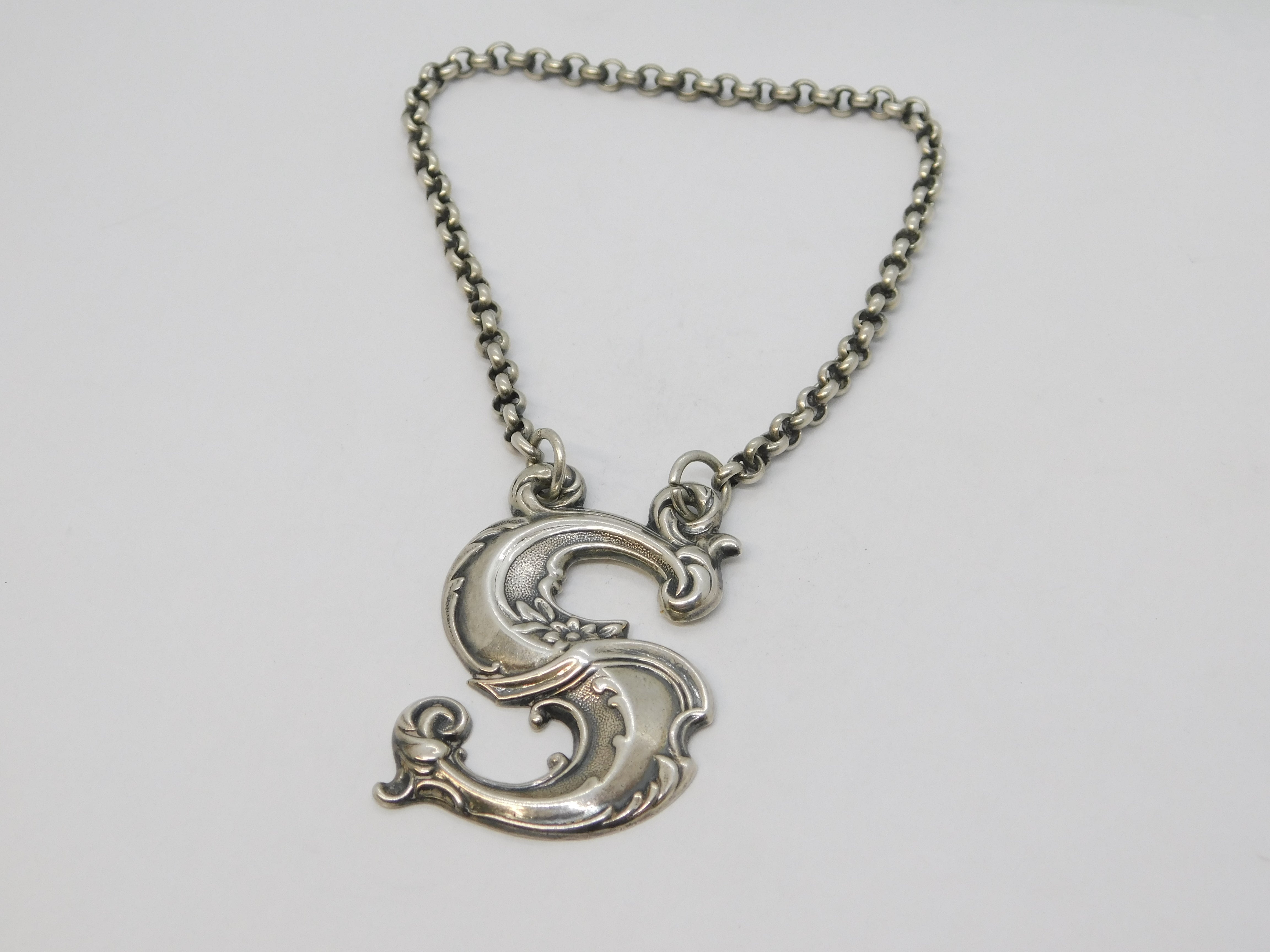Details: A fantastic and wonderfully designed antique Victorian Scottish sterling silver 'S' initial Sherry decanter label with lovely floral detailing hallmarked Edinburgh c1840 by Robb & Whittet. This is a wonderful item that would make a perfect gift or addition to any collection. We are more than happy to provide XRF reports for items upon request.