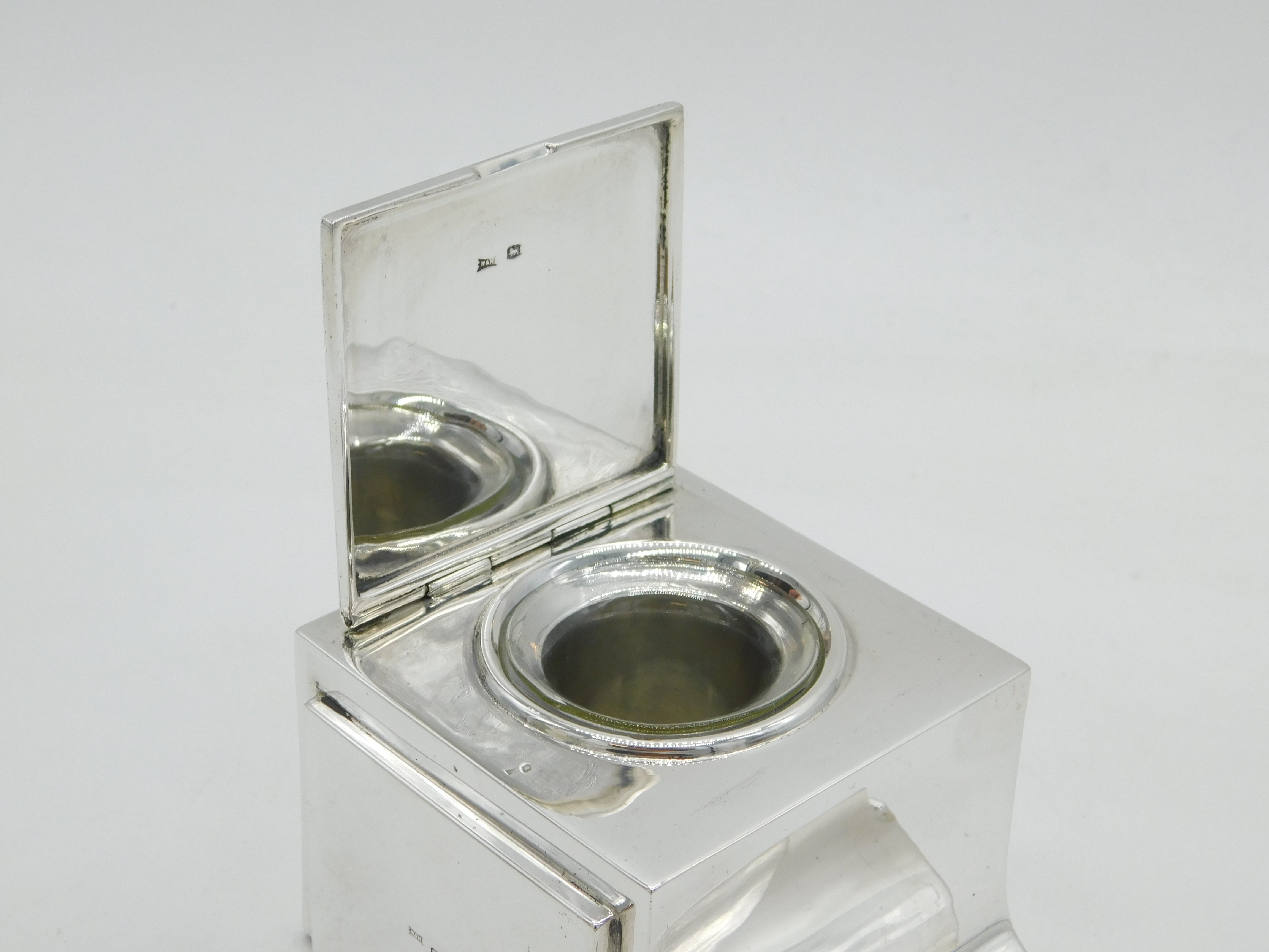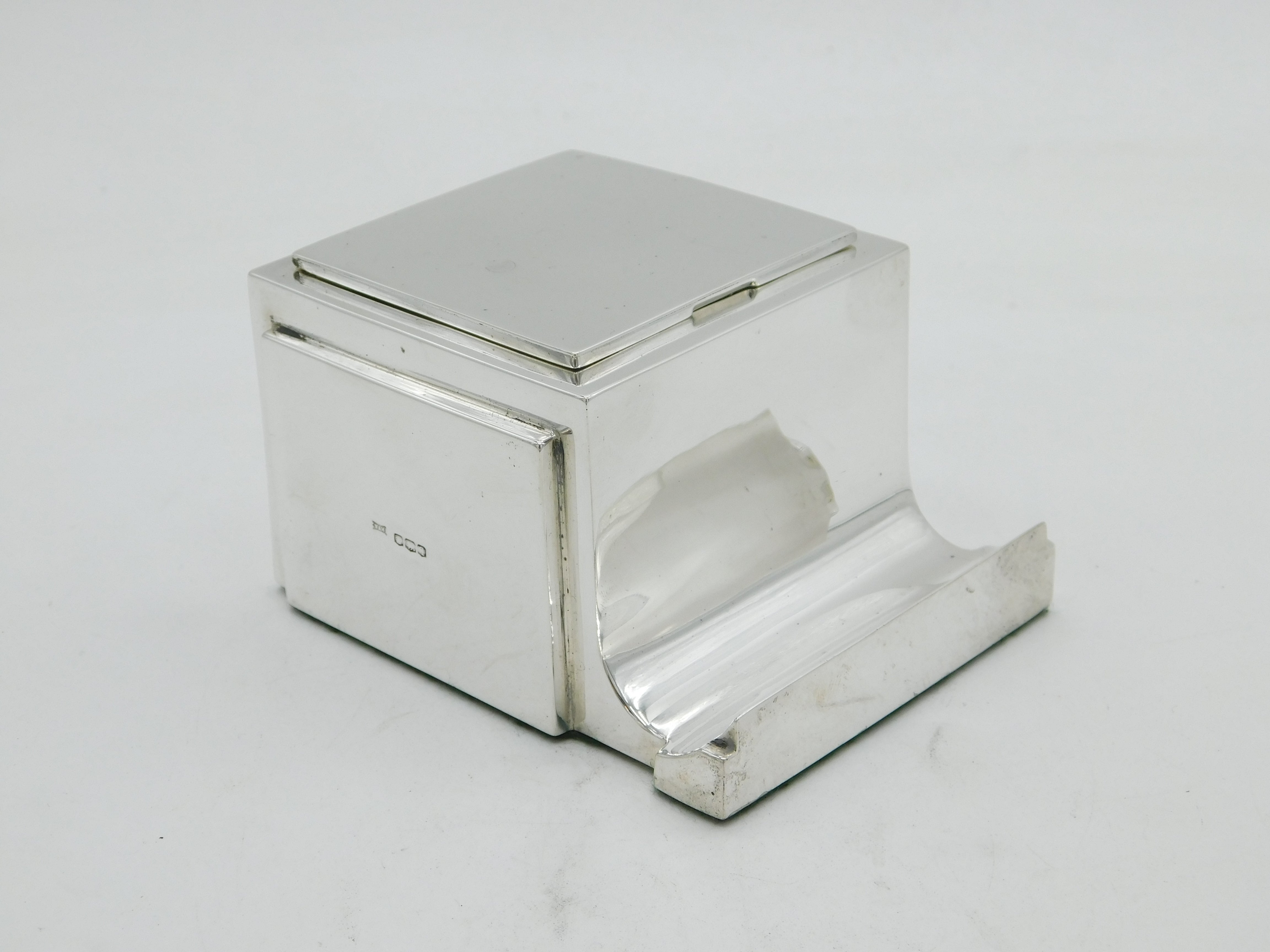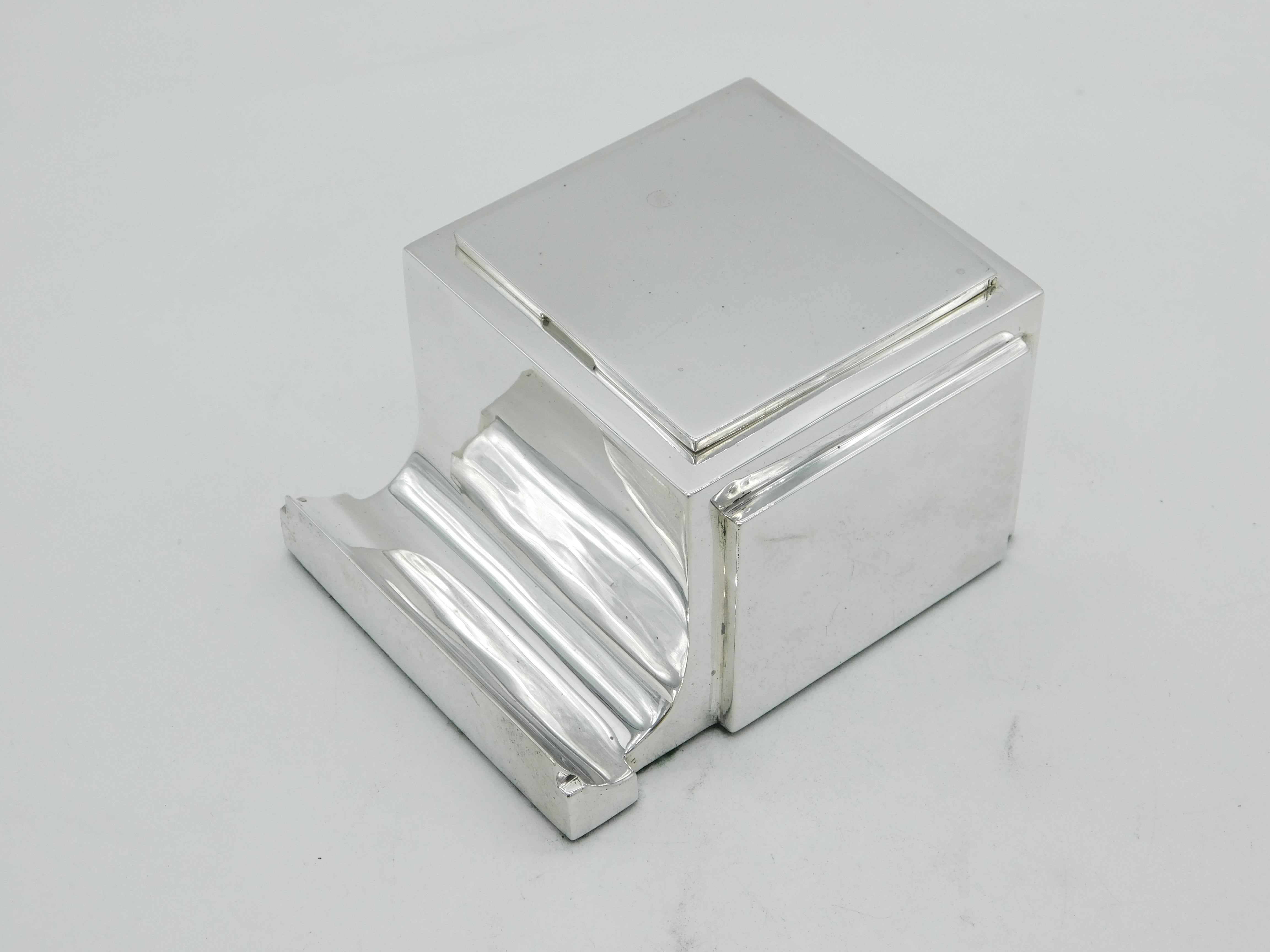 Details: A fantastic and wonderfully designed antique art deco sterling silver modernist style writing desk compendium with integrated inkwell and pen stand, hallmarked Sheffield 1933 by Walker & Hall. A lovely clean item perfect for a gift. The desk stand is weighted to the base. This is a wonderful item that would make a perfect gift or addition to any collection. We are more than happy to provide XRF reports for items upon request.