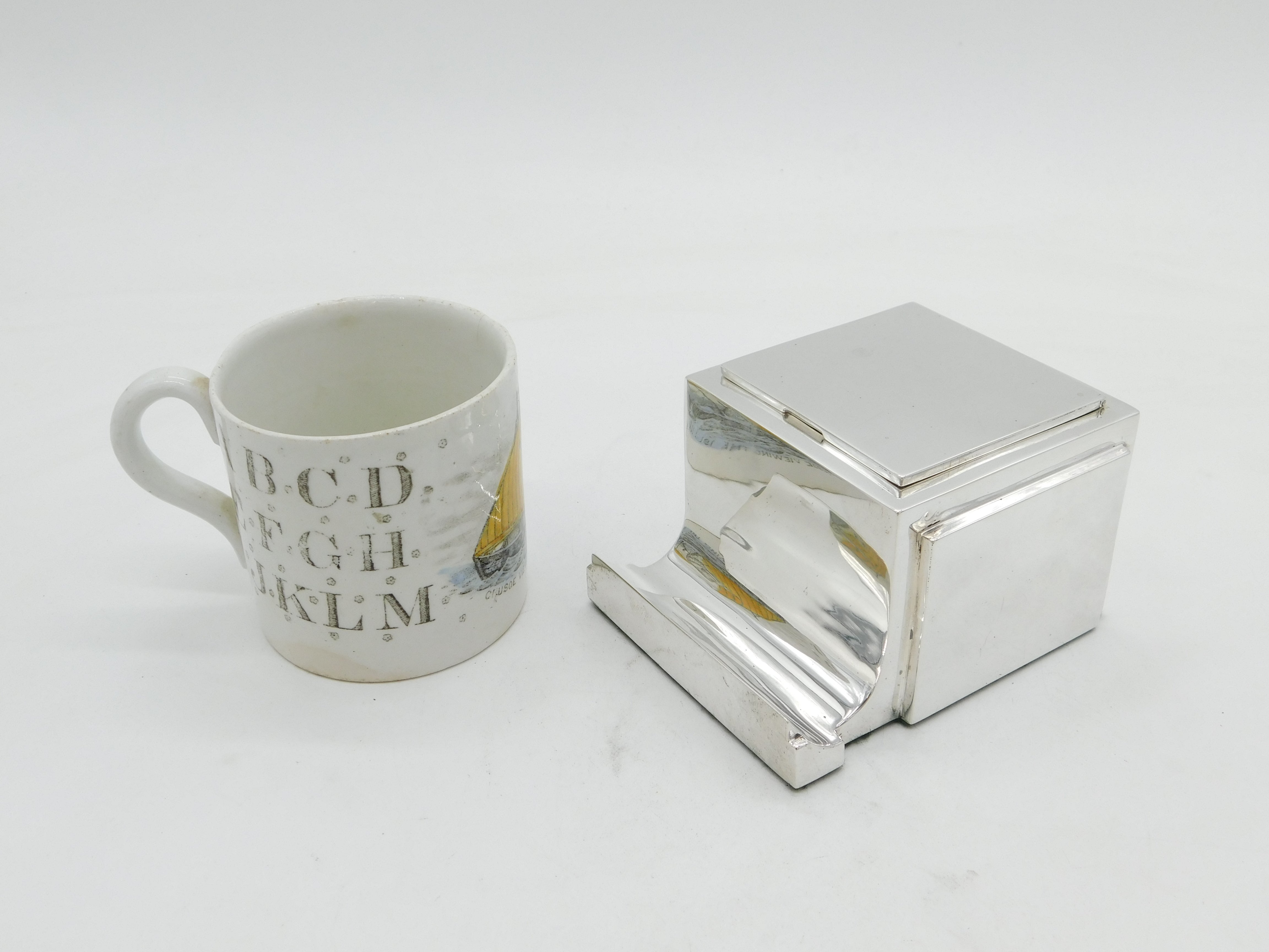 Sterling Silver Inkwell & Pen Holder Writing Desk Stand Antique 1933 Sheffield